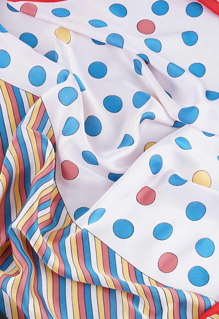 Платок из новой коллекции изготовлен из лёгкой ткани, в составе которой мягкий шёлк и нити вискозы. Изделие представлено в белом цвете и декорировано ярким принтом. Аксессуар удобно носить в качестве головного убора и как дополнение к образу. Современный дизайн идеально сочетается с нарядами в повседневном стиле и удачно впишется в гардероб модницы.