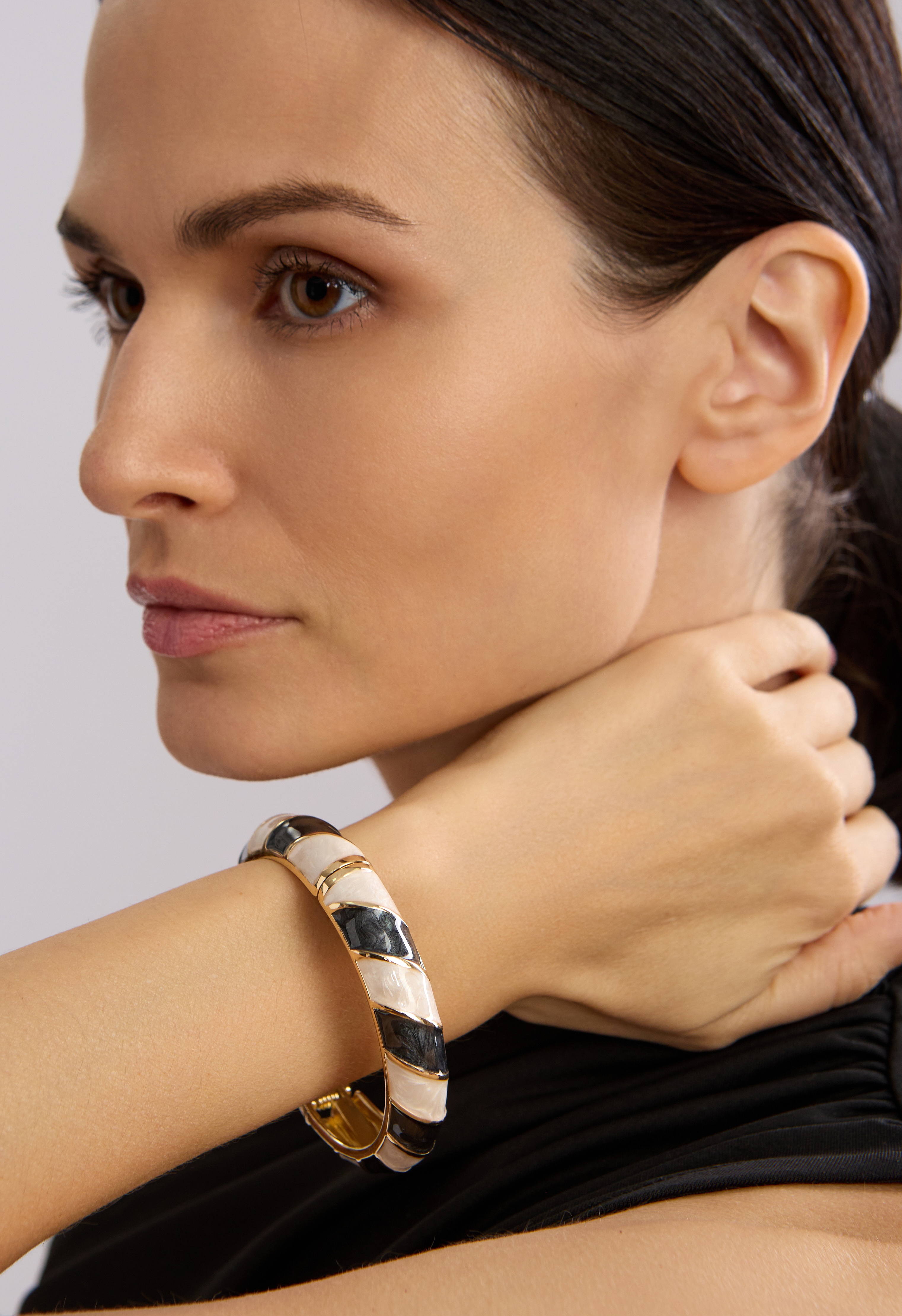 Изящный браслет из ювелирного сплава в черно-бело-золотых оттенках – утонченное украшение, которое подчеркнет ваш вкус и чувство стиля. Переливы создают мягкий, благородный блеск, гармонично сочетающийся с любым образом. Легкий, износостойкий и элегантный, он станет акцентом, способным добавить в ваш наряд нотку роскоши и изысканности.
