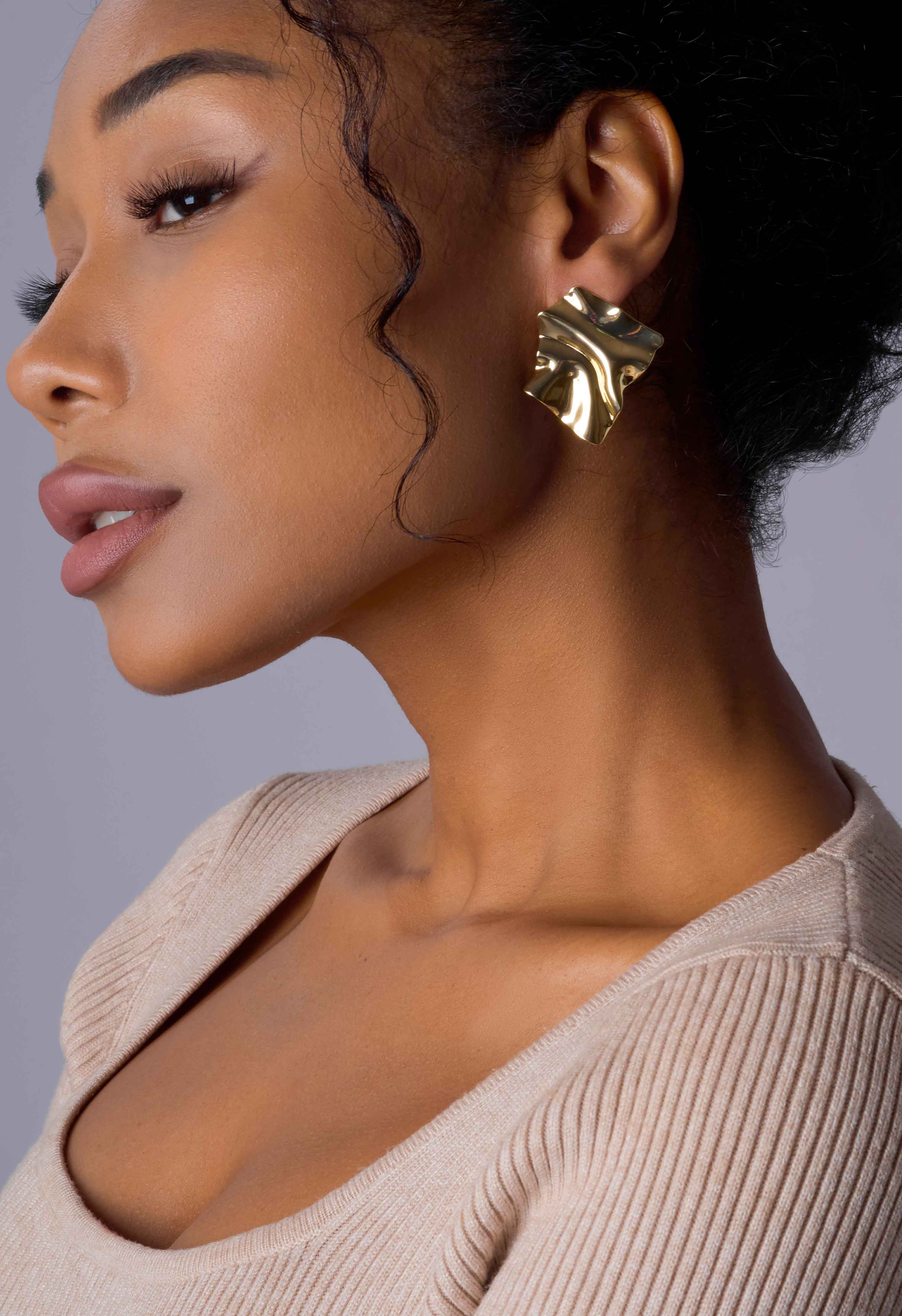 Изысканные серьги благородного золотого оттенка подчеркнут элегантный образ! Это утончённое украшение оригинальной формы подарит незабываемые ощущения и комфортную носку благодаря застежке на пусете.