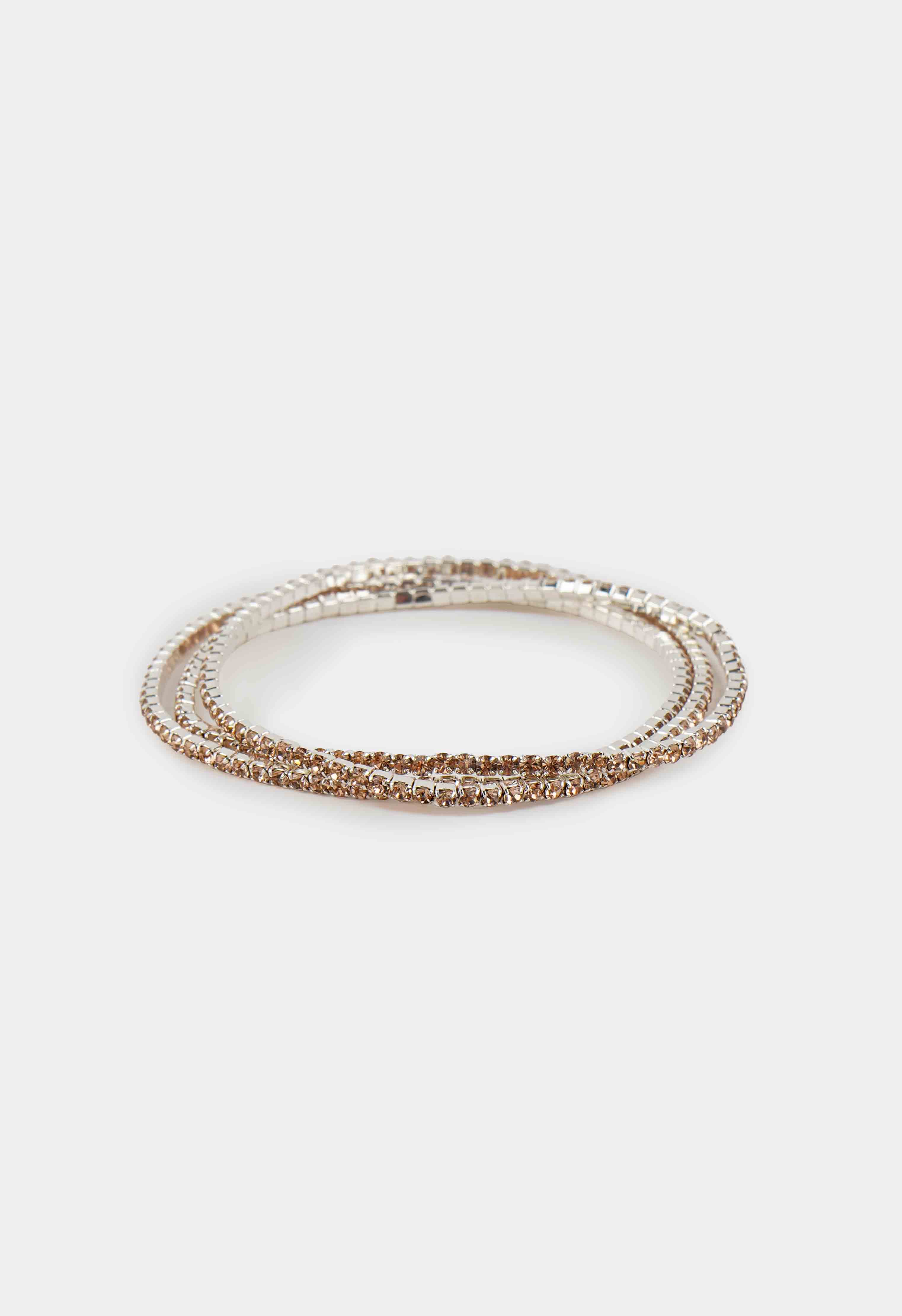 Серебристая основа и золотые стразы смотрятся необычно и современно, браслеты подстраиваются под запястье