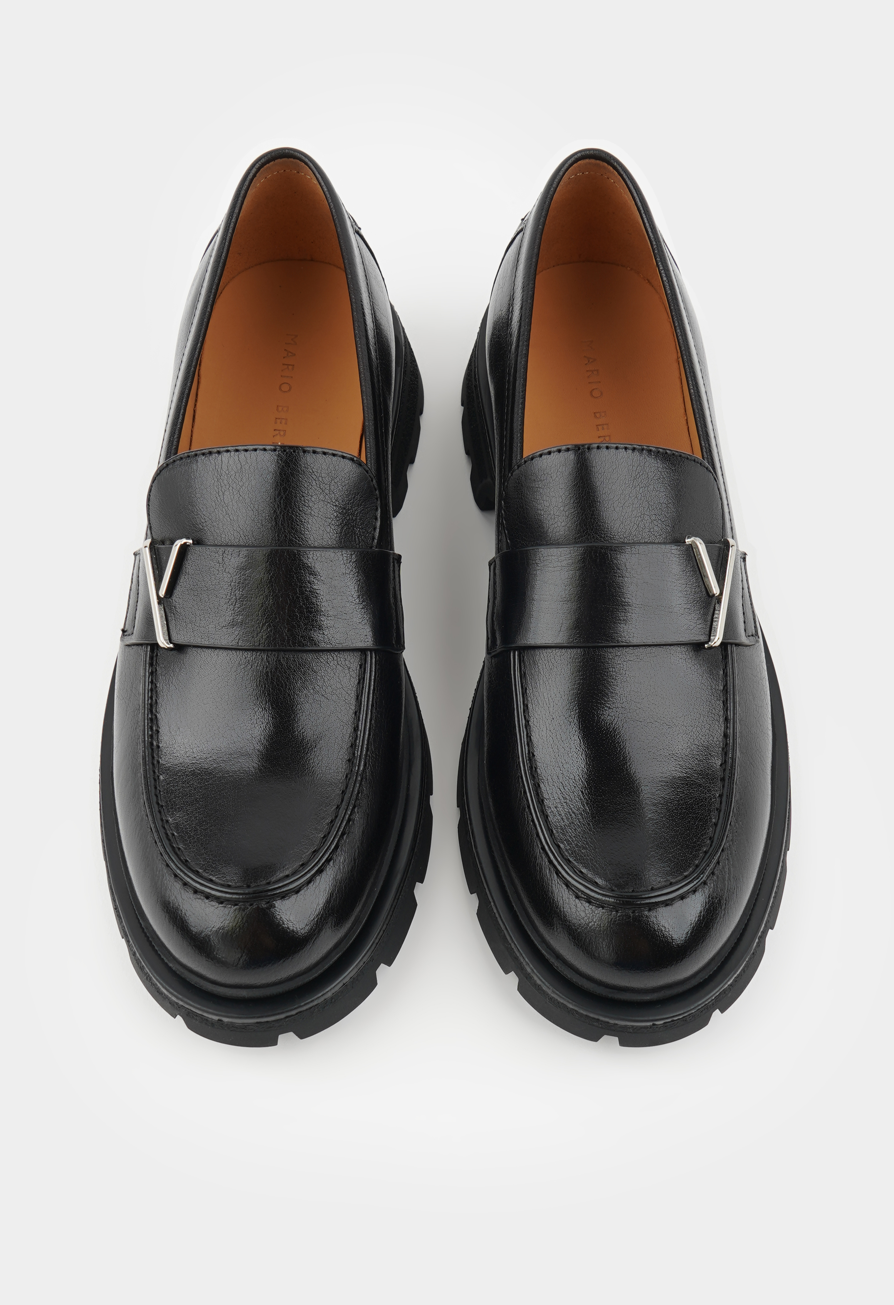 Элегантные лоферы из мягкой натуральной кожи – универсальная пара, которая одинаково уместна и в офисе, и на прогулке. Гибкая подошва и широкий устойчивый каблук дарят комфорт на весь день, а округлый мысок обеспечивает свободу движений и удобную посадку стопы. Стильная серебряная фурнитура придает образу изысканный акцент, в то время как классический черный цвет легко вписывается в любой гардероб.