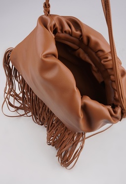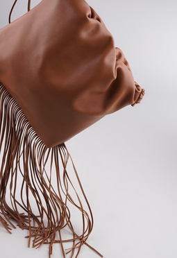 Квадратная сумочка из лимитированной коллекции выполнена из натуральной мягкой кожи коричневого оттенка и декорирована бахромой в тон. Изделие застёгивается на клапан, удобная ручка позволяет носить модель как в руках, так и на плече. Оригинальный аксессуар станет изюминкой Вашего образа и поможет создать современный наряд на каждый день.