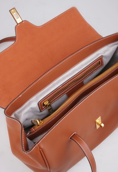 Стильная сумка из лимитированной коллекции выполнена из натуральной кожи рыжего цвета и дополнена изящной застёжкой в виде клапана. Основное отделение имеет два дополнительных кармана на молнии. Удобные ручки средней длины позволяют носить модель как в руках, так и на плече. Классический аксессуар станет украшением Вашего женственного наряда.