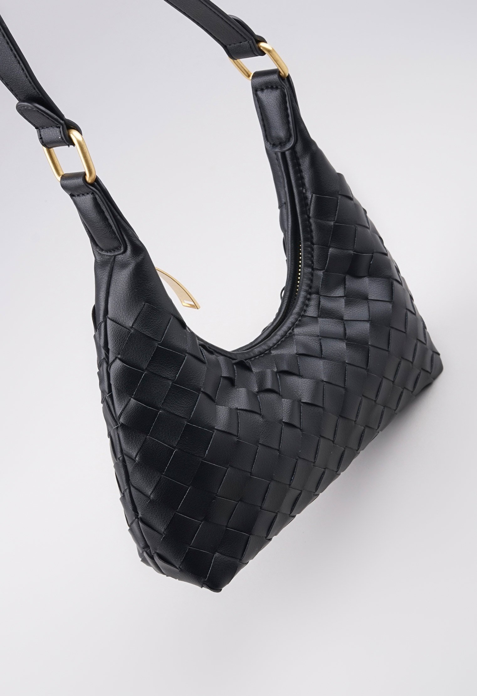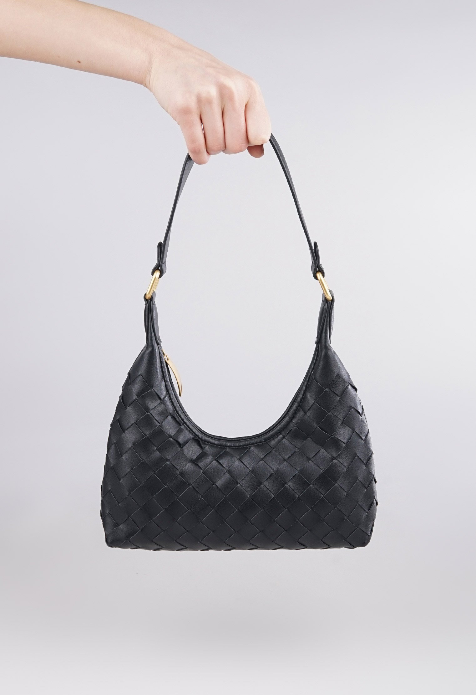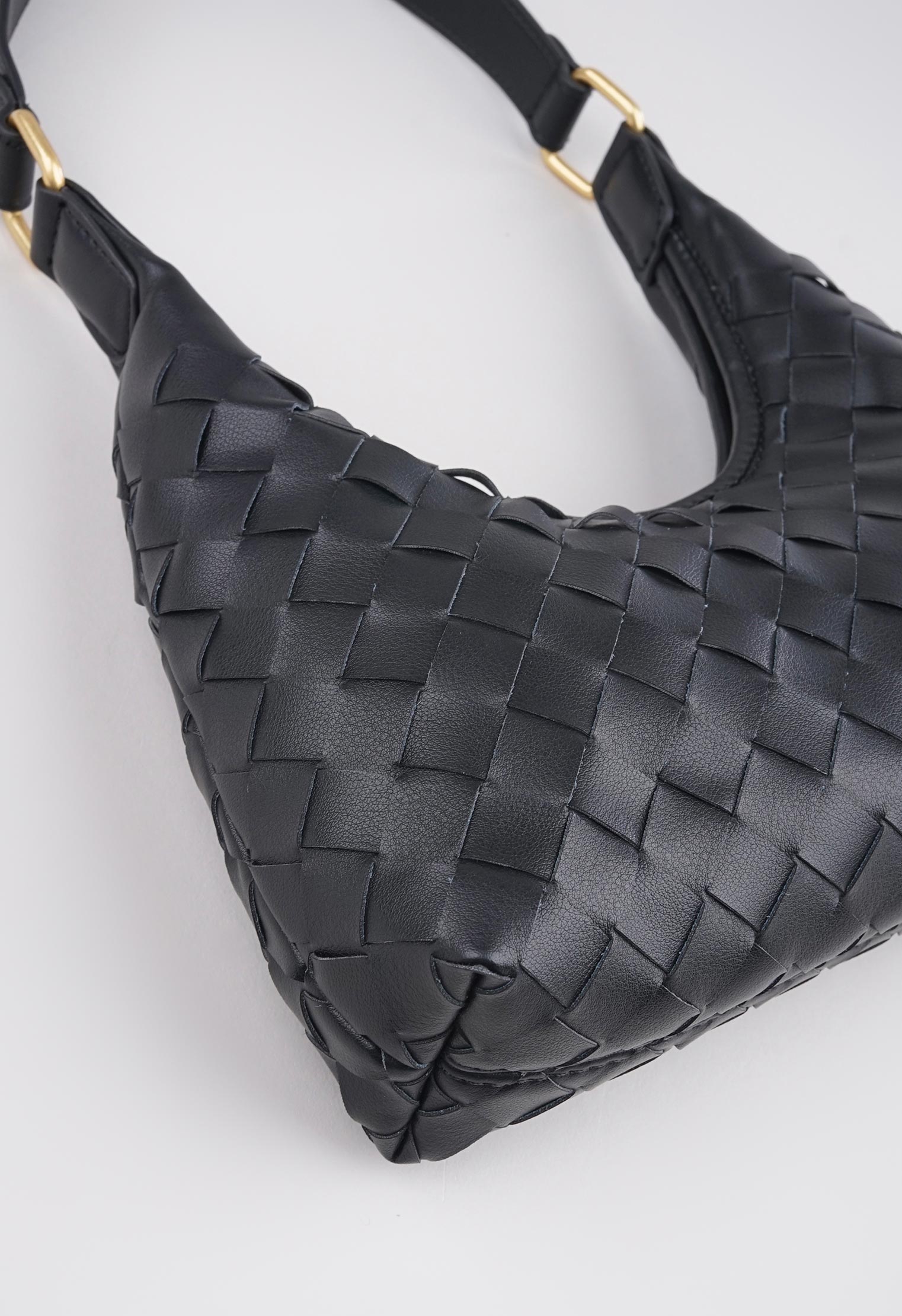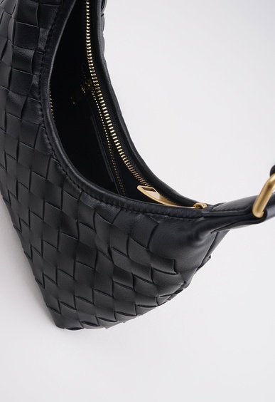 Объёмная сумка из лимитированной коллекции выполнена из натуральной кожи чёрного цвета и декорирована фактурным плетением. Изделие дополнено удобной ручкой и изящной золотистой фурнитурой. Основное отделение застёгивается на молнию и оснащено карманом для мелочей. Трендовая модель вдохновит на создание смелых образов и никогда не выйдет из моды.