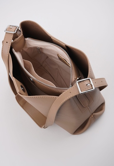 Стильная сумка из новой коллекции выполнена из натуральной кожи бежевого цвета и декорирована изящной фурнитурой. Основное отделение закрывается на молнию и дополнено двумя удобными карманами на кнопках. Актуальная модель в тандеме с трендовым оттенком идеально впишется в современный городской гардероб и вдохновит на создание смелых образов.