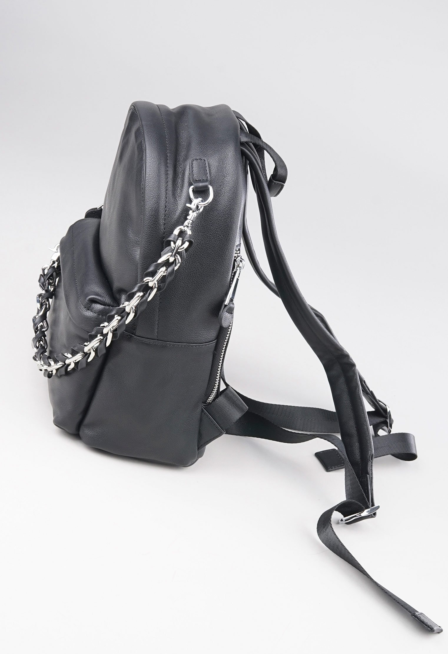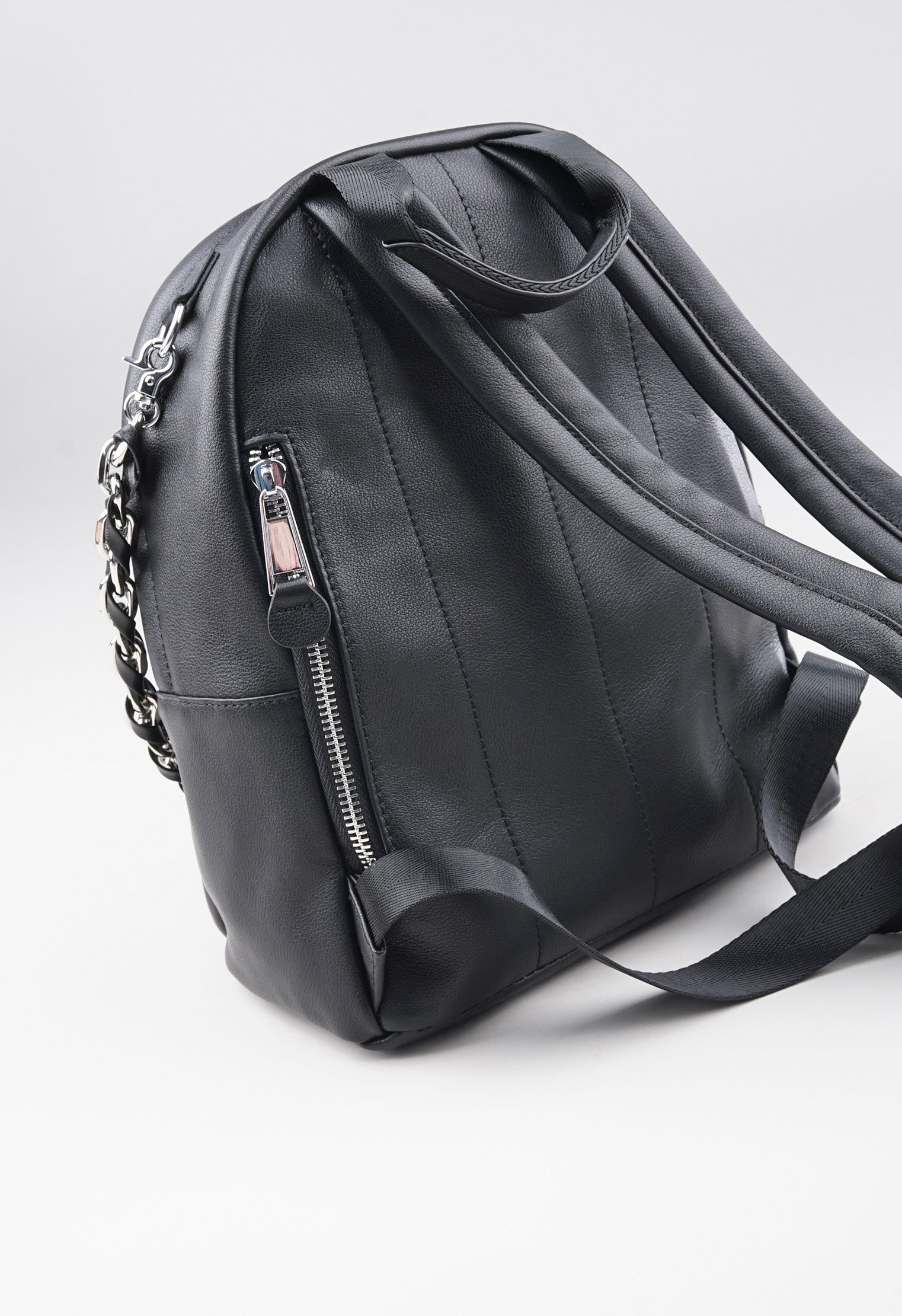 Искала именно черный кожаный рюкзак без прикрас, этот как раз такой. Форма очень приятная, декор снимается, можно и на работу пойти. Плюс для отпуска очень хорошая модель, вместительная. Сответую!
