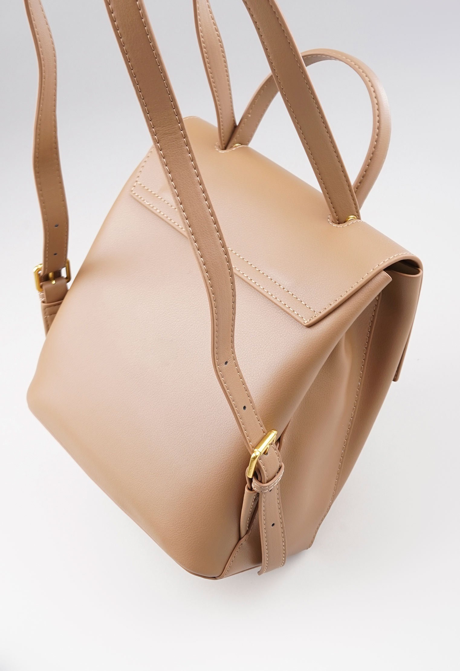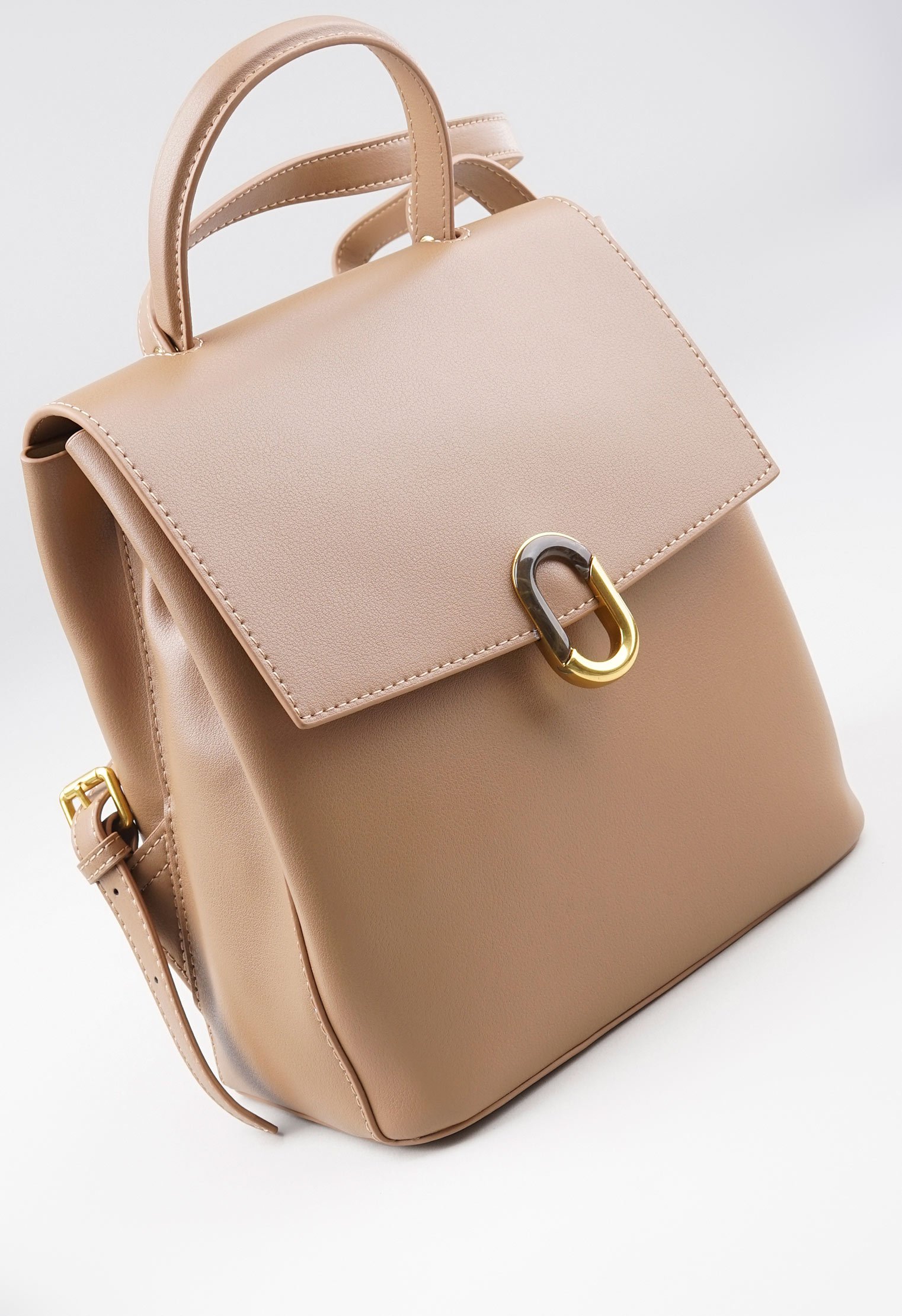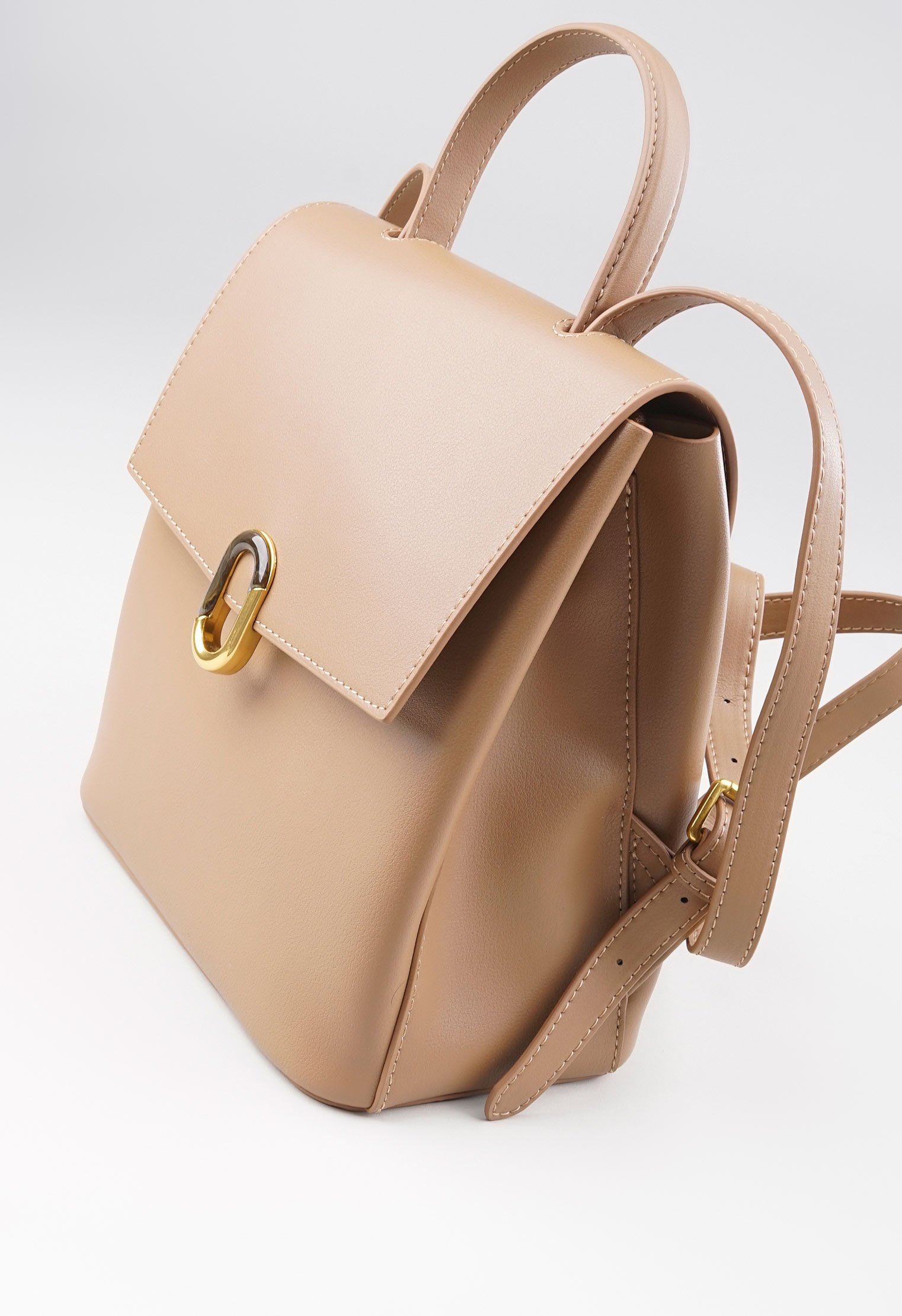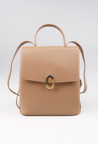 Однотонный рюкзак с откидным верхом изготовлен из натуральной кожи и представлен в бежевом цвете. Изделие дополнено удобной ручкой и плечевыми ремнями с регулировкой длины. Основное отделение закрывается на магнит и имеет два внутренних кармана. Лаконичная модель в трендовом оттенке превосходно впишется в повседневный гардероб городской модницы.
