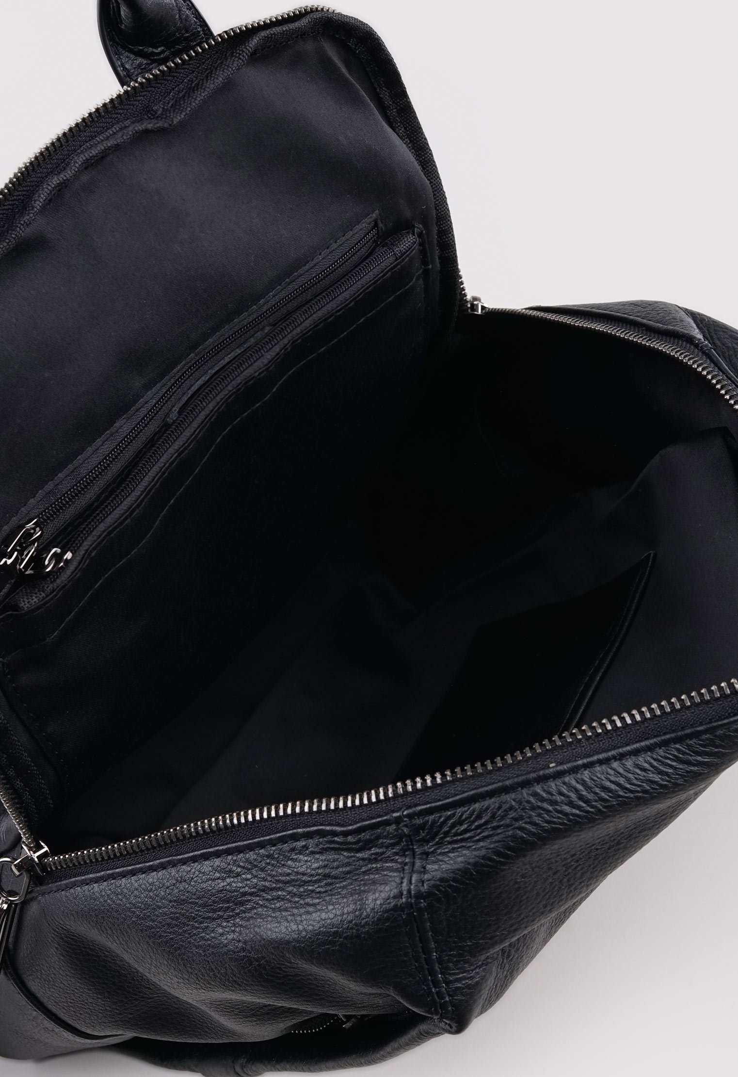 Рюкзак из новой коллекции выполнен из натуральной зернистой кожи и дополнен удобной ручкой в тон. Изделие оснащено четырьмя внутренними карманами и четырьмя карманами с внешней стороны. Широкие ремни с регулировкой длины позволяют носить аксессуар в руках и на плече. Лаконичная модель превосходно впишется как в деловой, так и в повседневный образ.