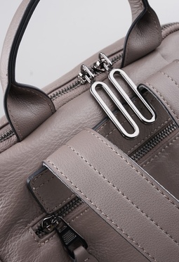 Вместительный рюкзак из новой коллекции выполнен из натуральной кожи и дополнен широкими ремнями. Изделие декорировано металлической фурнитурой и дополнено короткой ручкой. Основное отделение закрывается на молнию и имеет четыре внутренних кармана. Современный дизайн позволяет сочетать модель с элементами классического и повседневного гардероба.