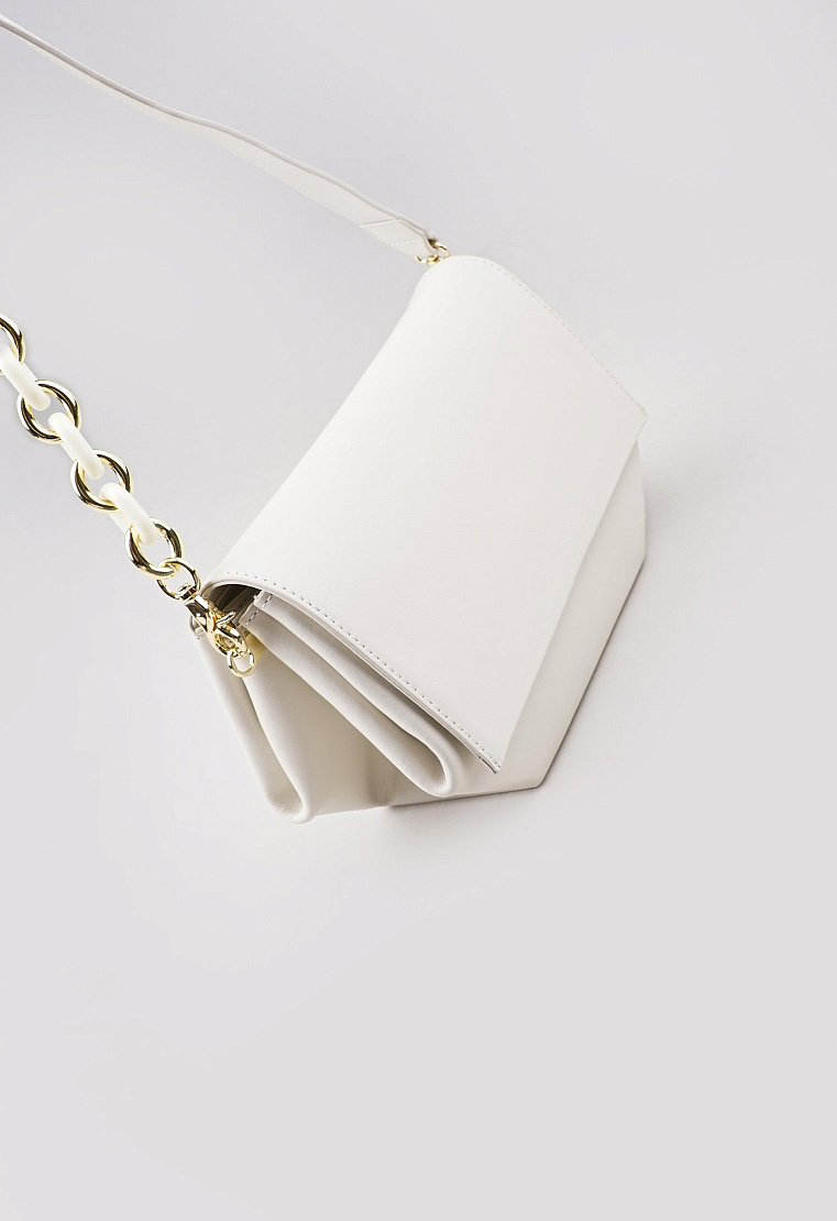 Сумка симпатичная, не мелкая, благодаря дну и размерам помещается все, цвет не кипельно белый, красиво выглядит вживую. Ремень длинный все регулируется, ручка тоже обалденная, дизайн выше всех похвал! Внутри 2 кармана, застежка магнитная. Мне понравилась, нарядно и в тренде!))