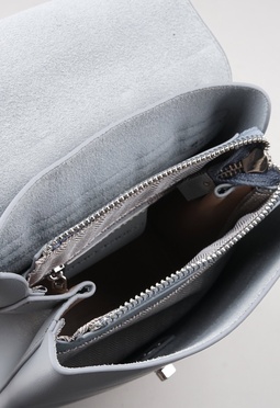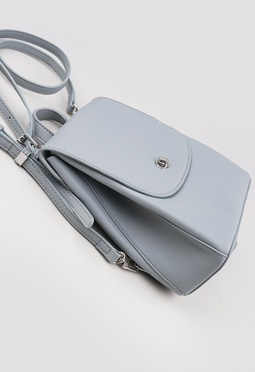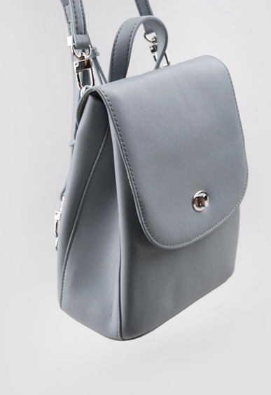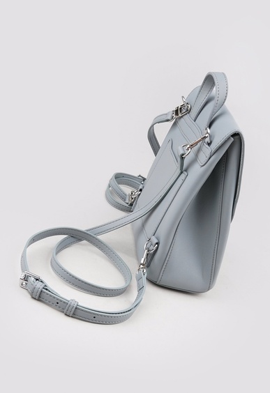 Стильный рюкзак из новой коллекции изготовлен из натуральной кожи и представлен в голубом цвете. Изделие закрывается на клапан и дополнено двумя внутренними карманами. Съёмные плечевые ремни позволяют носить аксессуар в руках и на плече. Универсальная модель удачно сочетается как с женственными нарядами, так и элементами классического гардероба.
