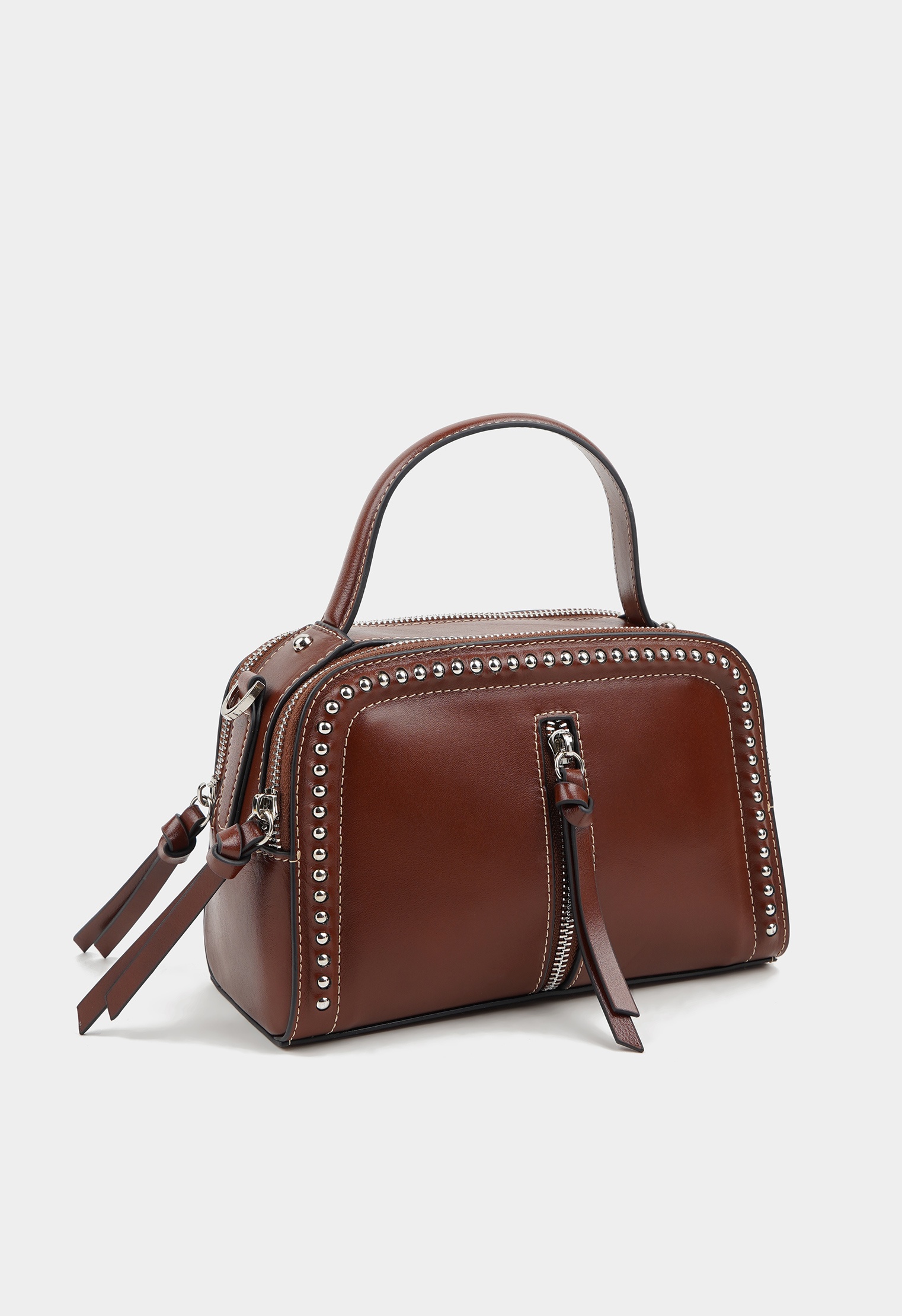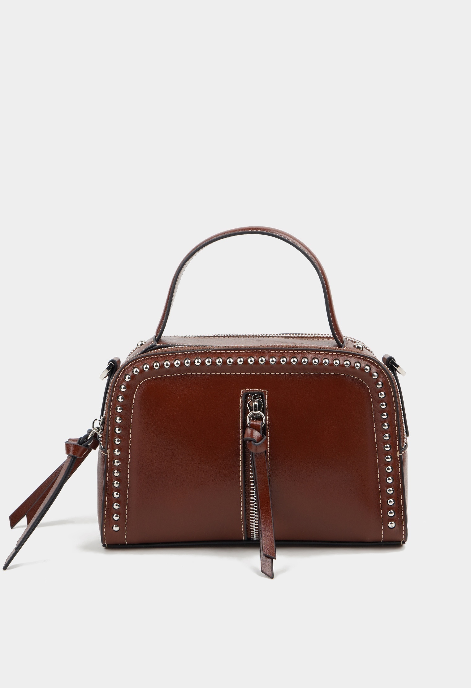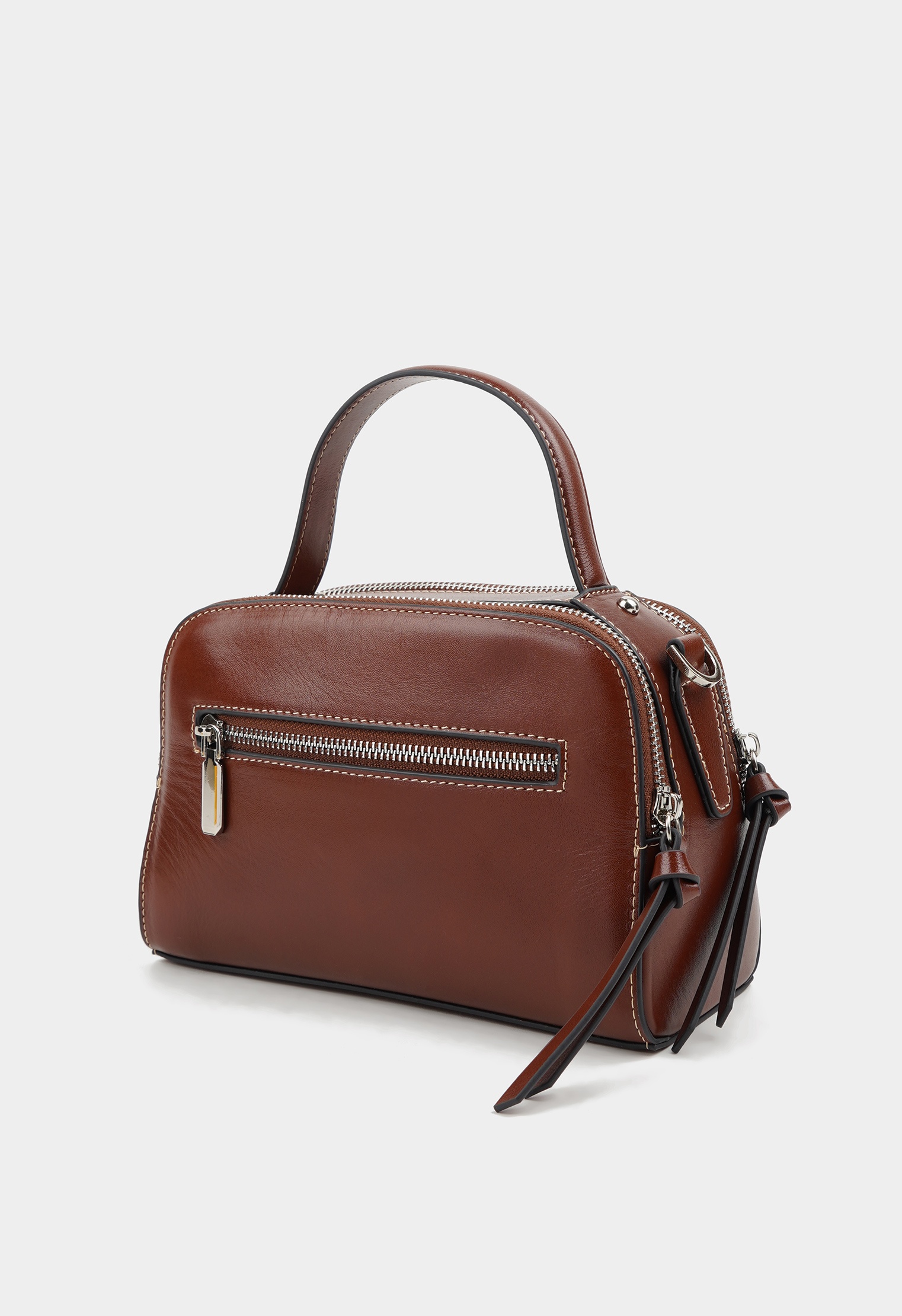 Компактная сумка из новой коллекции изготовлена из натуральной кожи и представлена в однотонном дизайне. Трендовый силуэт дополнен короткой ручкой и металлической фурнитурой. Основное отделение закрывается на молнию и имеет два внутренних кармана для мелочей. Эффектная модель станет украшением классического и повседневного гардероба.