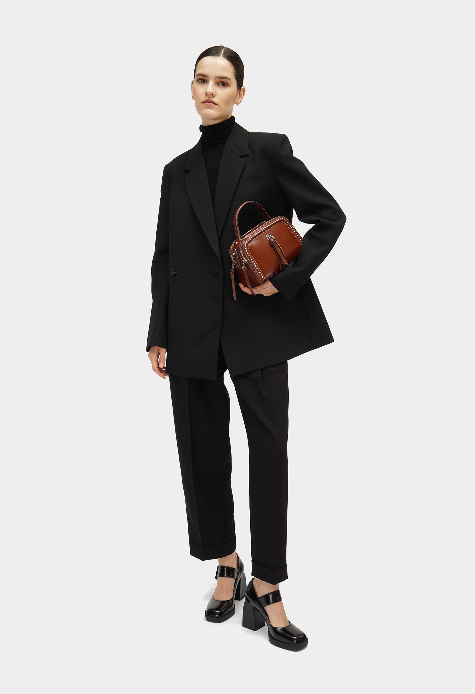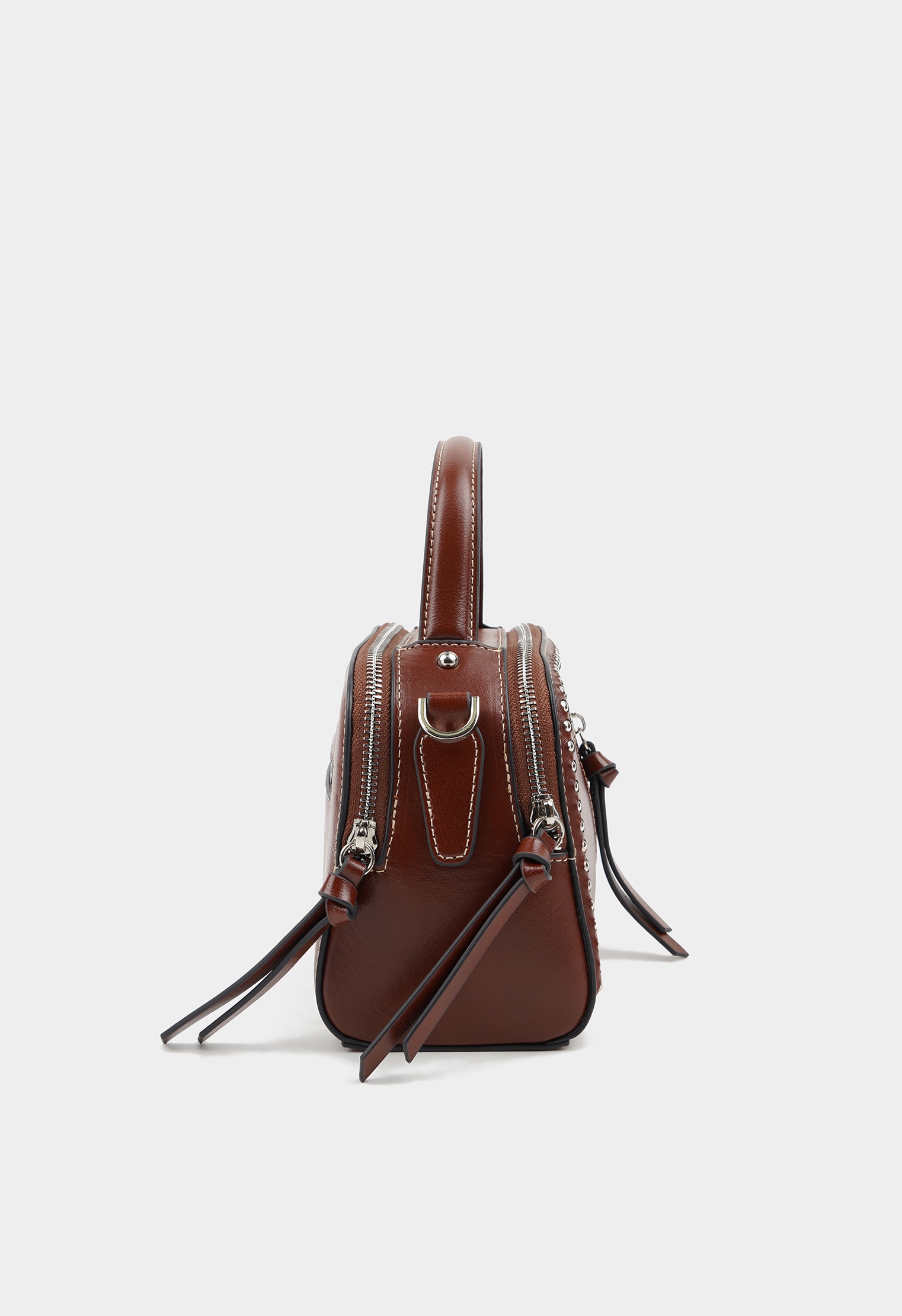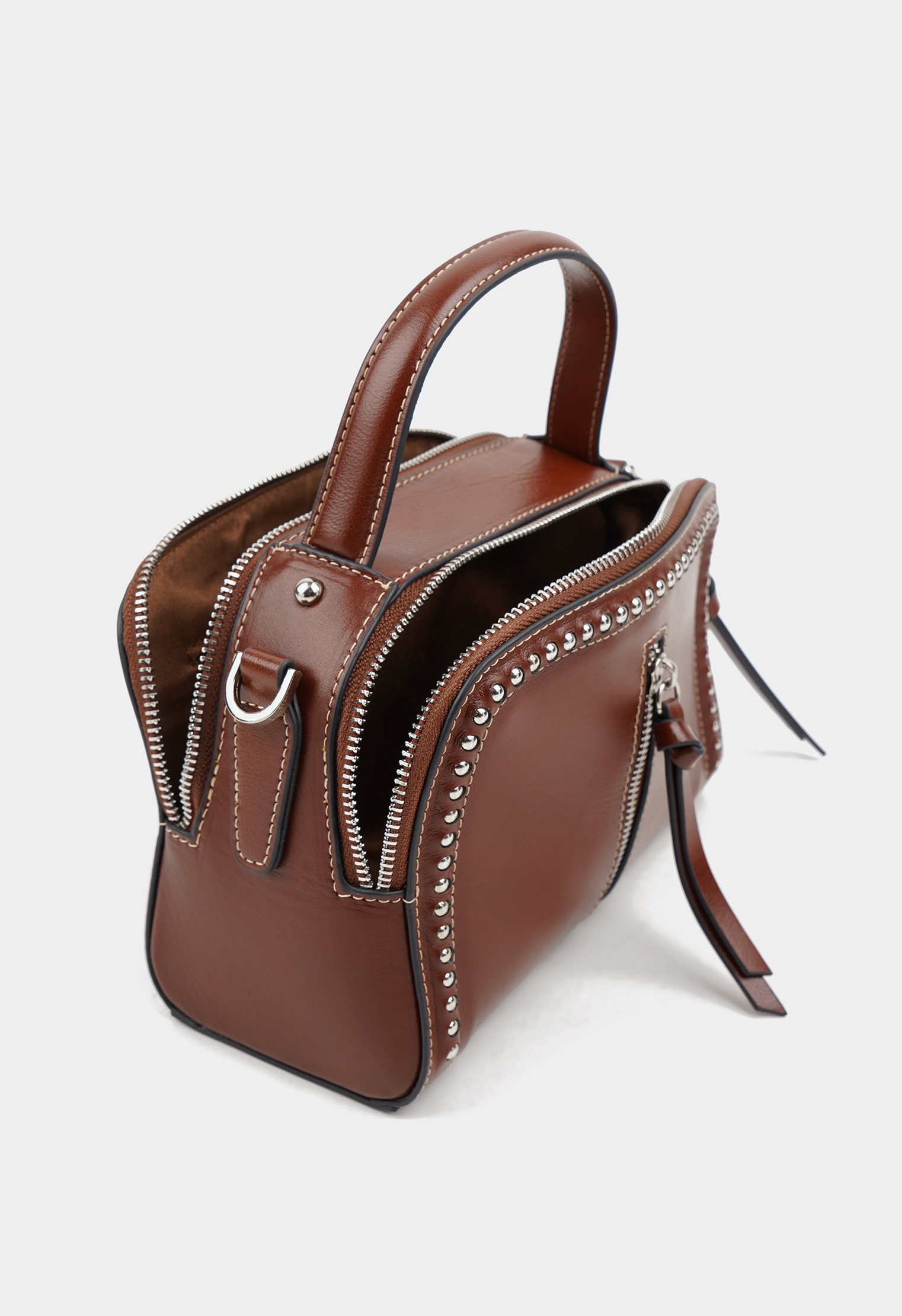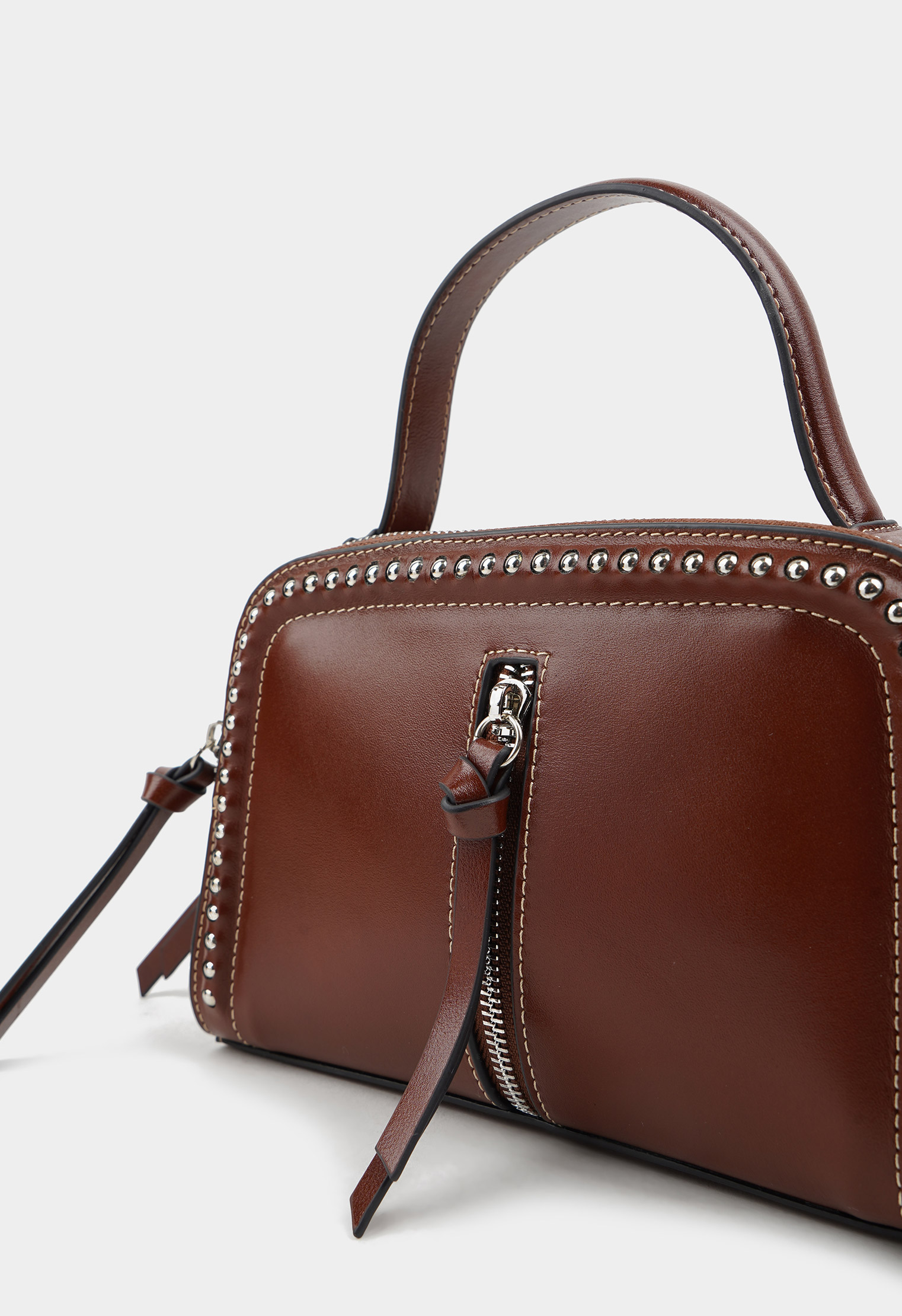Компактная сумка из новой коллекции изготовлена из натуральной кожи и представлена в однотонном дизайне. Трендовый силуэт дополнен короткой ручкой и металлической фурнитурой. Основное отделение закрывается на молнию и имеет два внутренних кармана для мелочей. Эффектная модель станет украшением классического и повседневного гардероба.
