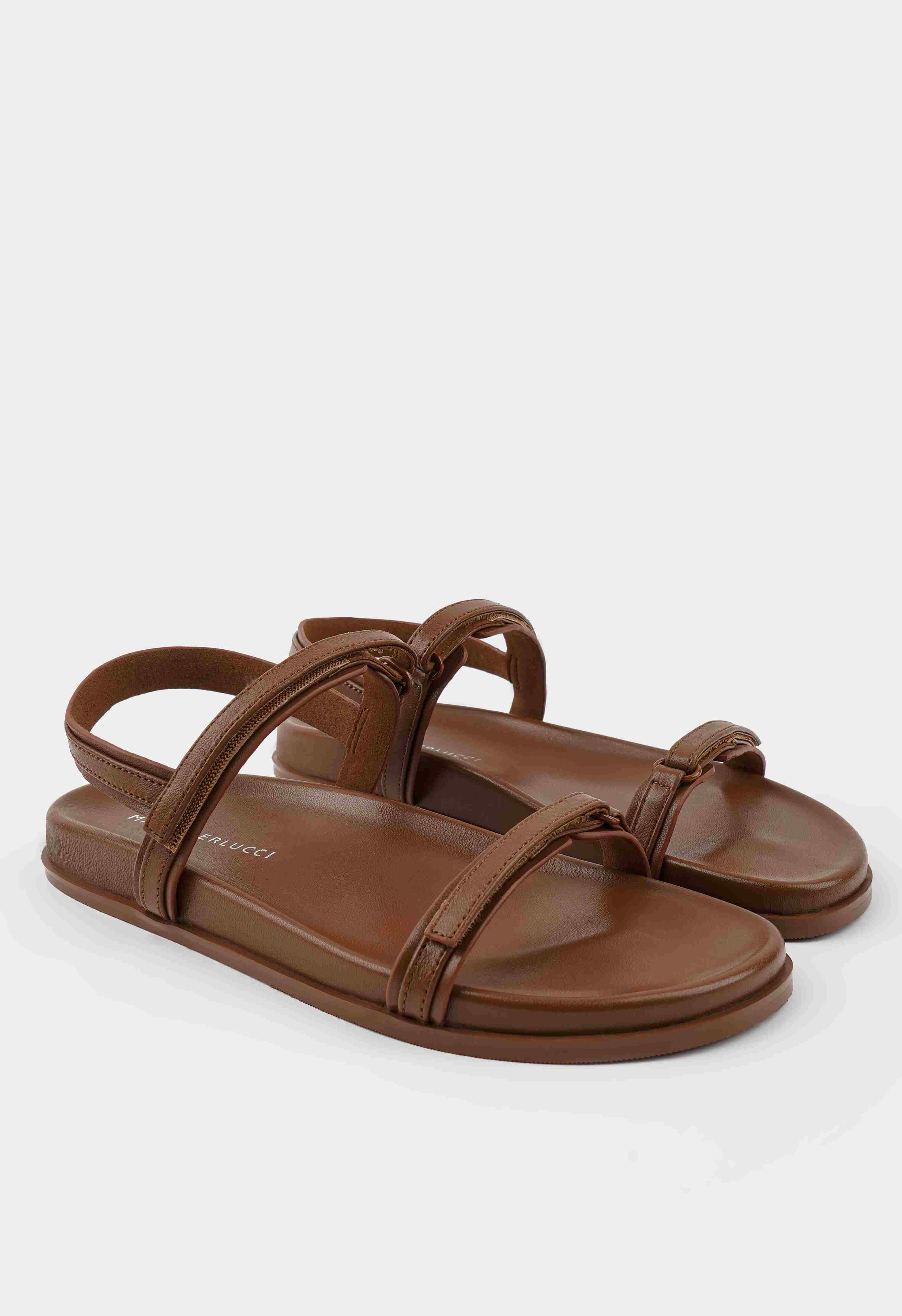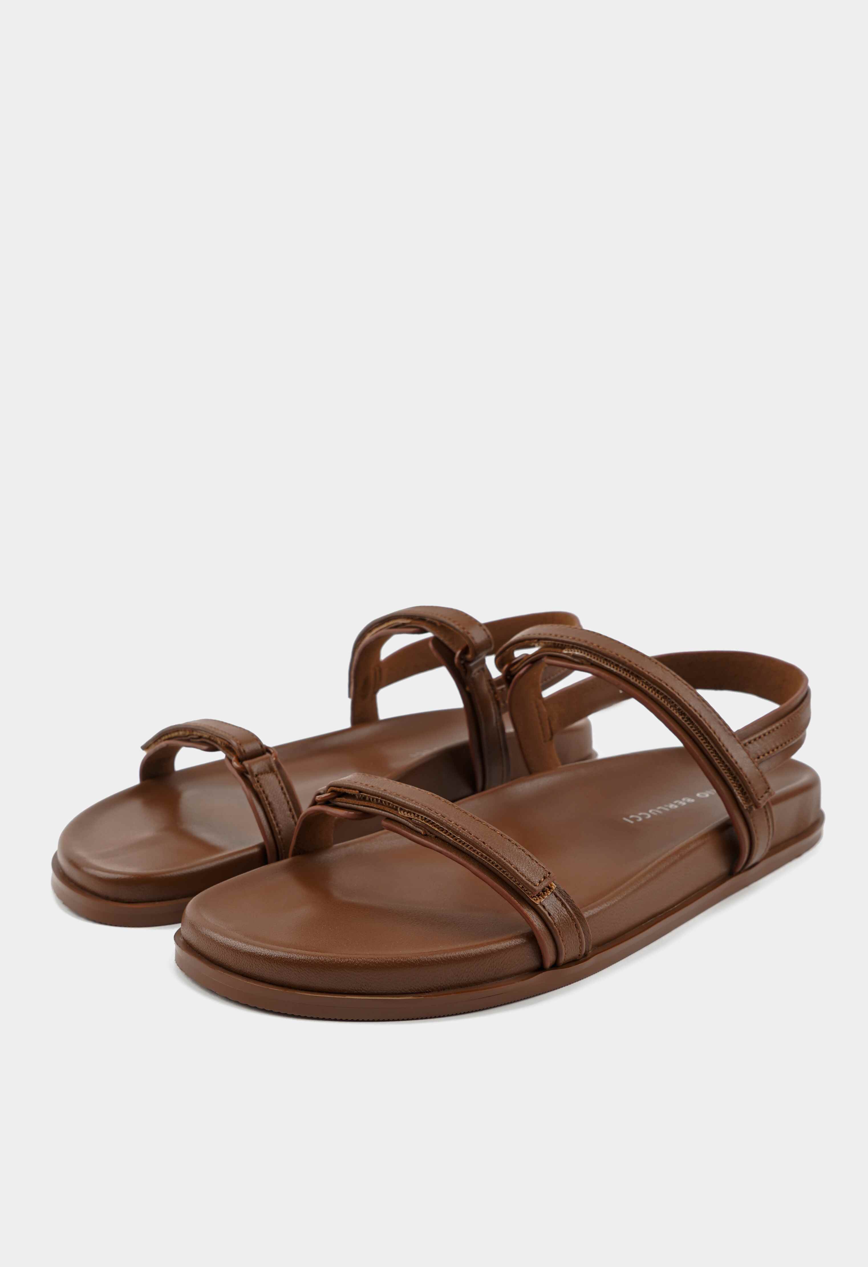 Эти минималистичные сандалии из натуральной кожи в классическом коричневом цвете – универсальный выбор для теплого сезона. Элегантные ремешки с фурнитурой в тон модели и удобной липучкой создают чистый и современный силуэт, а гибкая подошва дарит комфорт при каждом шаге. Открытый мысок делает модель легкой и дышащей. Сандалии легко сочетаются с повседневными и расслабленными образами.