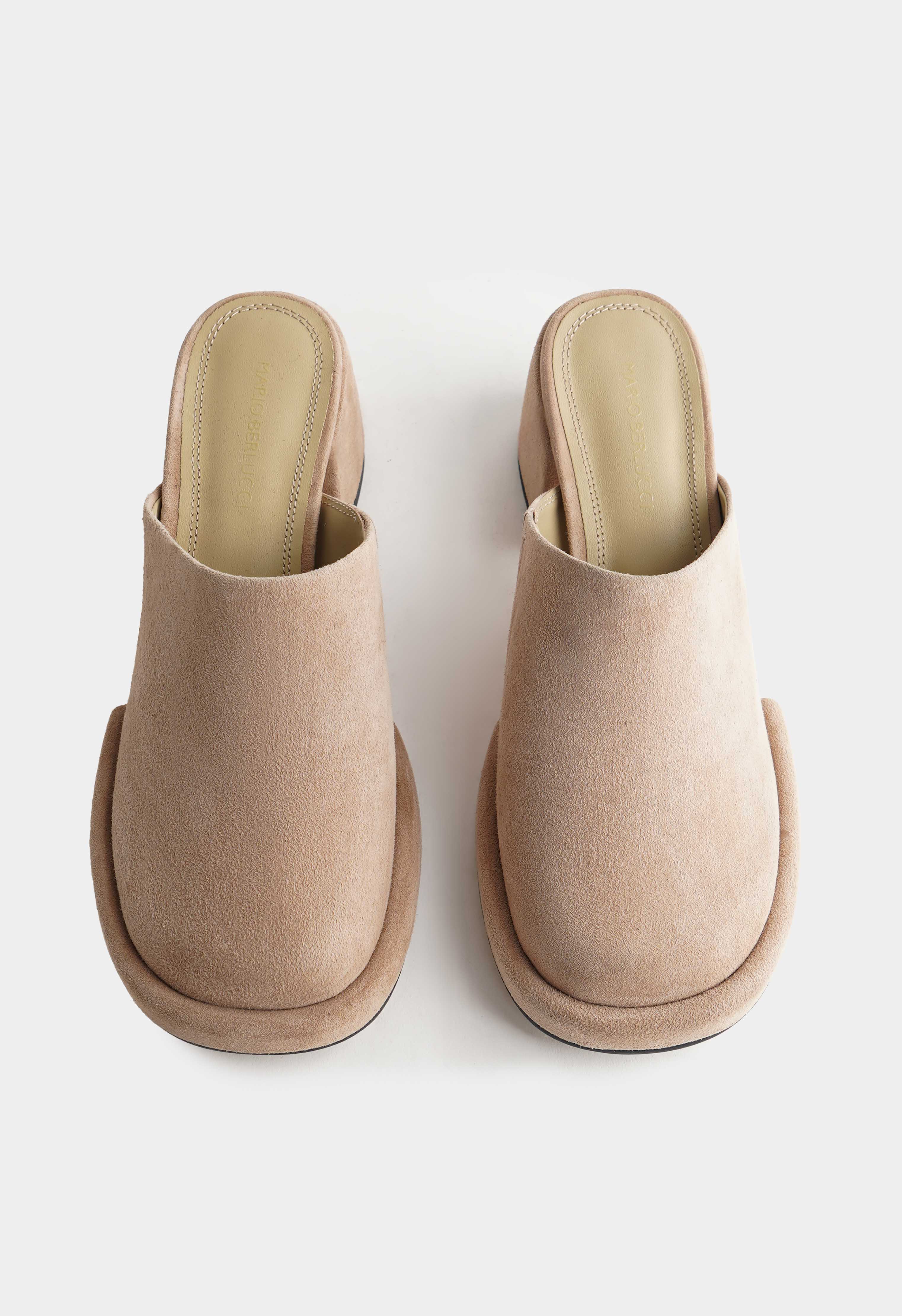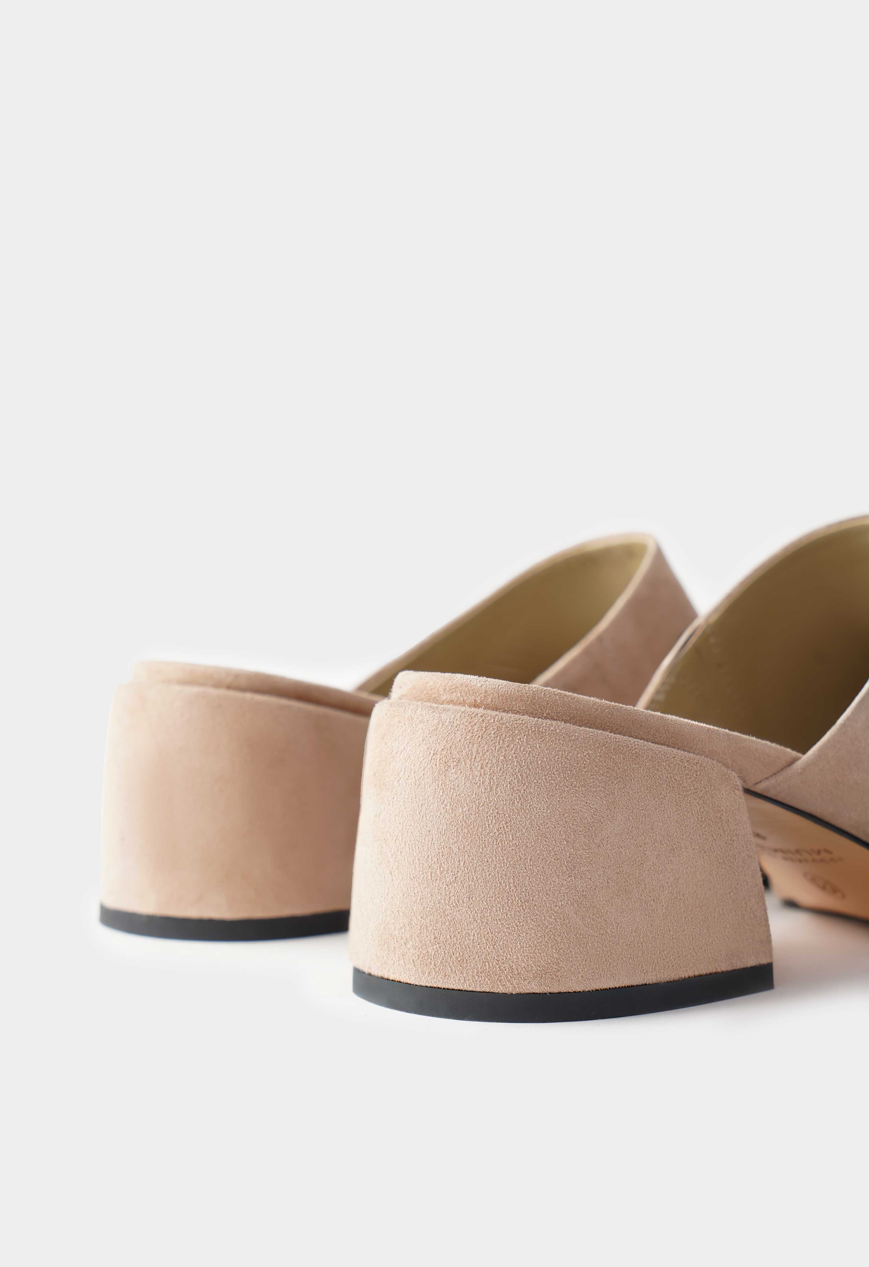 Бежевые мюли из натуральной замши – спокойная, благородная пара, которая выглядит мягко и дорого за счет бархатистой фактуры. Квадратный мысок задает современную геометрию и делает силуэт аккуратным, а каблук-«кирпичик» добавляет устойчивую высоту и уверенный шаг без лишнего напряжения. Жесткая подошва хорошо держит форму и подчеркивает четкие линии модели. Такие мюли легко вписываются в летний и межсезонный гардероб: красиво смотрятся с льном, денимом, костюмными брюками и платьями, добавляя образу ухоженный, собранный вид.