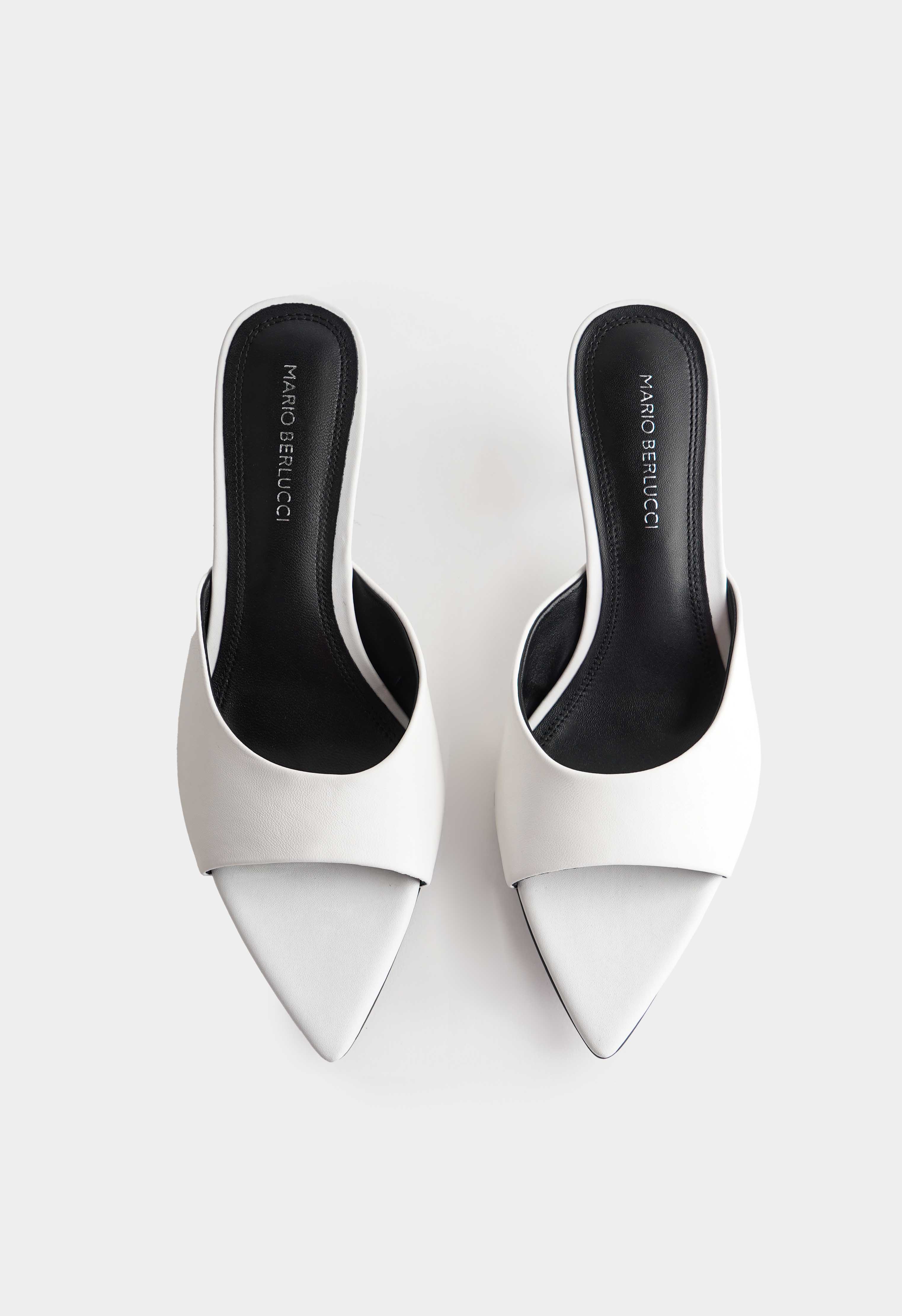Белые мюли из натуральной кожи – эффектная пара с элегантными линиями и комфортной посадкой, которая мгновенно делает образ более собранным. Широкий кожаный верх аккуратно фиксирует стопу, открытый мысок добавляет легкости и подчеркивает педикюр. Изящный клиновидный каблук смотрится современно и визуально вытягивает силуэт, сохраняя уверенную опору. Жесткая подошва держит форму и дает стабильный шаг.