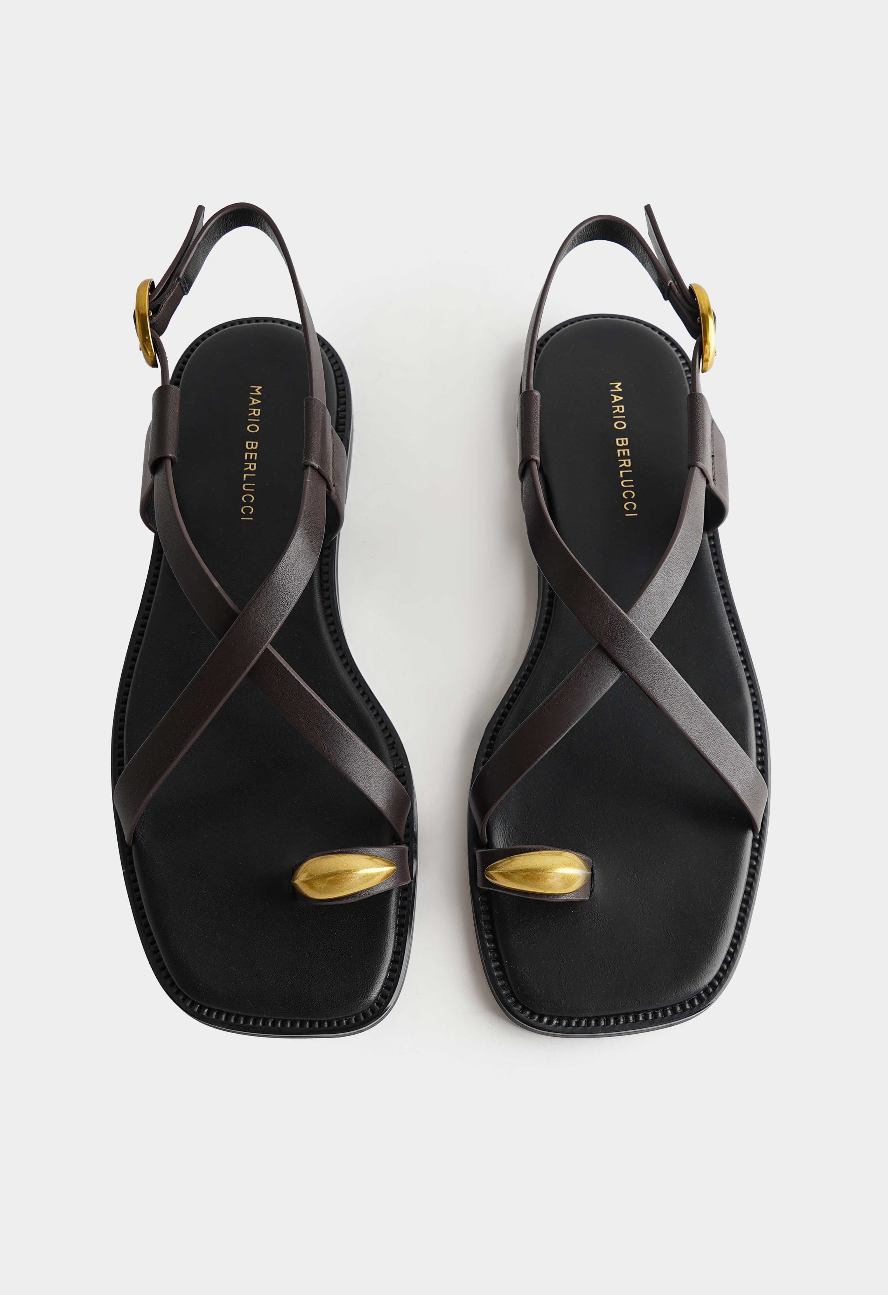 Эти коричневые сандалии из натуральной кожи – стильное решение для тех, кто ценит лаконичность с акцентом на детали: изящные ремешки с золотой фурнитурой подчеркивают современный характер модели, открытый мысок добавляет легкости, а платформа обеспечивает комфорт и уверенность в каждом шаге. Пряжка позволяет идеально отрегулировать посадку, в то время как жесткая подошва гарантирует надежность и устойчивость – универсальный вариант для городских образов с характером.