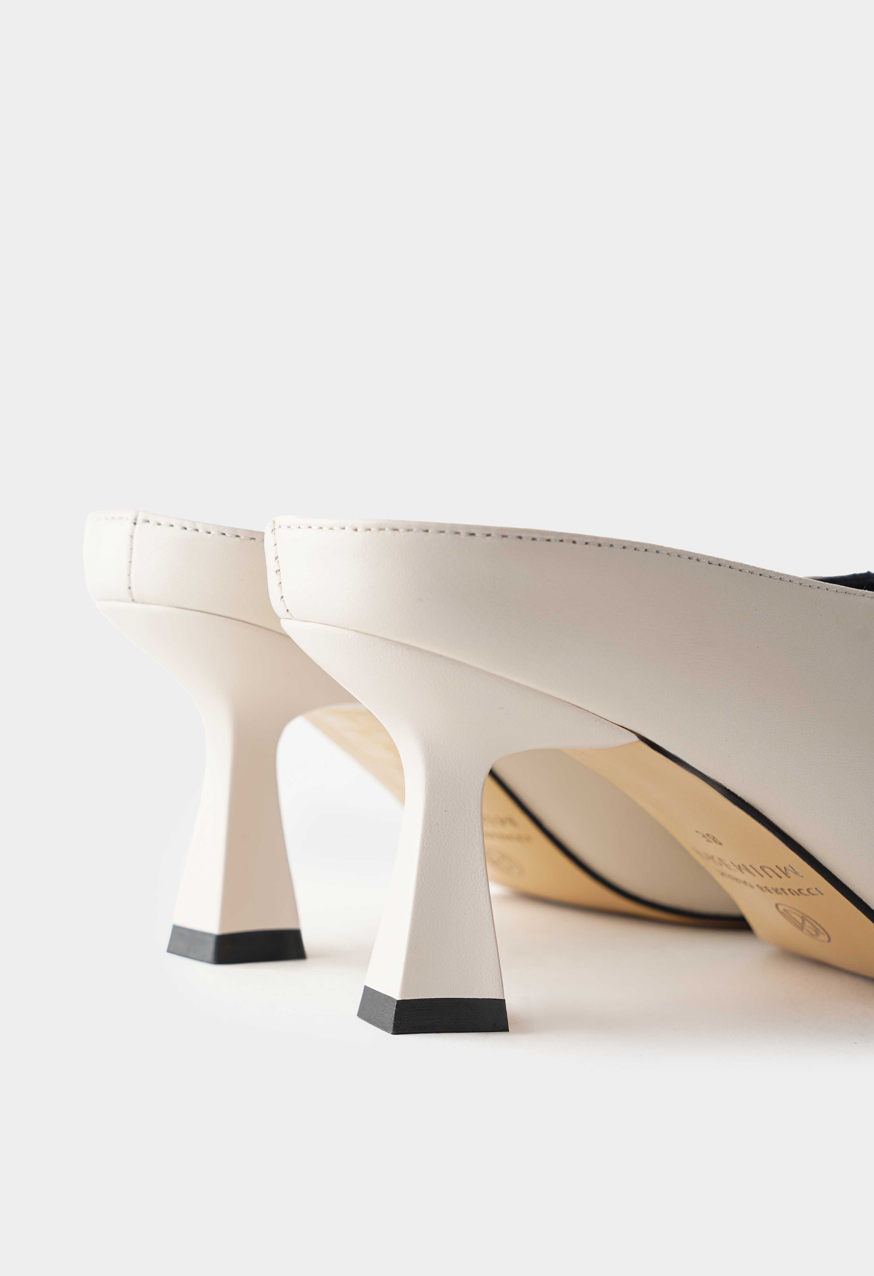 Молочные мюли из натуральной кожи – элегантная пара с аккуратными линиями и выразительным силуэтом, которая моментально делает образ более собранным. Открытый мысок добавляет легкости и красиво подчеркивает педикюр. Изящный каблук-рюмка придает женственности и утонченной высоты, оставаясь устойчивым для уверенного шага. Жесткая подошва держит форму и обеспечивает стабильную походку.