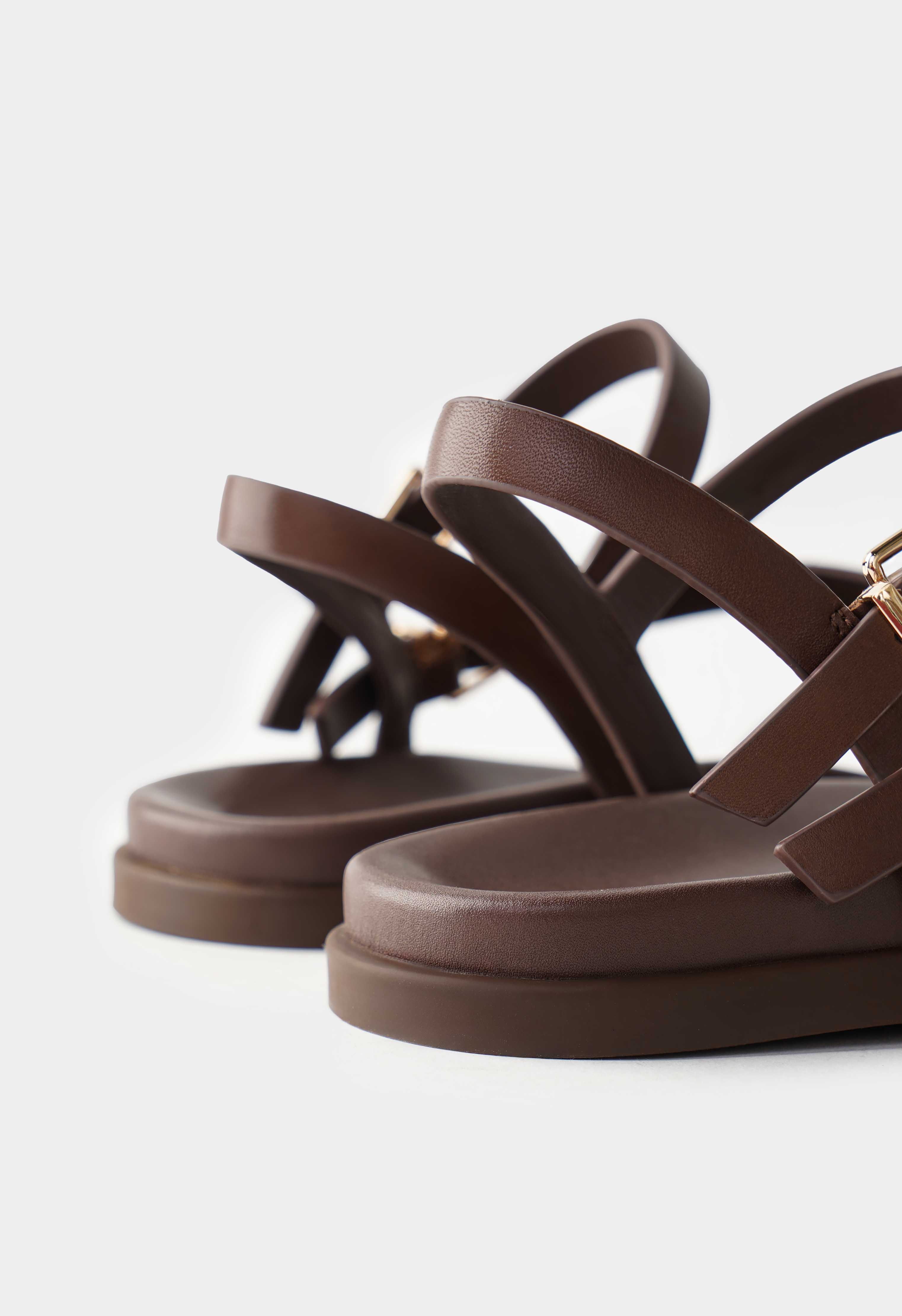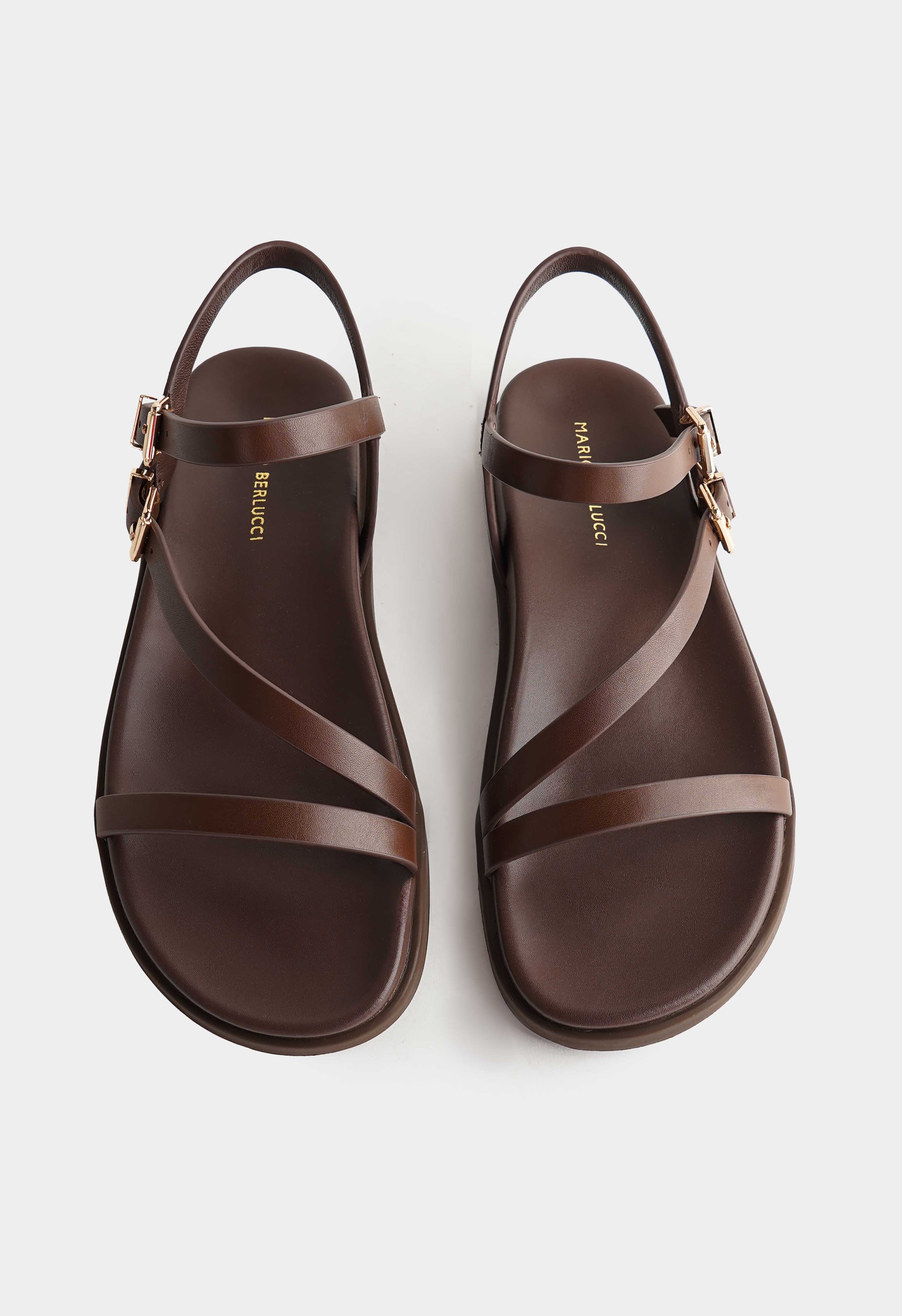 Стильные коричневые сандалии из натуральной кожи – универсальная база для любого летнего гардероба. Лаконичный дизайн с открытым мысом подчеркивает легкость образа, а изящные ремешки с золотыми пряжками добавляют элегантный акцент. Платформа придает современный вид и дополнительную поддержку, в то время как гибкая подошва дарит мягкость и свободу движений.