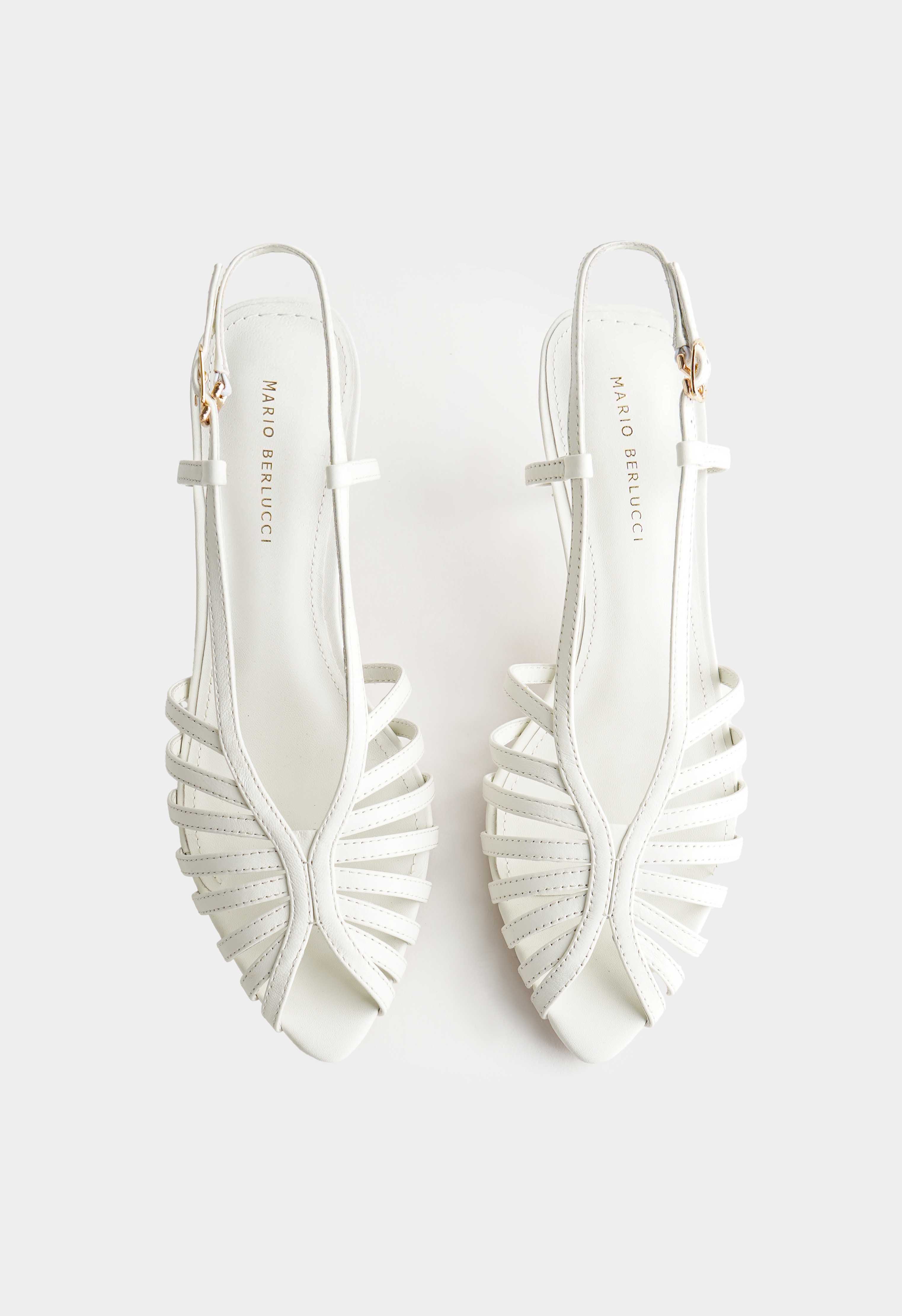 Изящные белые босоножки из натуральной кожи – воплощение легкости и элегантности для летнего гардероба. Открытый мысок и утонченные переплетения ремешков красиво подчеркивают стопу, создавая женственный и воздушный образ. Удобный клиновидный каблук обеспечивает устойчивость в течение всего дня. Аккуратная золотая пряжка добавляет изысканный акцент и надежно фиксирует обувь на ноге. Жесткая подошва гарантирует уверенность в каждом шаге, делая эту модель идеальным выбором как для повседневных, так и для особых выходов.