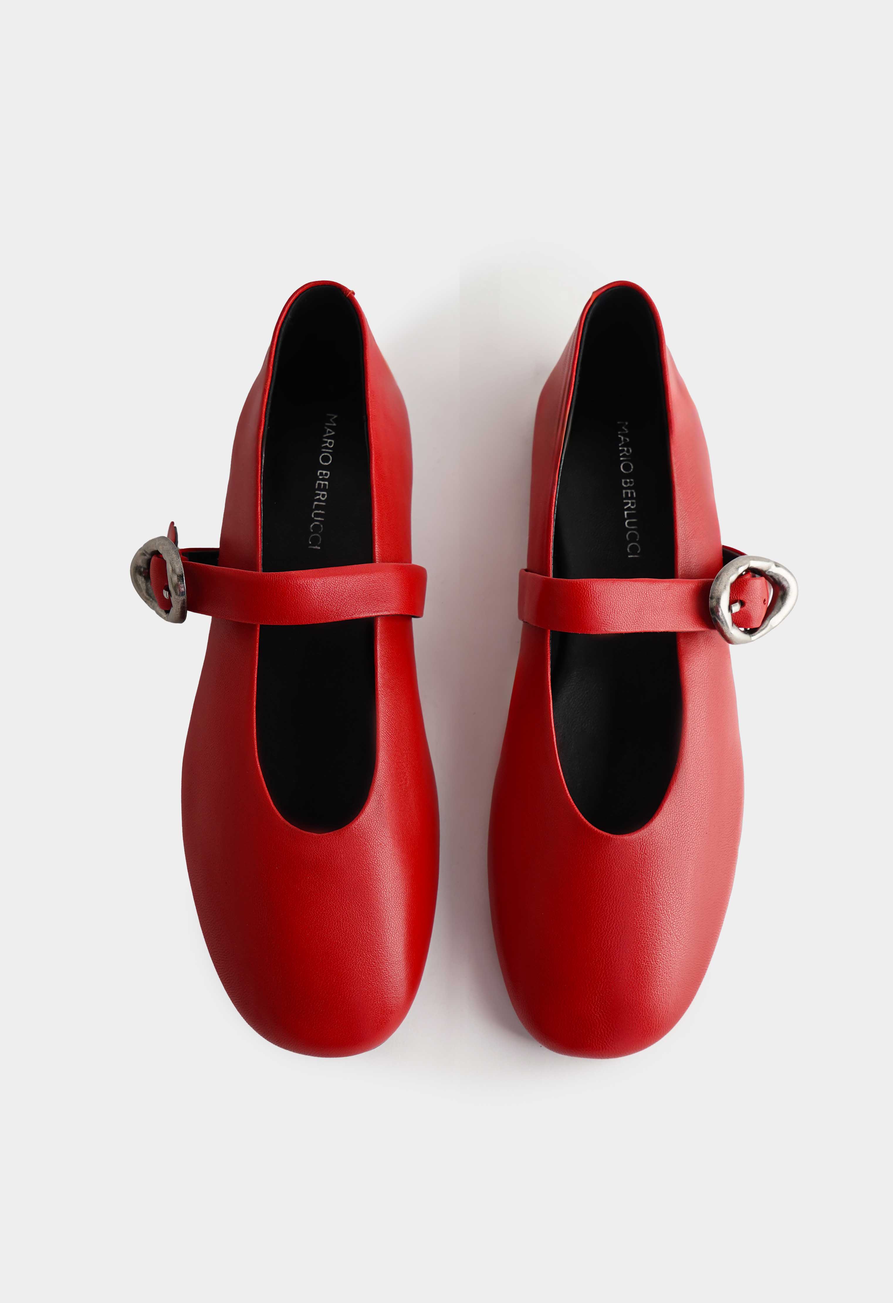 Красные балетки из натуральной кожи – свежая, аккуратная пара, которая добавляет образу легкости и ухоженности. Округлый мысок создает мягкий силуэт и комфортную посадку, а невысокий венский каблук делает модель удобной для активного дня. Акцентный ремешок с пряжкой в цвете металлик смотрится как украшение и придает балеткам изящный характер. Жесткая подошва хорошо держит форму и дает стабильную опору.