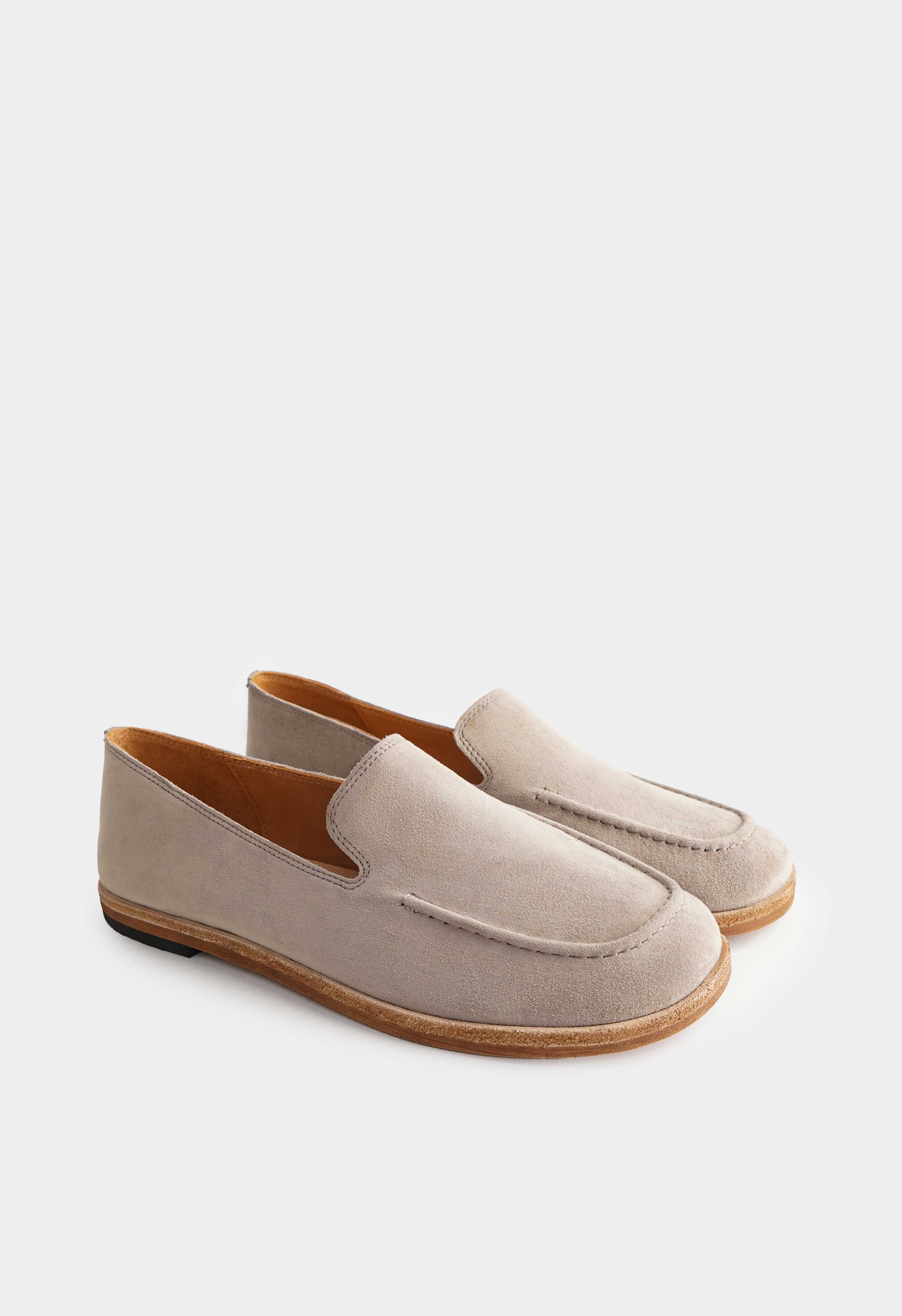 Бежевые лоферы из натуральной замши – спокойная, благородная пара с аккуратным дизайном и уютной фактурой. Бархатистая замша выглядит аккуратно и дорого, а квадратный мысок добавляет современную геометрию и делает силуэт более собранным. Невысокий венский каблук удобен для активного дня и сохраняет элегантный вид без лишней высоты. Жесткая подошва держит форму и даёт стабильную опору – отличный вариант для офиса, прогулок и образов в светлой базовой палитре.