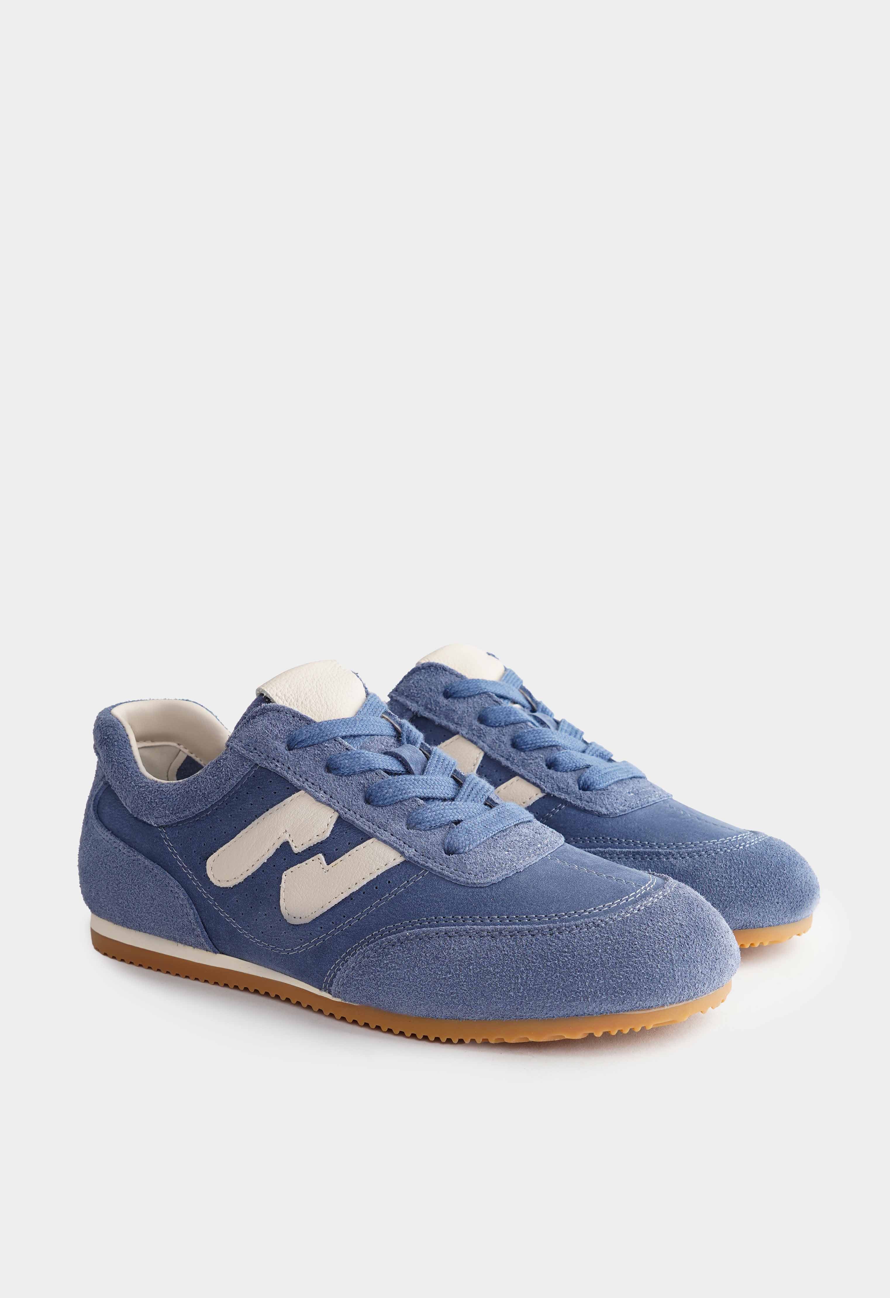 Синие кроссовки из натуральной замши – стильная пара с мягкой бархатистой фактурой и свежим контрастом светлых деталей. Округлый мысок обеспечивает комфортную посадку на каждый день, а аккуратная шнуровка помогает точно отрегулировать фиксацию по стопе. Платформа добавляет рост и делает силуэт более собранным, при этом не утяжеляет образ. Гибкая подошва приятно амортизирует и легко сгибается при ходьбе.