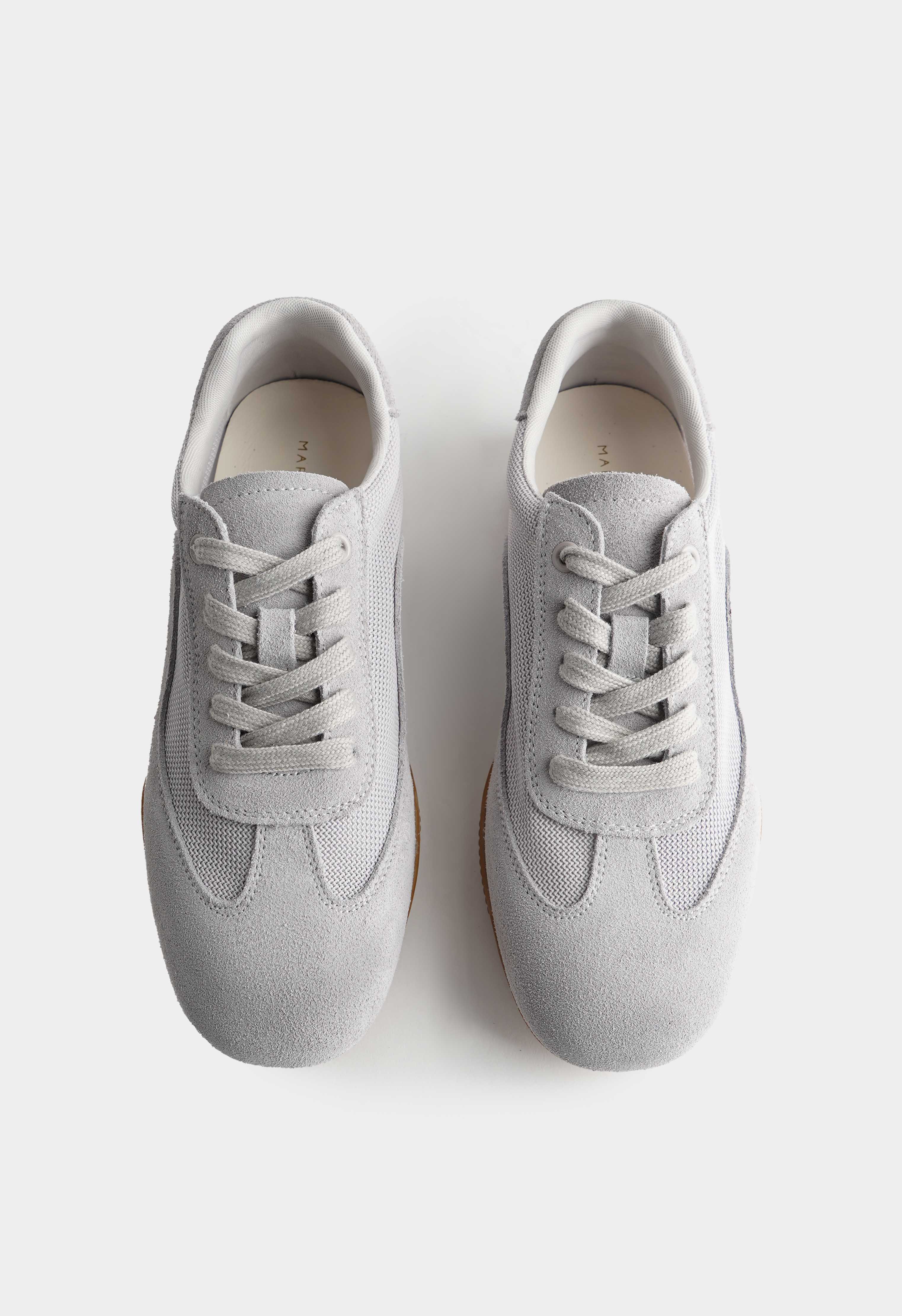 Летние голубые кроссовки из натуральной замши – светлая пара с аккуратным спортивным силуэтом и приятной фактурой. Бархатистая замша выглядит нежно и ухоженно, а округлый мысок обеспечивает комфортную посадку на каждый день. Шнуровка помогает точно настроить фиксацию и делает образ аккуратнее. Платформа деликатно приподнимает силуэт и добавляет современный объем, в то время как гибкая подошва легко сгибается при шаге и поддерживает легкую, комфортную ходьбу в городском ритме.