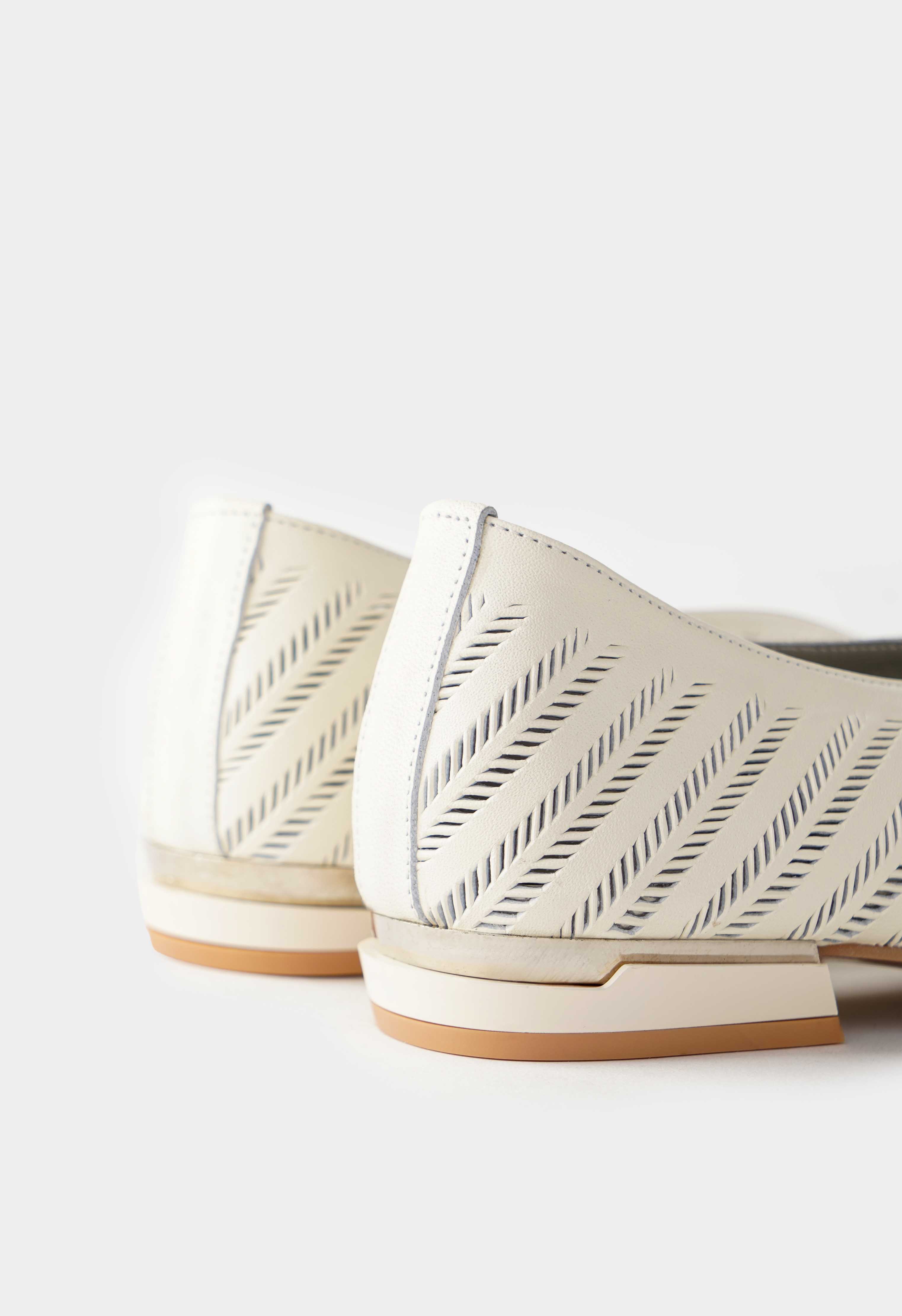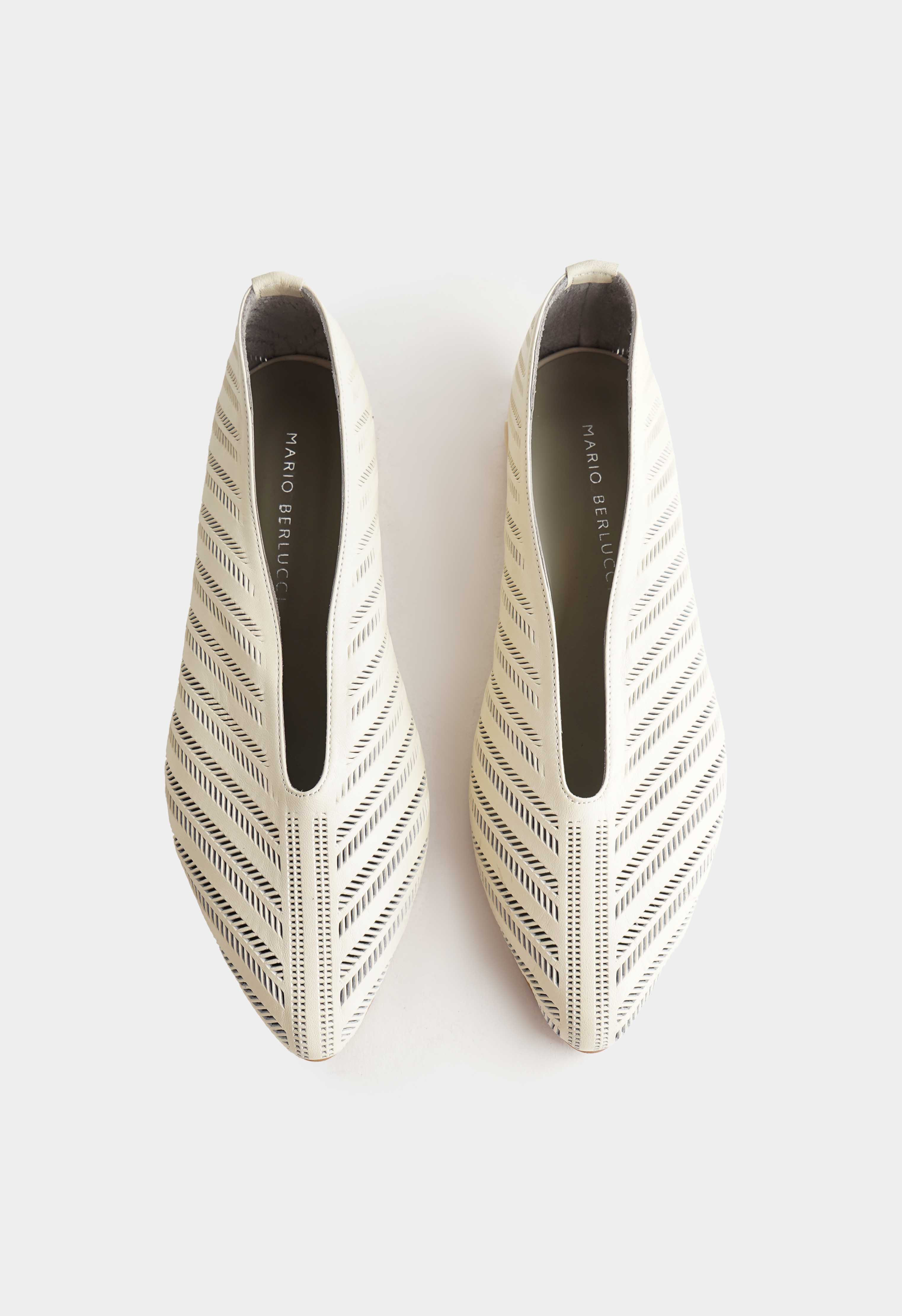 Утонченные бежевые туфли из натуральной кожи – стильное сочетание легкости и современного дизайна: перфорированная фактура придает модели воздушность и делает образ более выразительным, а заостренный мысок добавляет элегантности и визуально вытягивает силуэт. Серебряная фурнитура аккуратно подчеркивает минималистичный стиль, венский каблук обеспечивает комфорт на каждый день, в то время как жесткая подошва гарантирует устойчивость и уверенность при ходьбе.