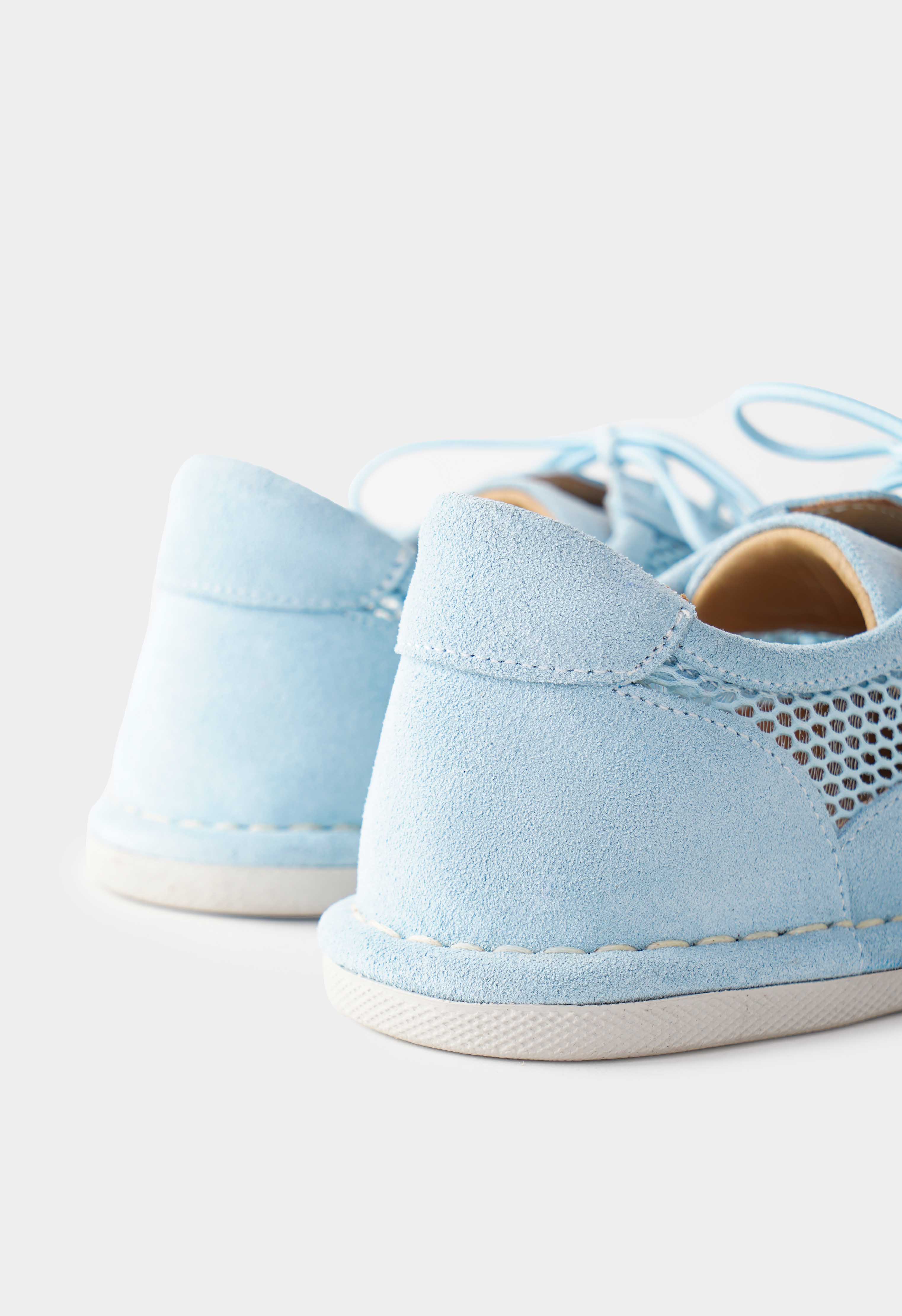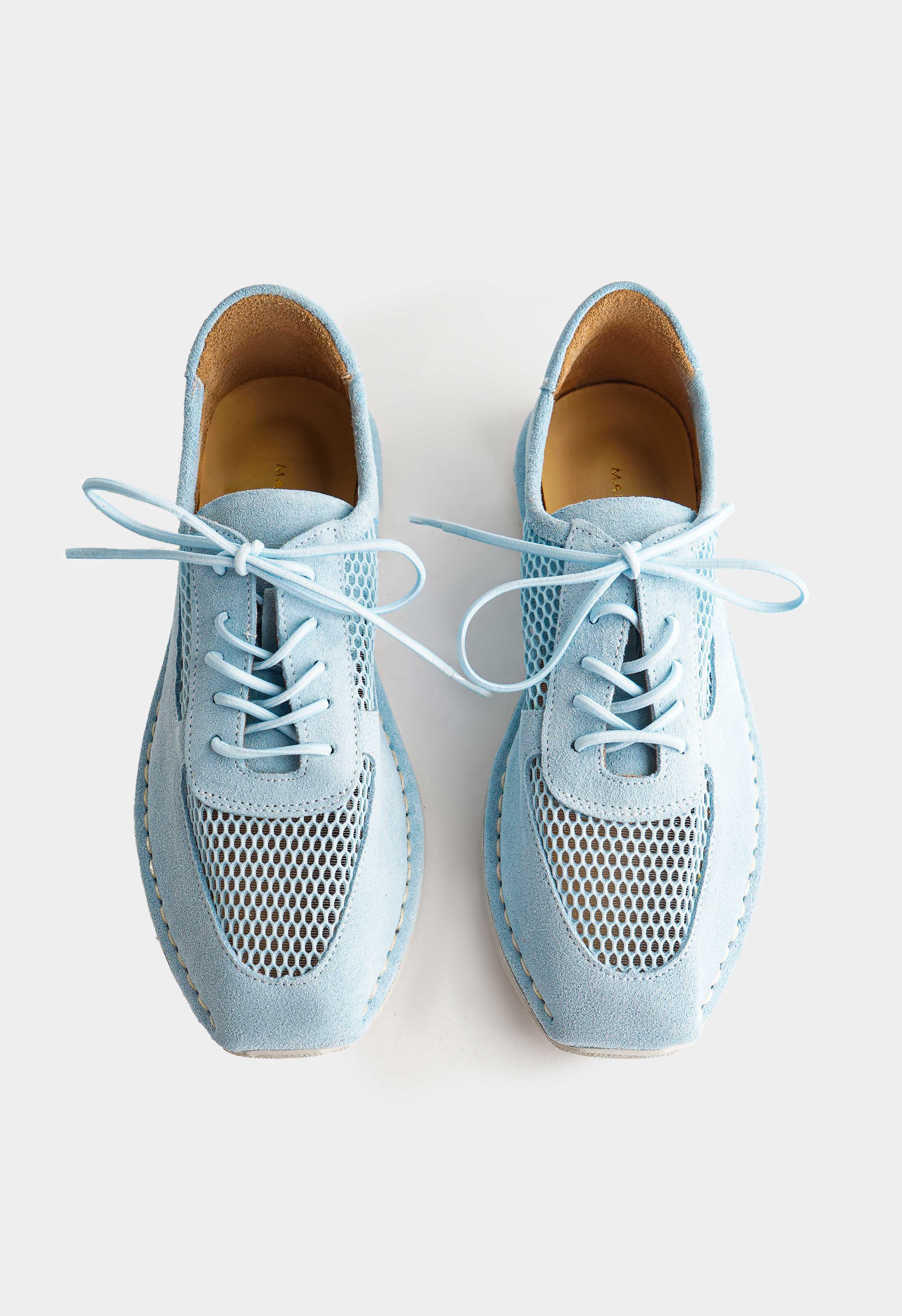 Голубые кроссовки из натуральной замши – легкость и свежесть в современном исполнении: мягкий оттенок освежает образ, а перфорированные вставки добавляют воздушности и комфорта. Квадратный мысок подчеркивает актуальный дизайн, шнуровка обеспечивает удобную посадку, в то время как платформа придает силуэту выразительность. Гибкая подошва дарит свободу движений и комфорт на протяжении всего дня – идеальный выбор для стильных и динамичных образов.
