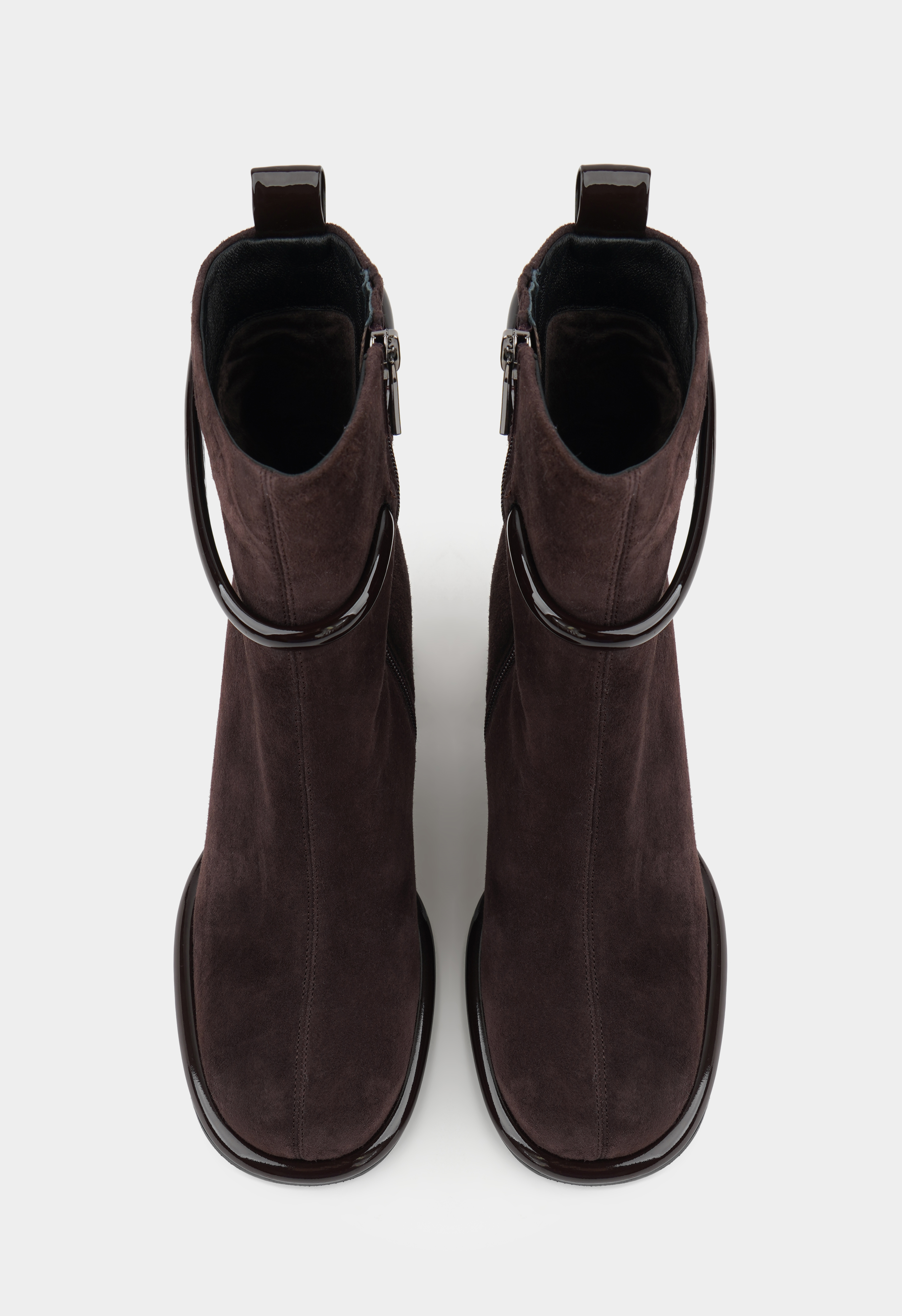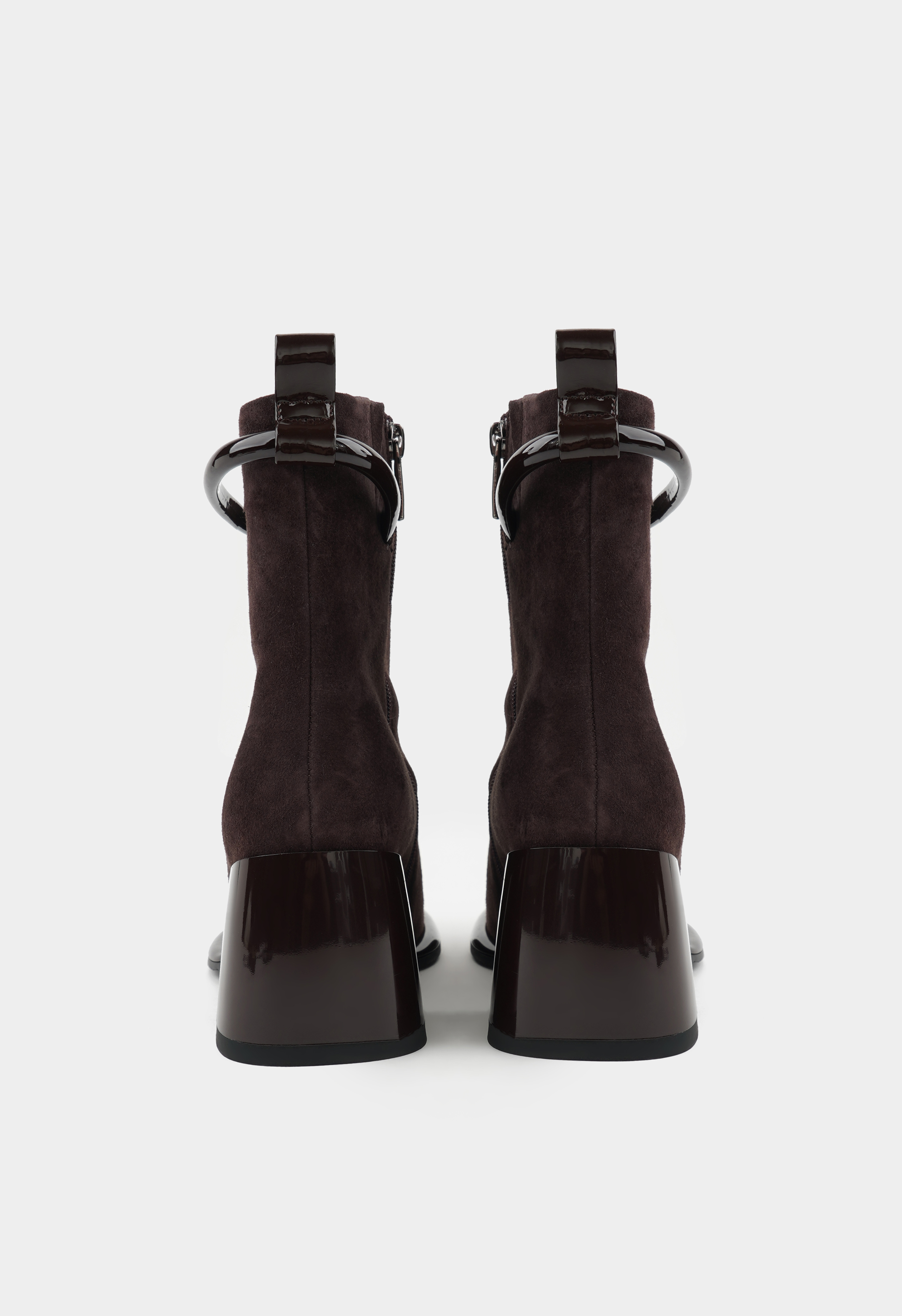 Эти ботильоны из натуральной замши в благородном коричневом цвете – идеальный выбор для стильных и активных женщин. Внутренняя байка дарит мягкость и комфорт, а гибкая подошва и широкий каблук обеспечивают устойчивость и легкость в движении. Округлый мысок и металлическая фурнитура с молнией добавляют современный акцент, создавая гармоничное сочетание практичности и элегантности. Эта модель легко впишется в повседневный гардероб, подчеркивая ваш вкус и оставаясь удобными на протяжении всего дня.