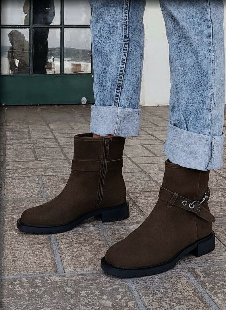 Демисезонные полусапоги из натуральной замши с мягкой байкой внутри и меховой стелькой в комплекте – идеальный баланс тепла, стиля и комфорта. Гибкая подошва и устойчивый широкий каблук обеспечат уверенную походку в любой ситуации, в то время как квадратный мысок добавит современного шарма и свободы для стопы. Молния делает обувание быстрым и удобным, а фурнитура металлик придает образу благородный акцент. Глубокий коричневый цвет легко сочетается с гардеробом, подчеркивая утонченность и универсальность пары. Эти полусапоги станут вашим надежным спутником от утра до вечера, в городе и за его пределами.