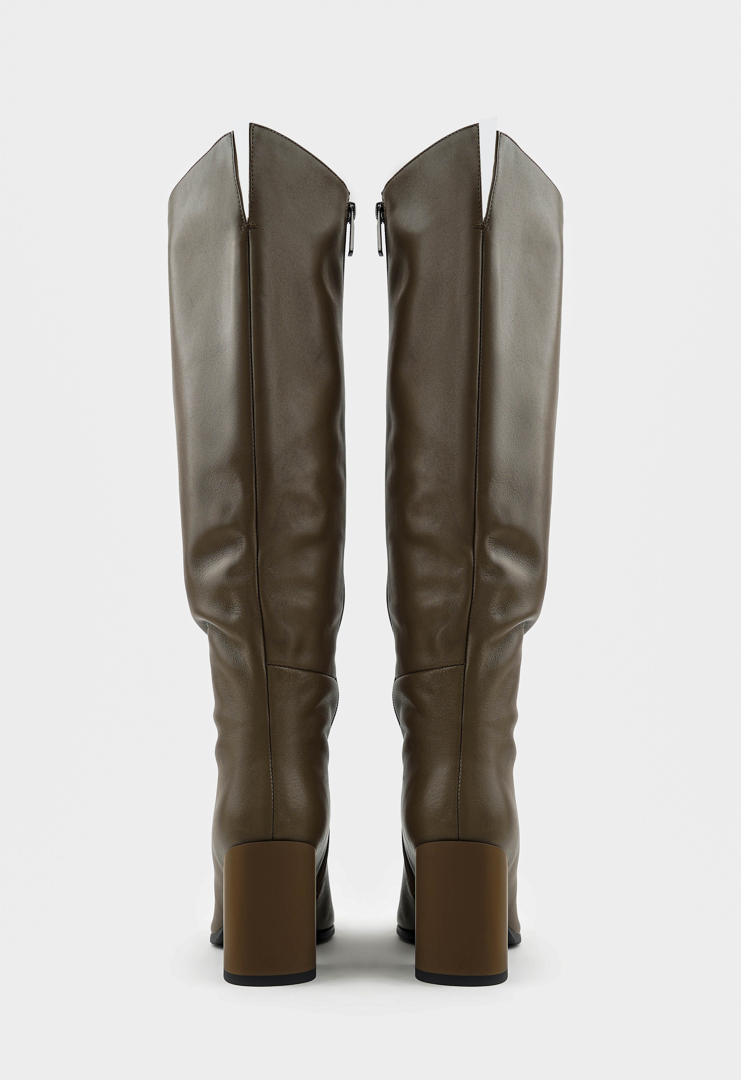 Сапоги из натуральной кожи в стильном цвете хаки – это удачное сочетание элегантности и практичности. Мягкая байка внутри дарит тепло и уют, а гибкая подошва обеспечивает комфорт в движении на протяжении всего дня. Заостренный мысок и скошенный каблук придают модели современный характер, подчеркивая изящность силуэта. Эффектная металлическая фурнитура и удобная молния делают сапоги не только функциональными, но и стильными. Эта пара легко дополнит как повседневные, так и более нарядные образы, оставаясь актуальной в любой ситуации.