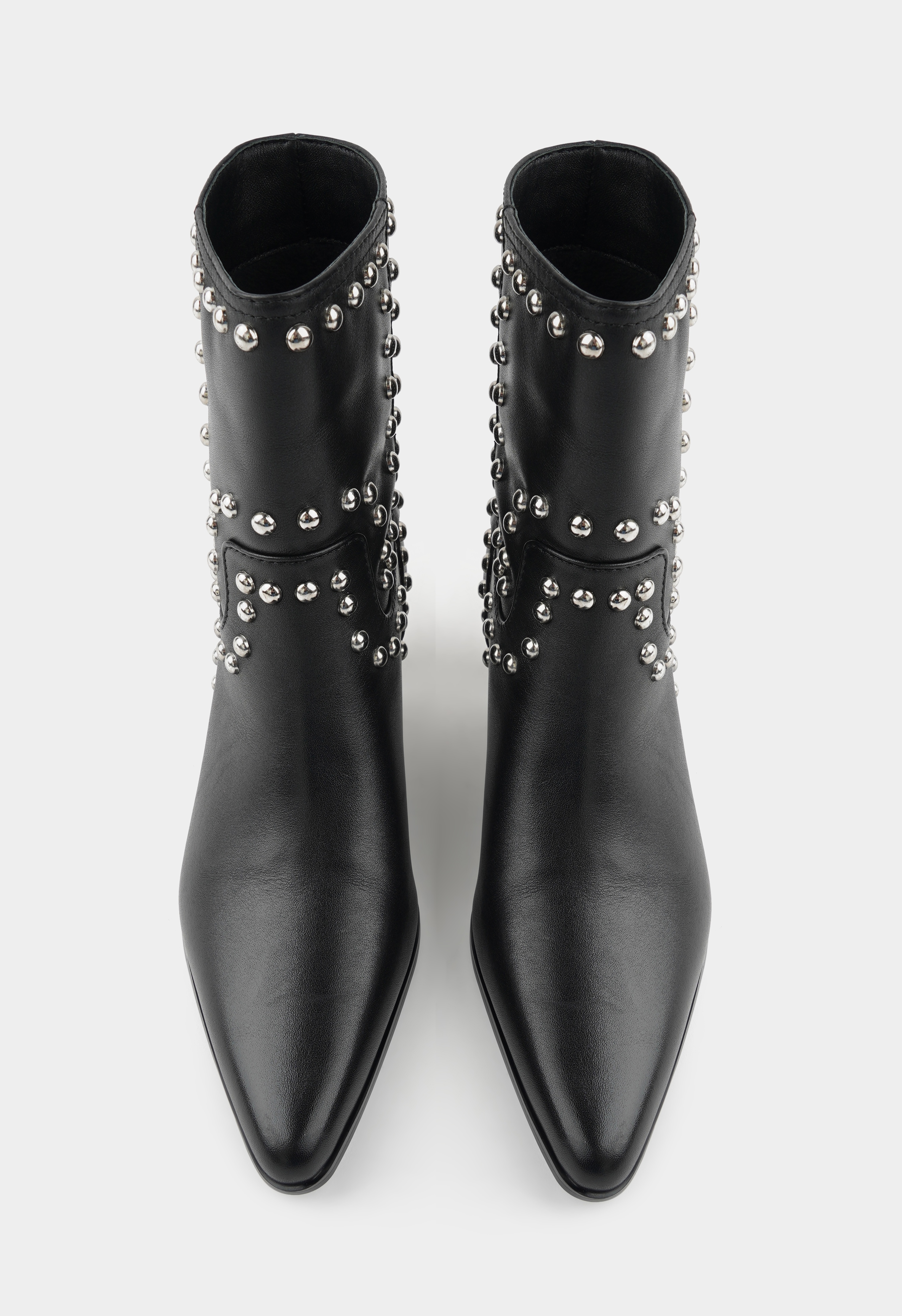 Ботильоны из натуральной кожи черного цвета с байкой внутри и серебряными стразами – это эффектная модель, которая сочетает комфорт и яркий акцент в образе. Жесткая подошва и оригинальный каблук «запятая» обеспечивают устойчивость, а заостренный мысок придает утонченность и визуально вытягивает силуэт. Стразы добавляют блеска и превращают ботильоны в изюминку гардероба, которая уместна как в повседневных луках, так и в вечерних выходах.