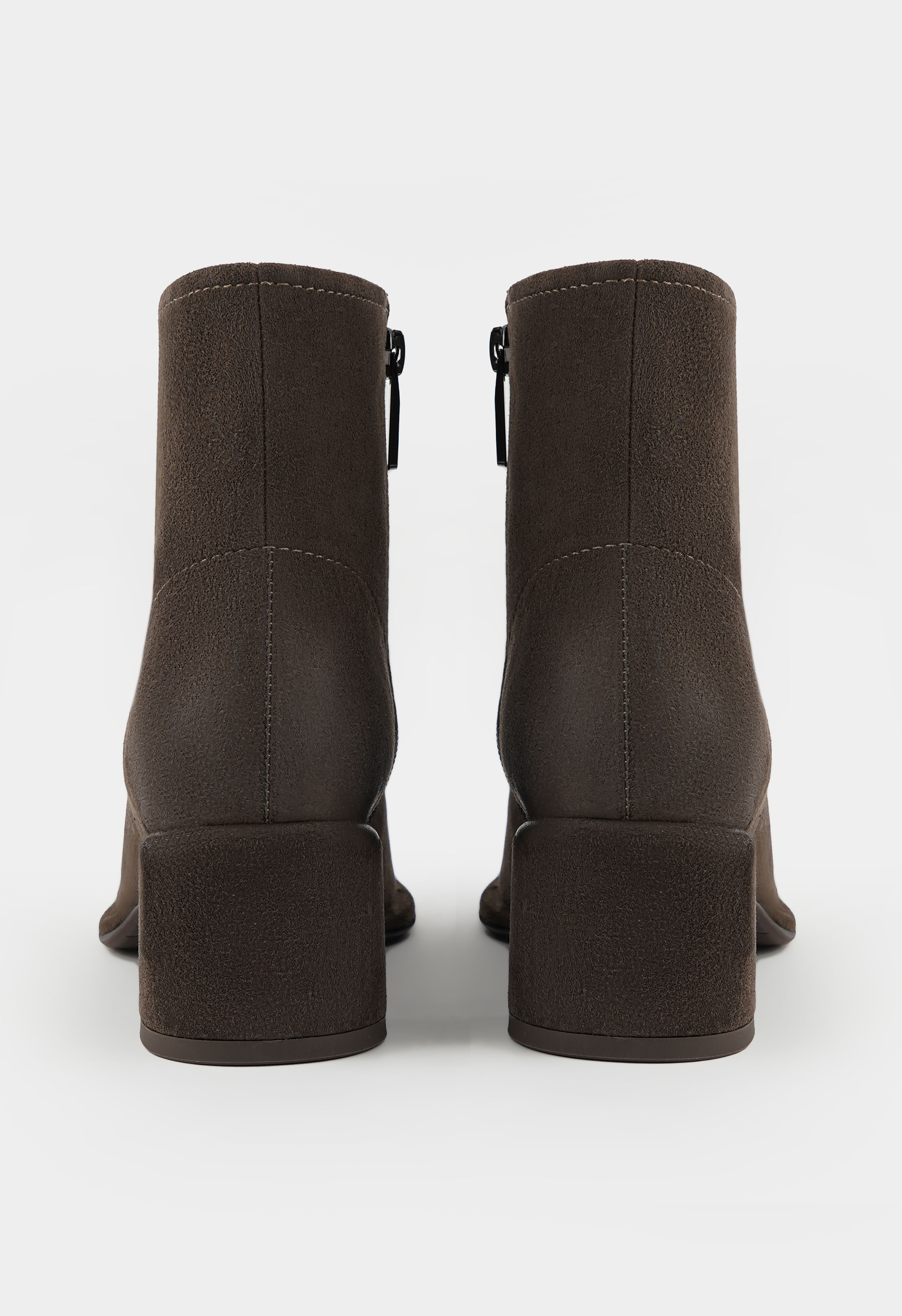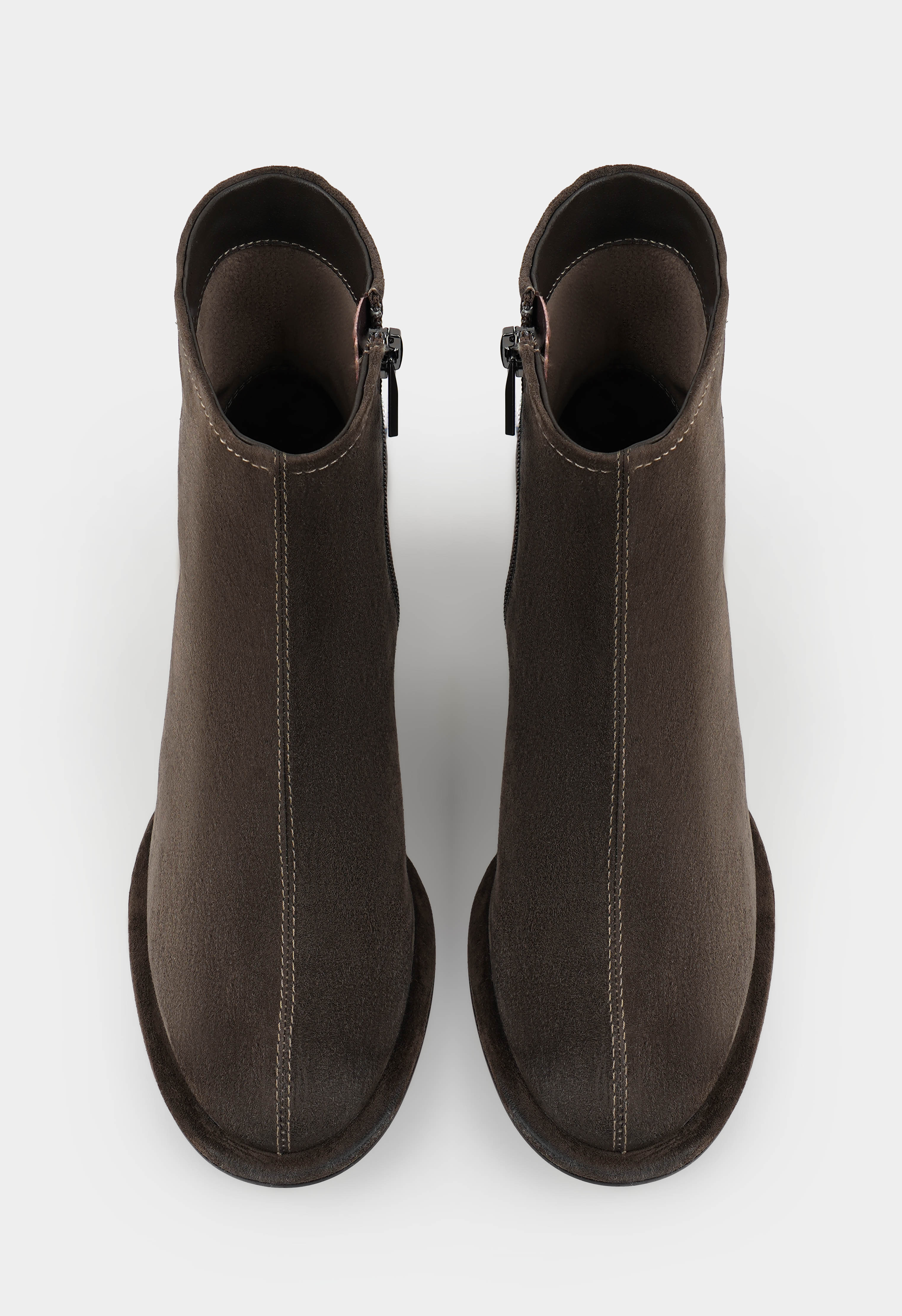 Эти стильные коричневые ботильоны из мягкой натуральной замши созданы как для повседневной носки, так и для особых случаев. Модель с удобным округлым мысом, внутренней отделкой из байки и устойчивым геометричным каблуком отлично смотрится в городском образе. Гибкая подошва обеспечивает комфорт при ходьбе, а практичная молния с металлической фурнитурой позволяет легко обуваться. Универсальная пара легко сочетается с джинсами, платьями и классическими брюками, завершая образ элегантной ноткой.