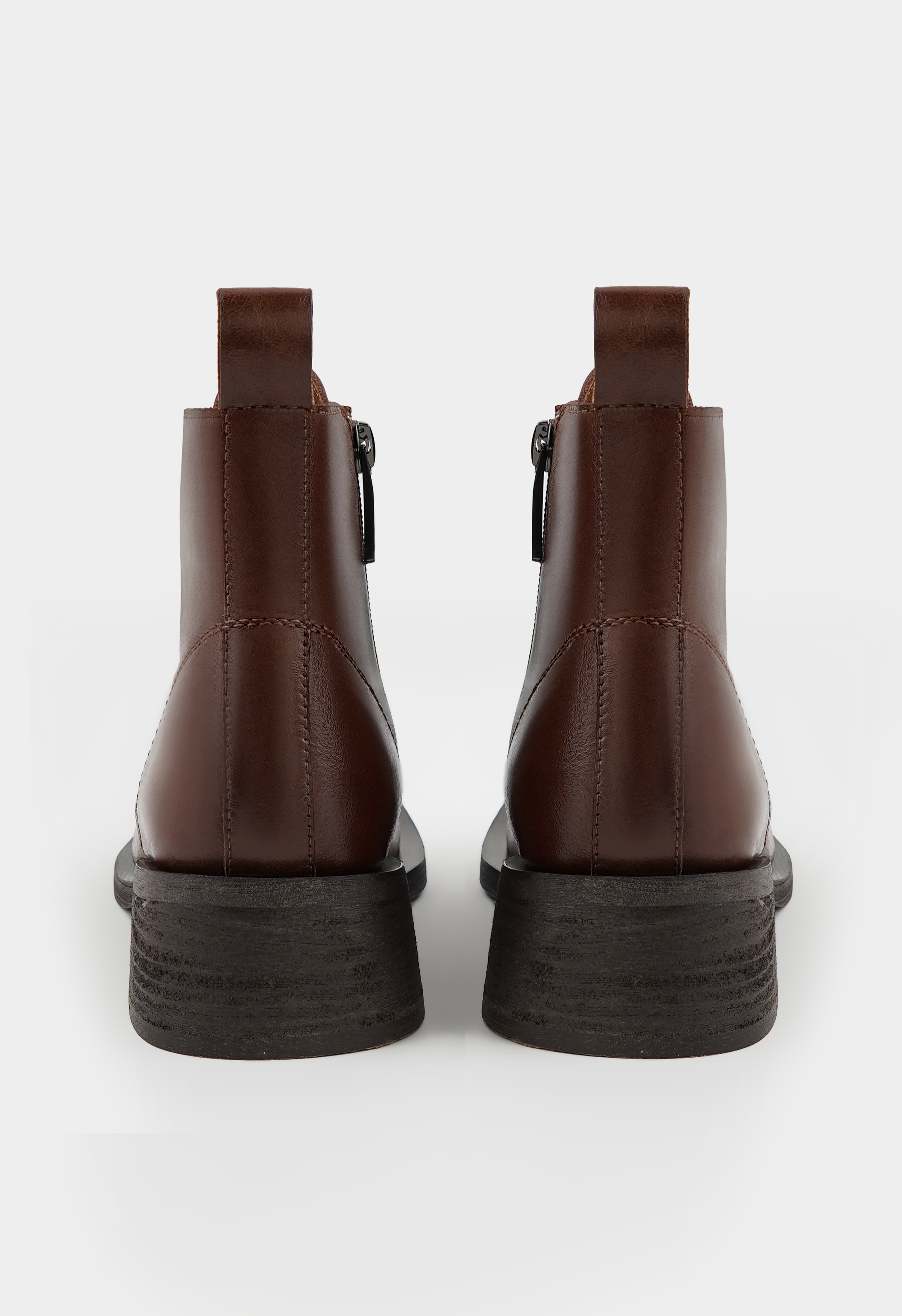 Коричневые ботинки из натуральной кожи сочетают в себе брутальный характер и городской стиль. Модель с выразительным квадратным мыском и массивным широким каблуком демонстрирует уверенный, современный силуэт. Жесткая, надежная подошва гарантирует устойчивость на любой поверхности, а практичный дуэт из классической шнуровки и удобной боковой молнии со стильной фурнитурой металлик позволяет идеально подогнать посадку по ноге. Благодаря невероятно уютной байковой подкладке, в этих ботинках будет комфортно даже в прохладную погоду.