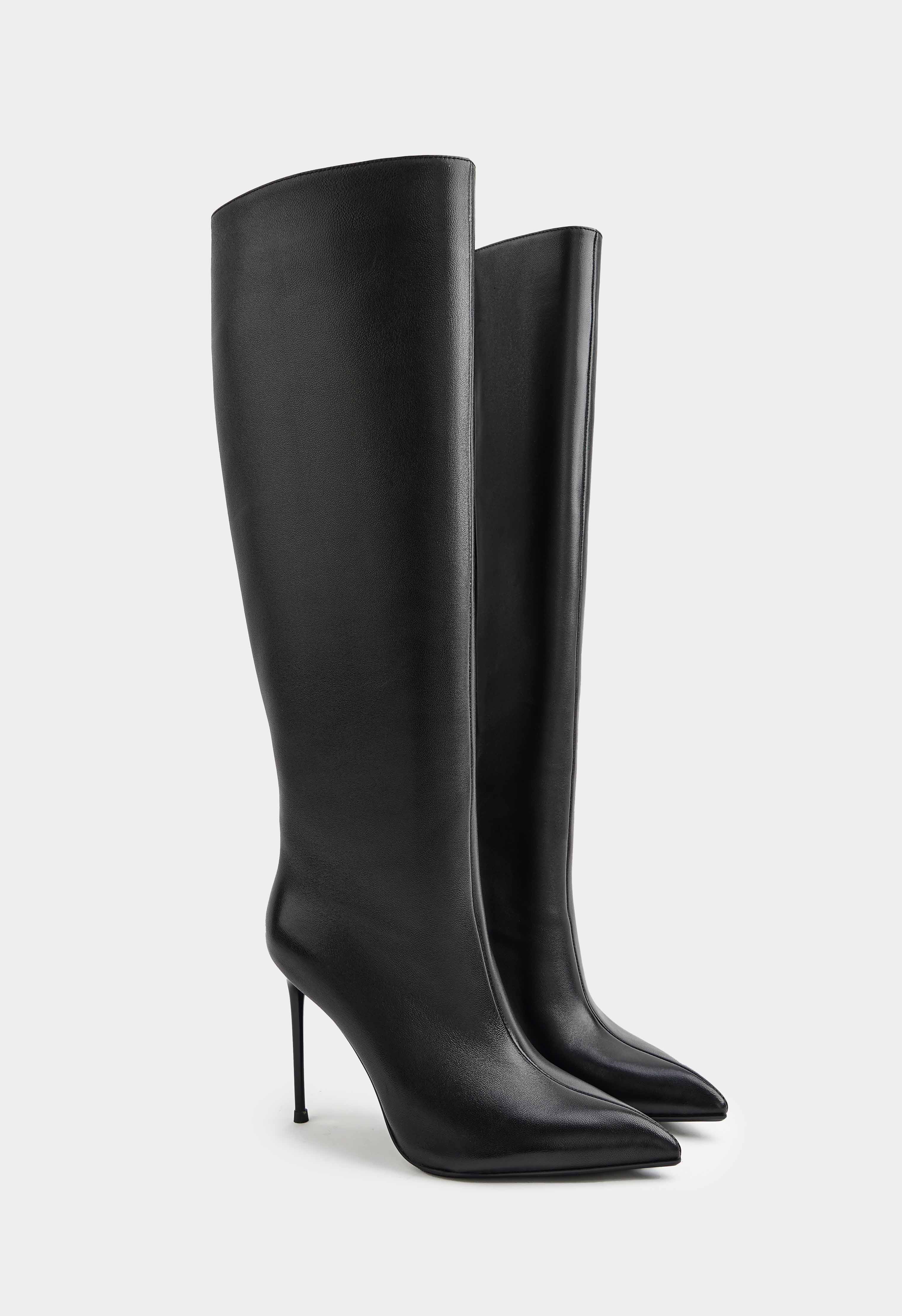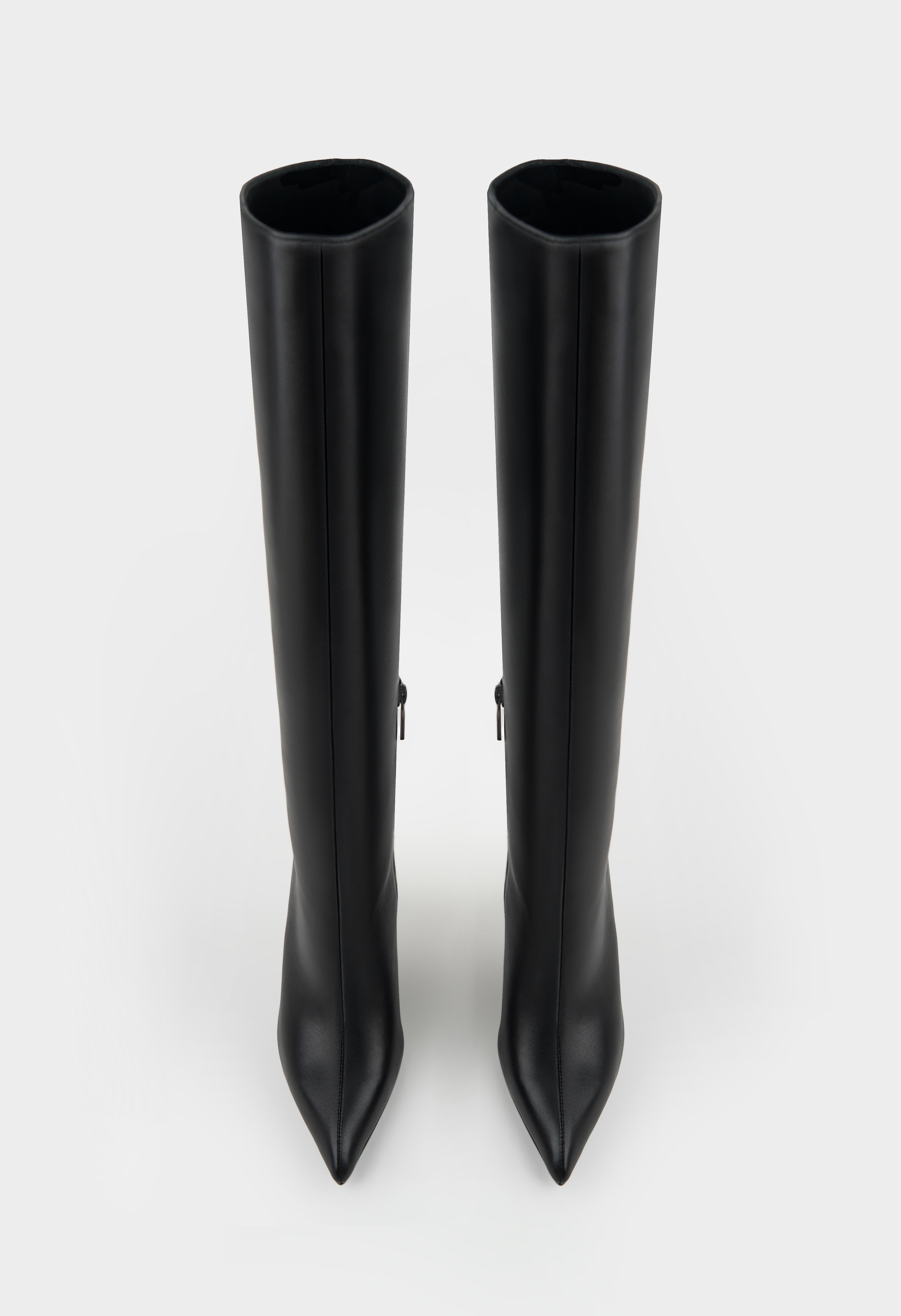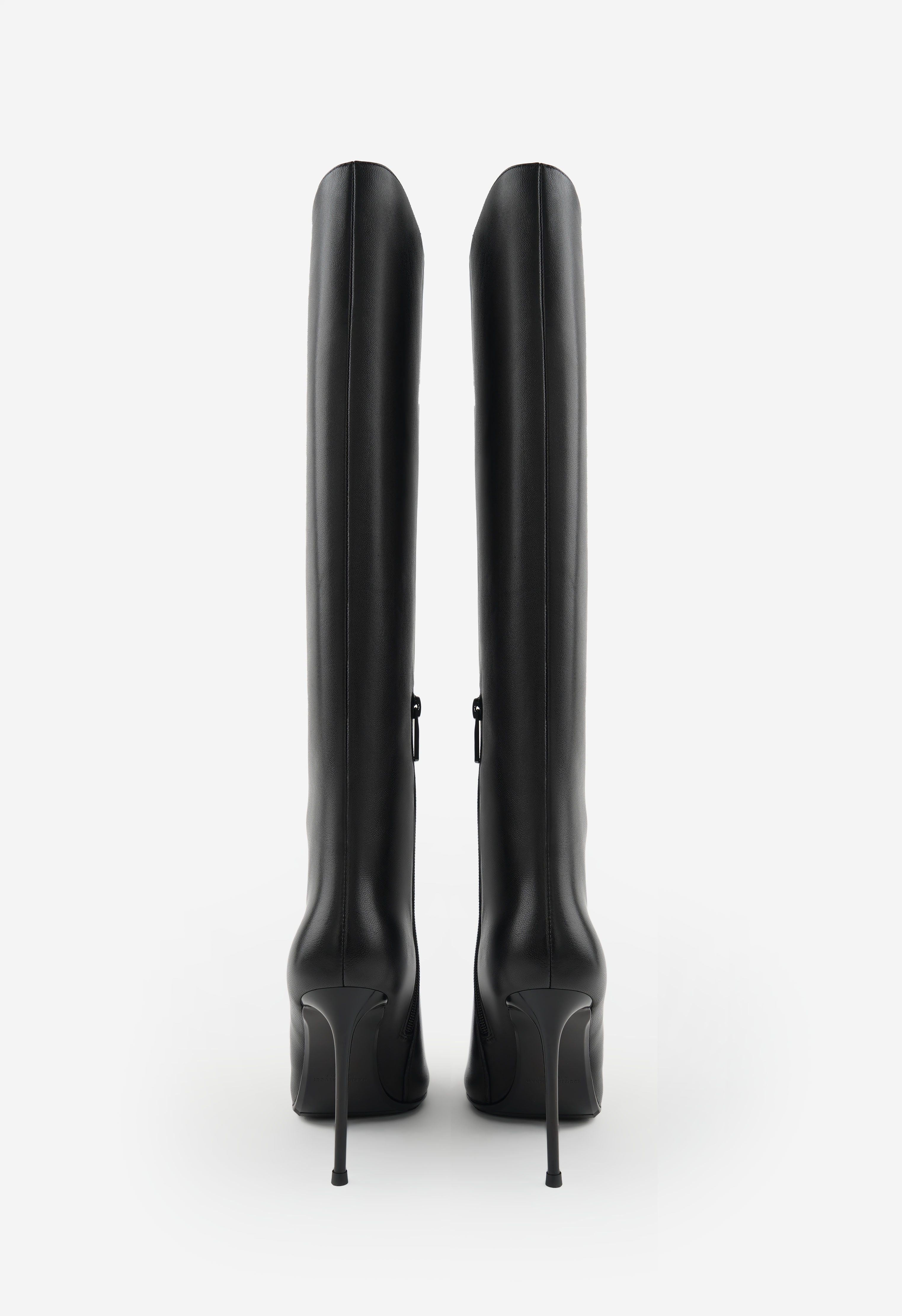 Элегантные сапоги из натуральной кожи черного цвета с подкладкой из байки станут изюминкой вашего гардероба. Заостренный мысок и тонкая шпилька подчеркивают женственность и придают образу утонченность, а металлическая фурнитура и аккуратная молния добавляют современный акцент. Благодаря гибкой подошве обувь остается удобной даже при активном ритме дня, сочетая комфорт с безупречным стилем. Такая пара идеально подойдет как для рабочих встреч, так и для вечерних выходов, всегда оставаясь уместной и эффектной.