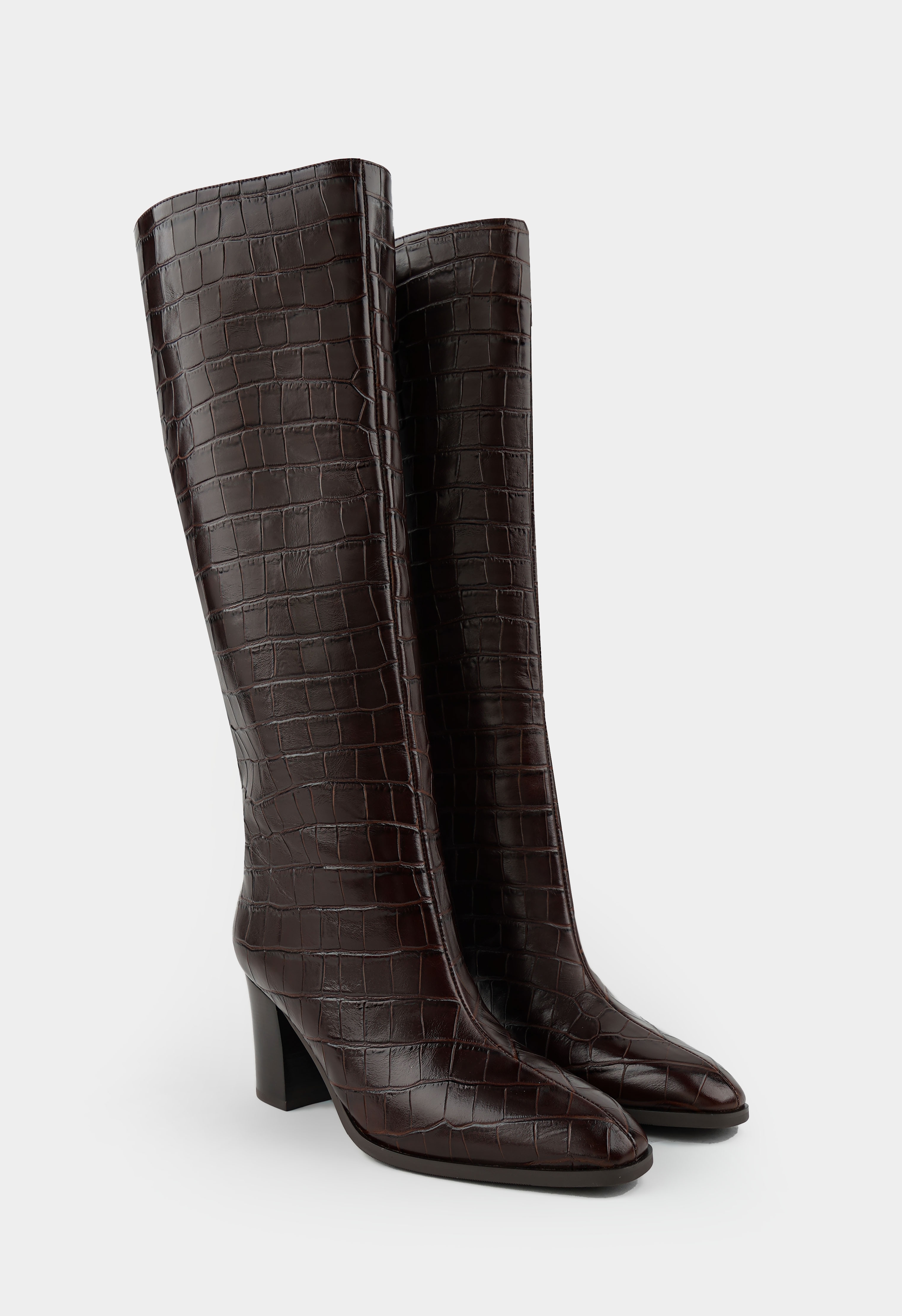 Изысканные сапоги коричневого цвета с эффектным каблуком-столбиком и элегантным заостренным мыском, выполненные из натуральной кожи. Удобная гибкая подошва и мягкая байковая подкладка обеспечивают комфорт при длительной носке, а стильная фурнитура металлик с боковой молнией добавляет образу современный вид. Универсальная модель станет идеальным дополнением как для делового гардероба, так и для вечернего выхода, прекрасно сочетаясь с любыми женственными образами.