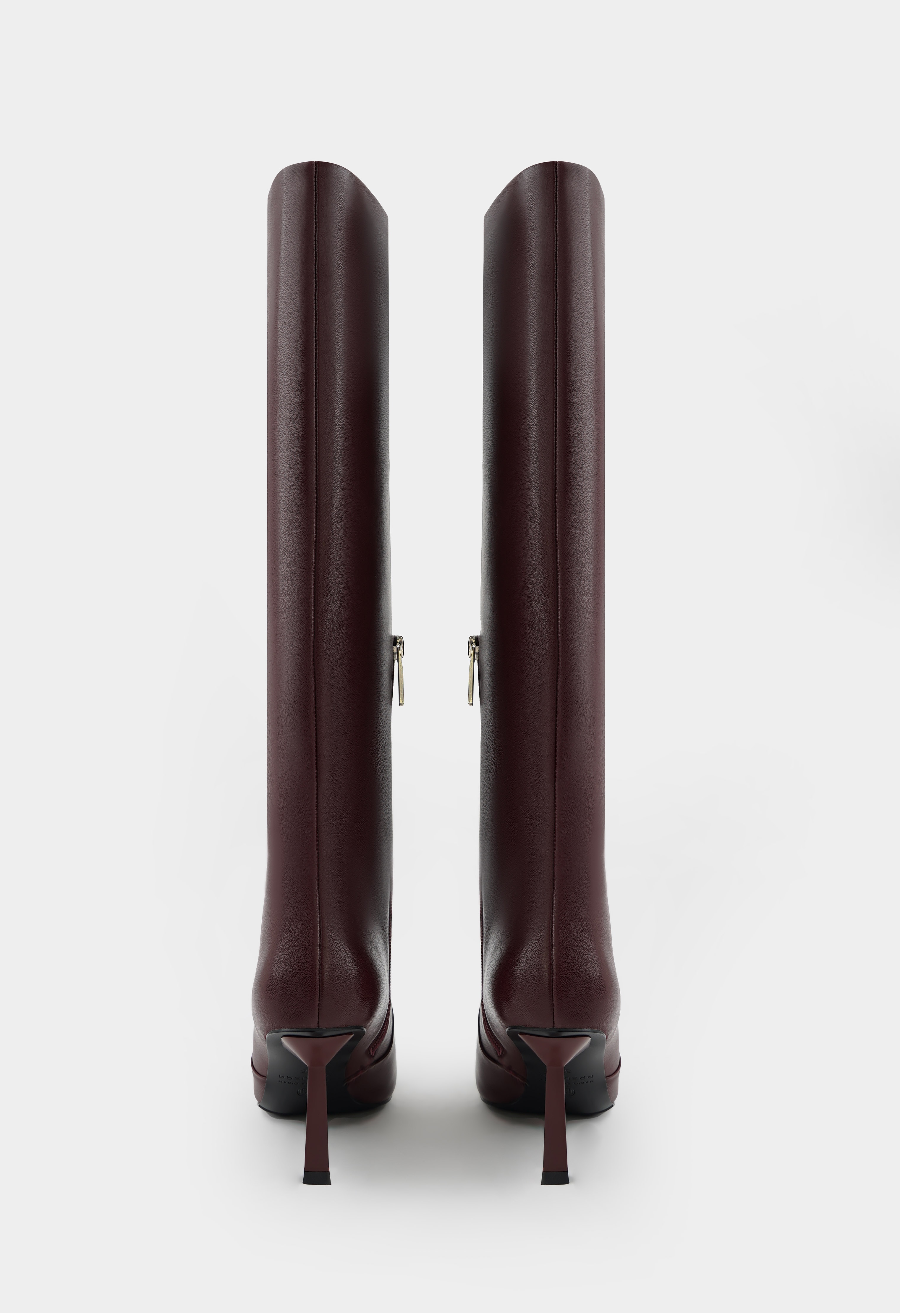 Сапоги бордового цвета из натуральной кожи – воплощение элегантности и уверенного стиля. Гладкая кожа с глубоким винным оттенком придает модели роскошный характер, а мягкая байковая подкладка обеспечивает комфорт и уют в прохладную погоду. Гибкая подошва делает шаг легким, заостренный мысок подчеркивает утонченность, в то время как изящный каблук-рюмка добавляет женственности и визуальной легкости. Серебряная фурнитура и аккуратная молния завершают образ, делая эти сапоги идеальным выбором для тех, кто хочет выглядеть безупречно в любое время дня.