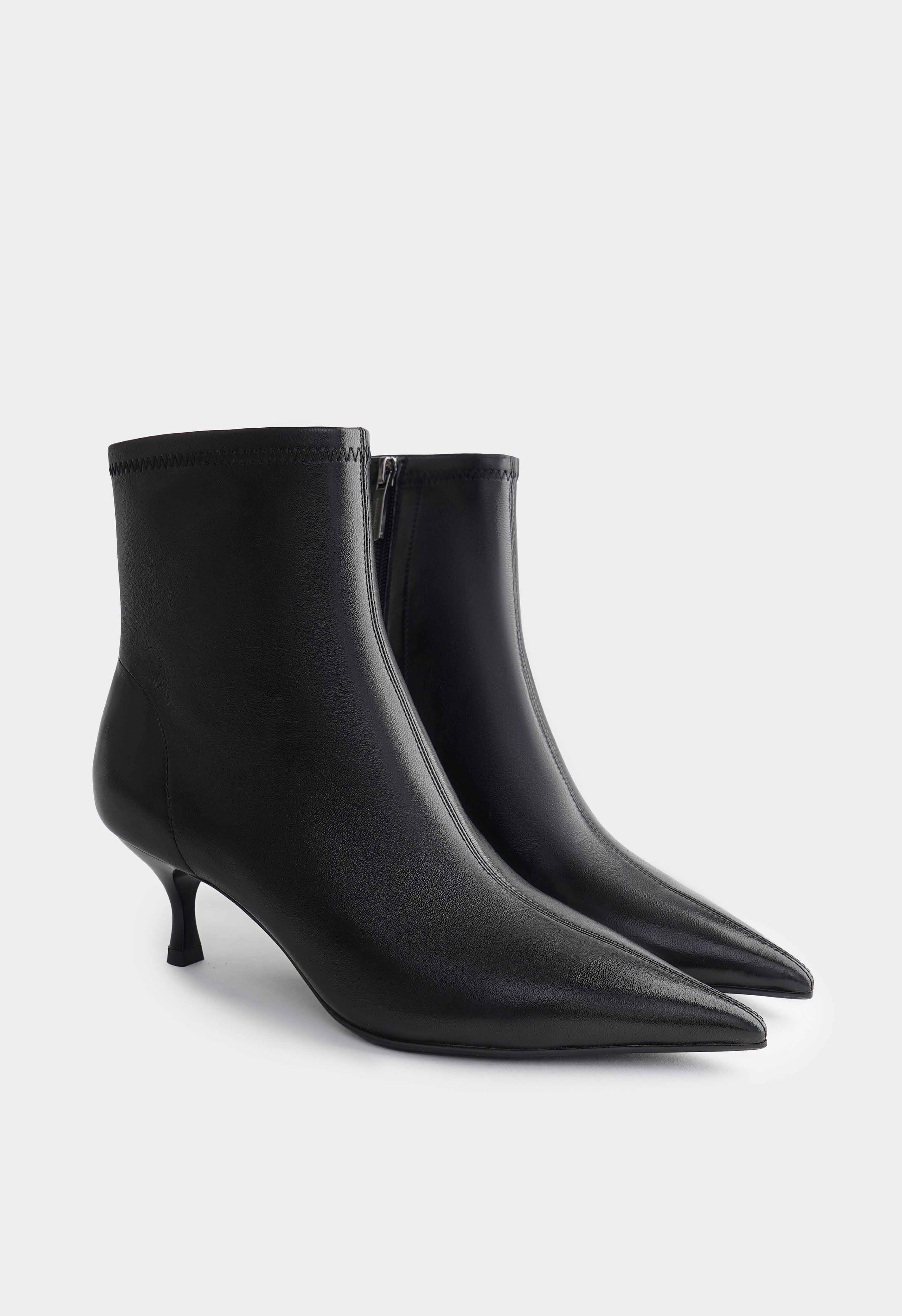 Черные ботильоны из натуральной кожи – удачная пара для демисезона, когда хочется выглядеть элегантно и чувствовать комфорт. Заостренный мысок и изящный каблук-рюмка делают силуэт более женственным и утонченным. Фурнитура в оттенке металлик добавляет аккуратный современный акцент, а молния обеспечивает удобное надевание и плотную посадку. Гибкая подошва поддерживает мягкий шаг и легкость в движении в течение всего дня.