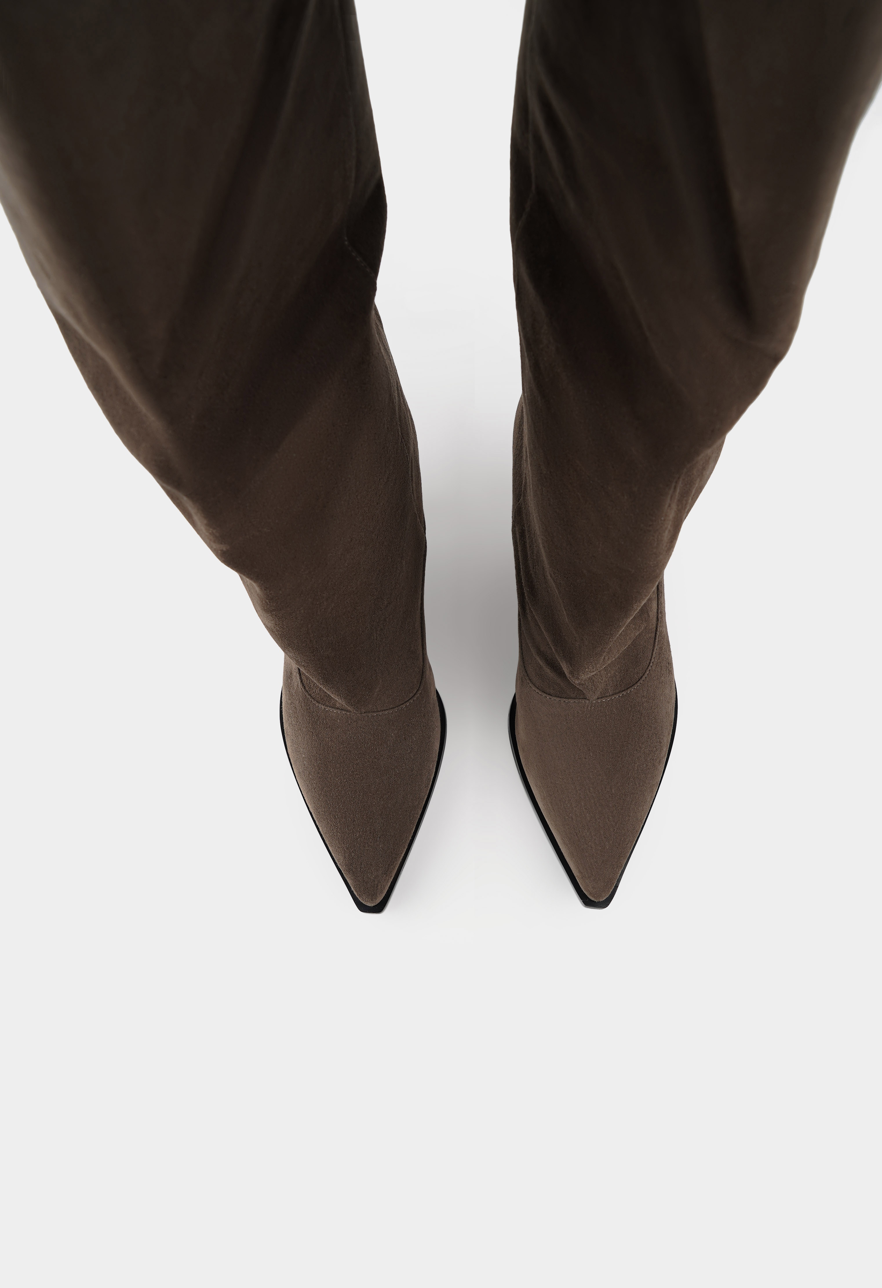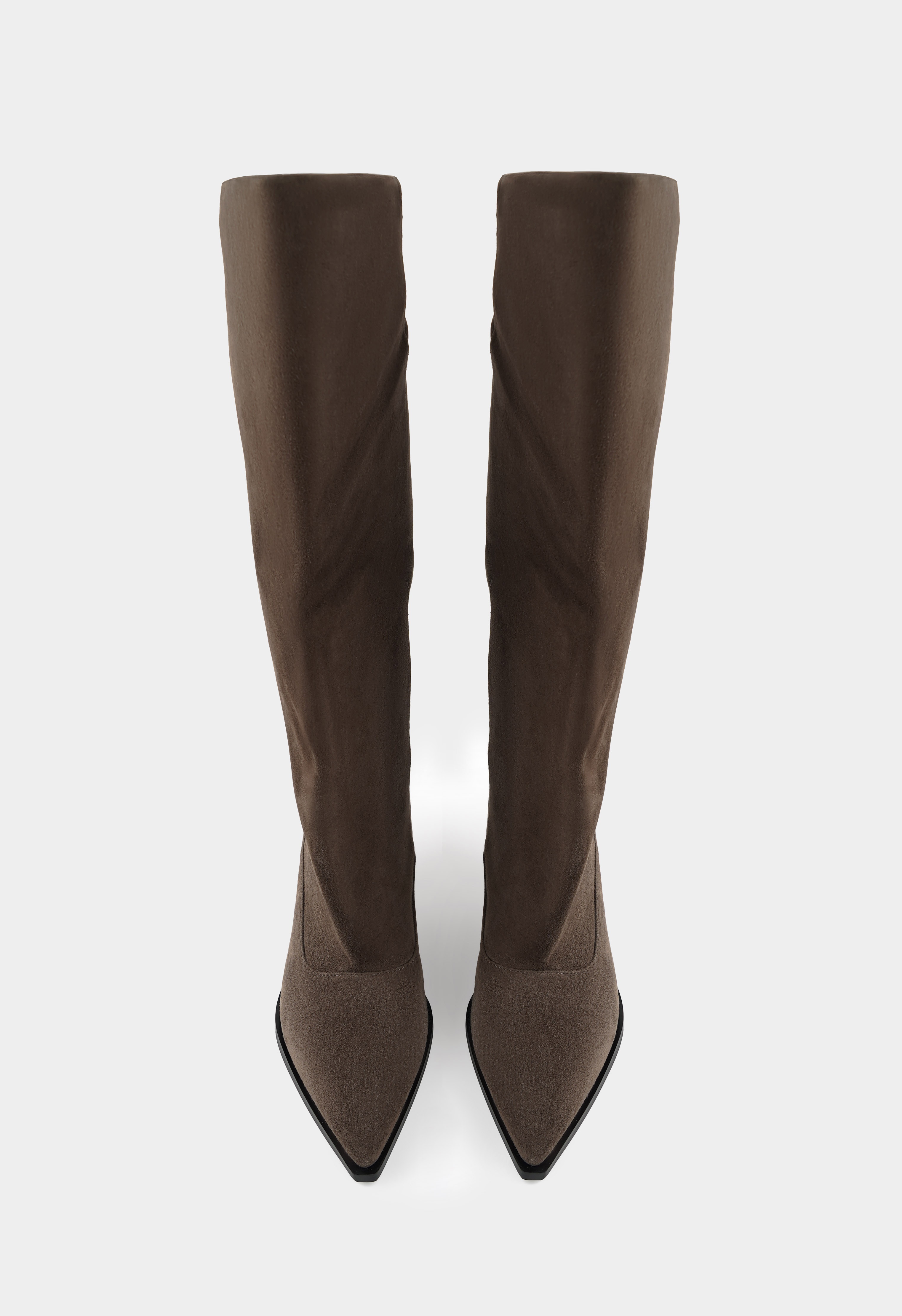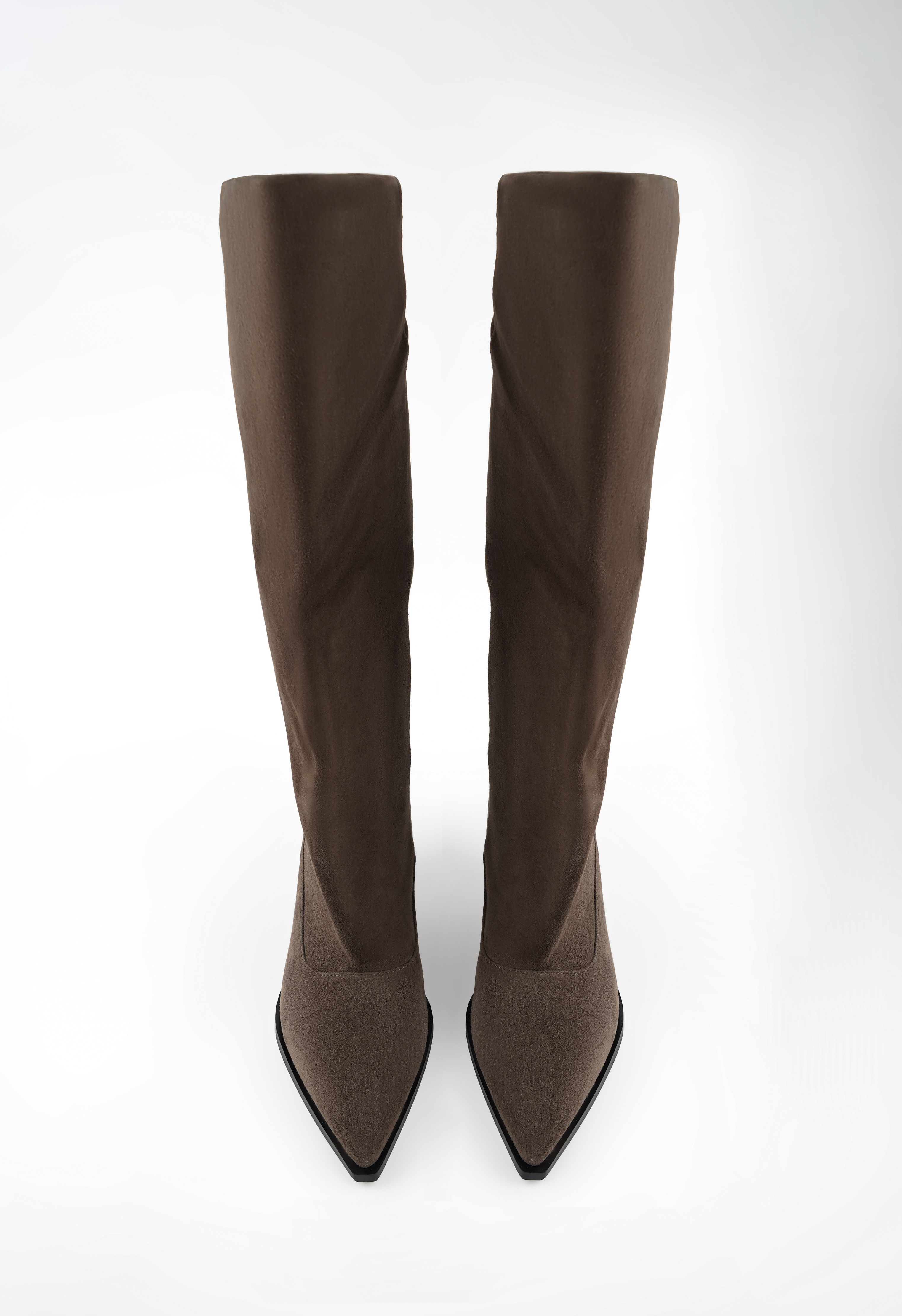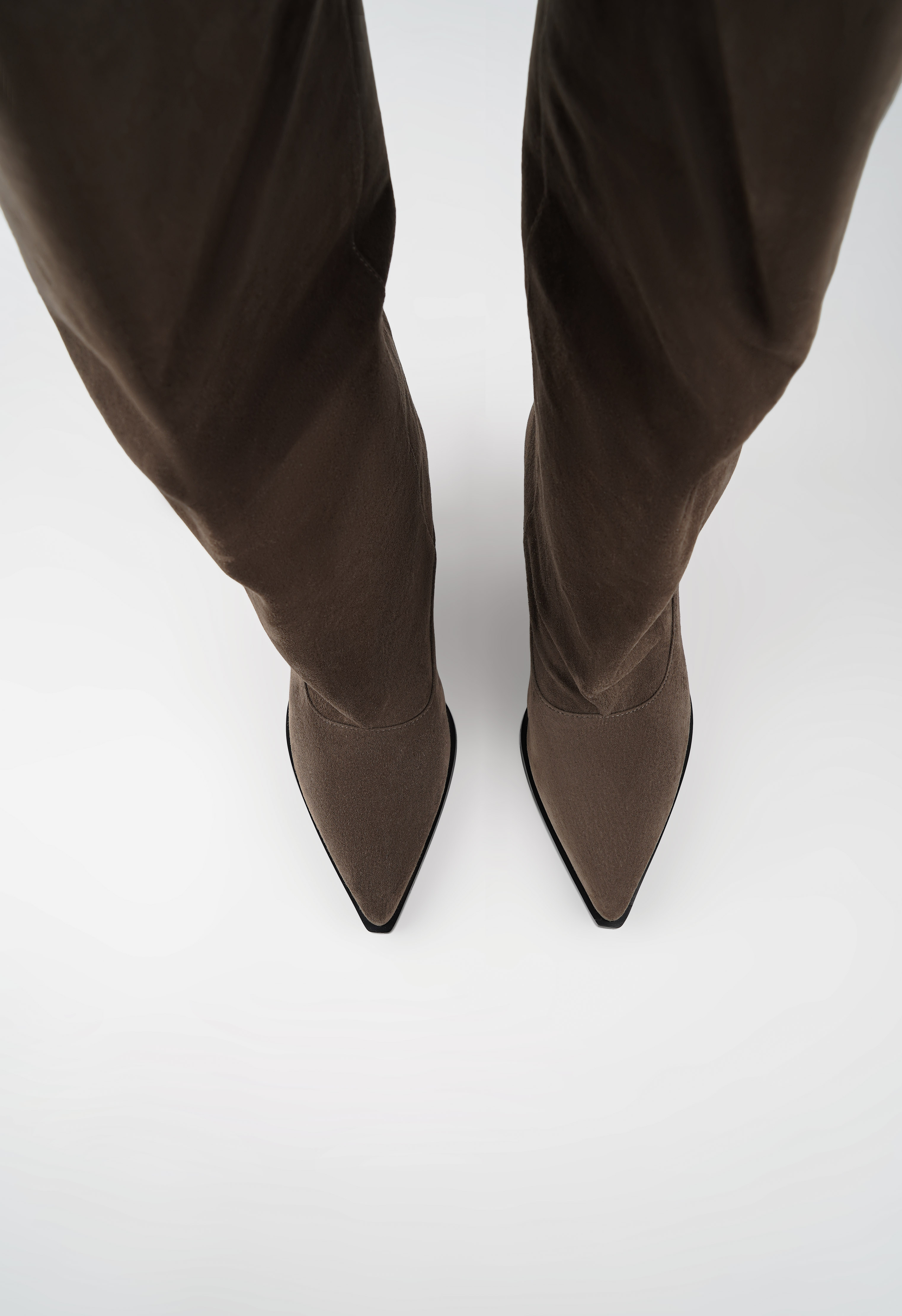 Элегантные сапоги из велюра серого цвета с байкой внутри – сочетание элегантности и комфорта для стильных женщин. Гибкая подошва и каблук-рюмка обеспечивают удобство и уверенность в каждом шаге, а заостренный мысок придает образу изысканность и современный характер. Мягкий внутренний слой сохраняет тепло, делая обувь комфортной в холодные дни. Эти сапоги легко вписываются в повседневные и более нарядные образы, подчеркивая ваш стиль и чувство уверенности в любой ситуации.