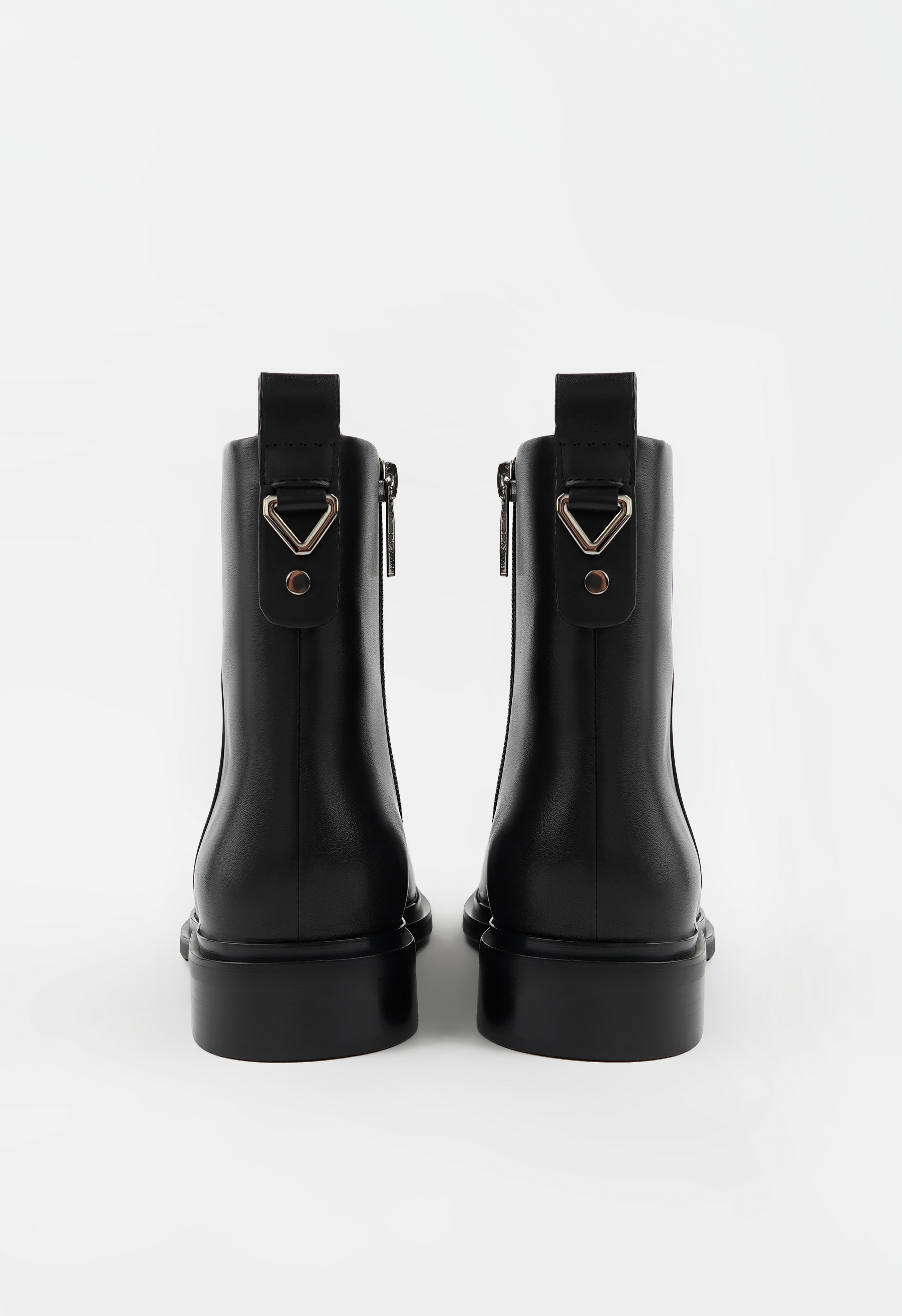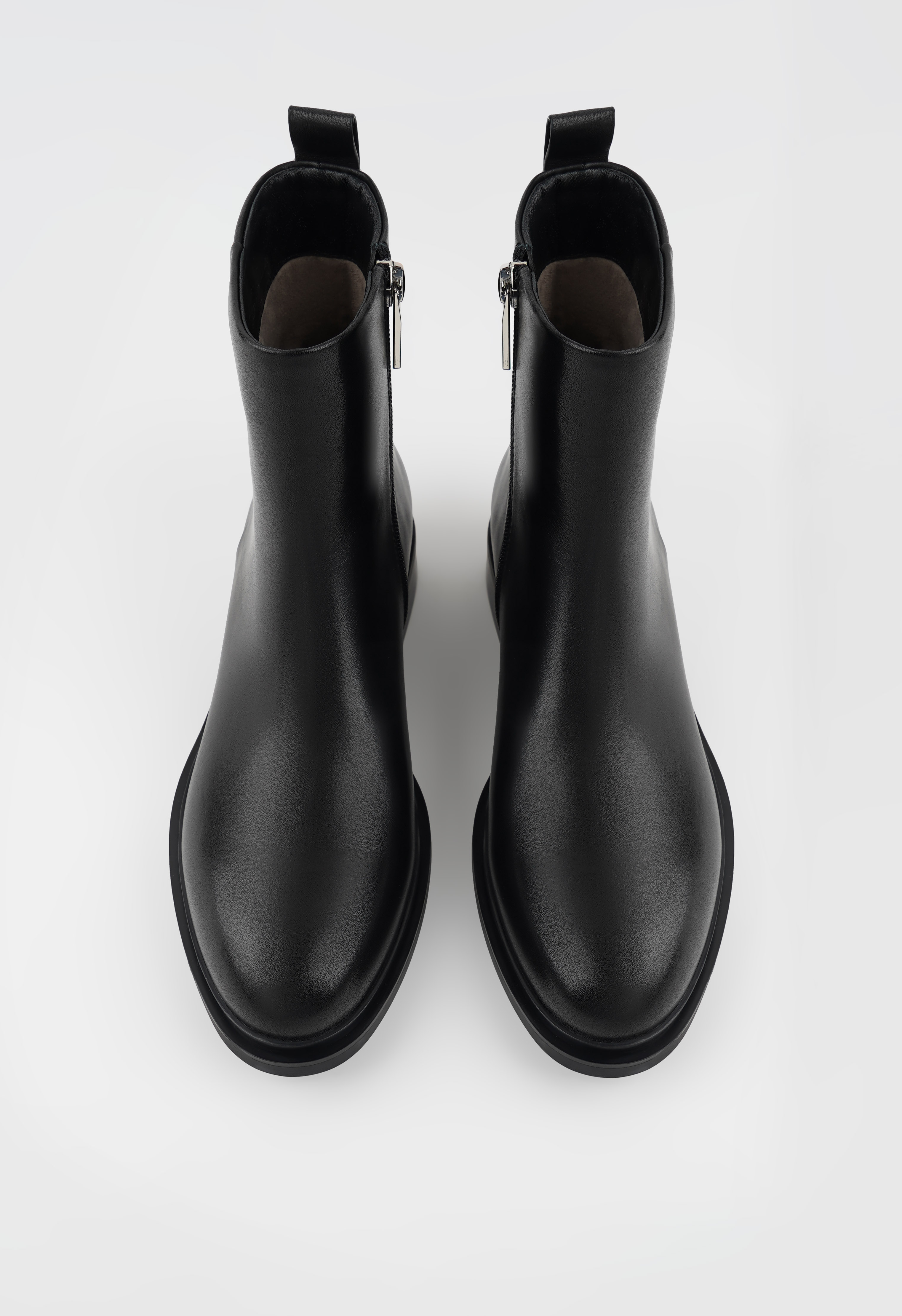 Полусапоги из натуральной кожи в классическом черном цвете – стильный выбор на каждый день, который сочетает элегантность и практичность. Внутри мягкая байка, дарящая комфорт и тепло, а жесткая подошва и широкий каблук обеспечивают устойчивость даже при длительной ходьбе. Округлый мысок делает модель удобной для повседневной носки, в то время как молния облегчает процесс обувания. Аккуратная серебряная фурнитура придает образу современный акцент, подчеркивая универсальность пары, которая идеально впишется как в деловой, так и в повседневный гардероб.