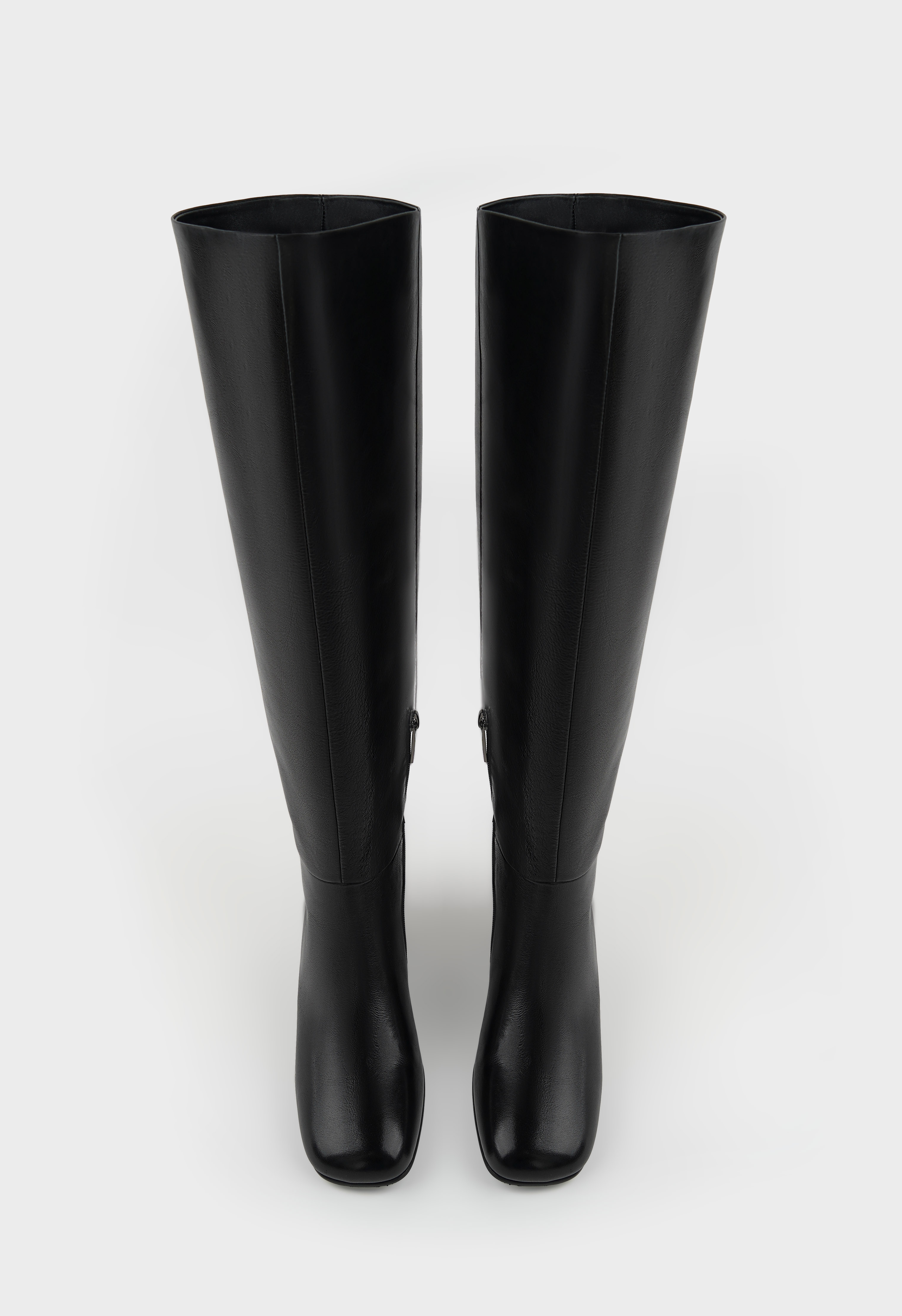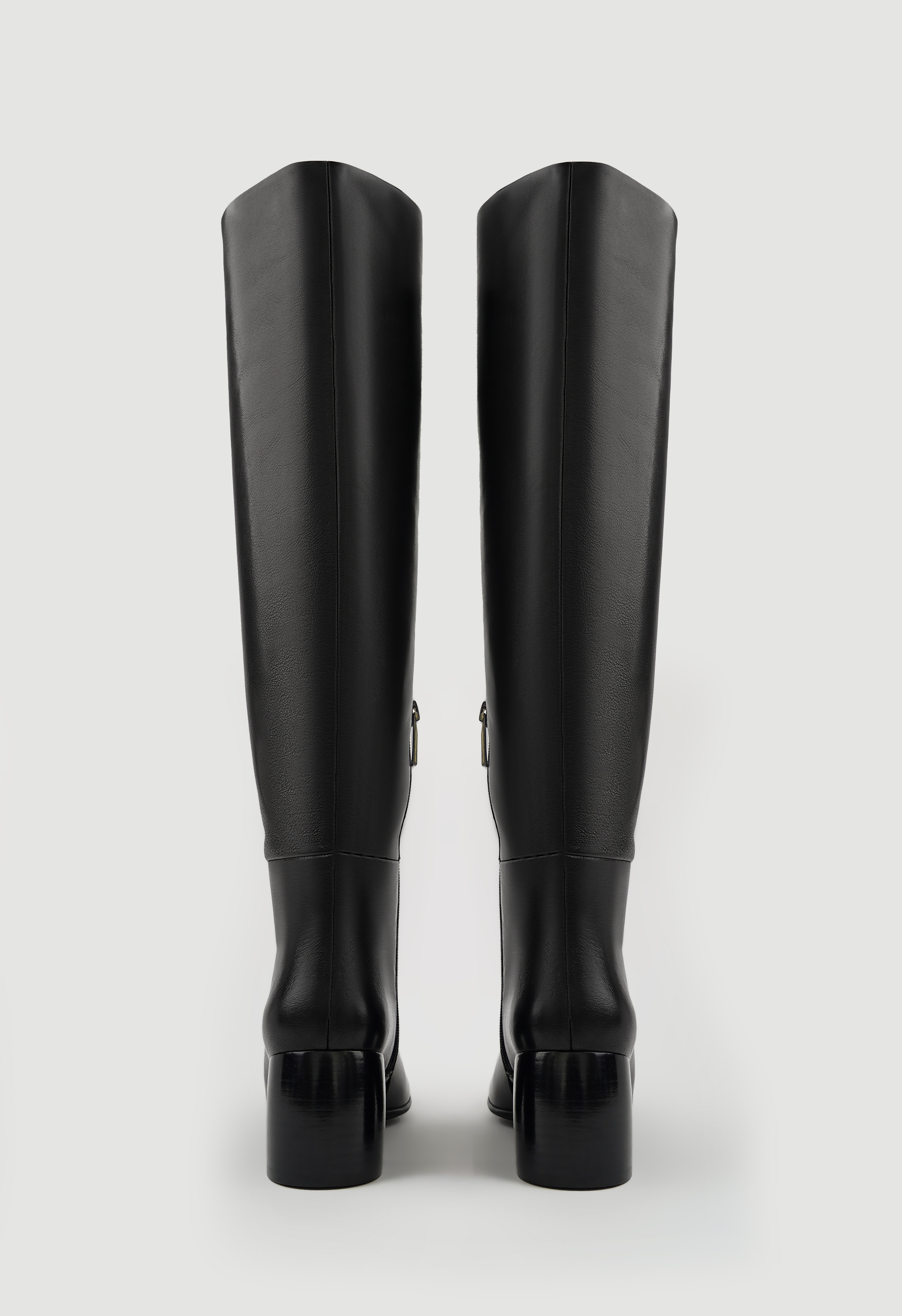 Актуальные сапоги из натуральной кожи черного цвета с подкладкой из байки – идеальный выбор для стильной и уверенной в себе женщины. Квадратный мысок и трапециевидный каблук создают современный и элегантный силуэт, а гибкая подошва гарантирует комфорт даже при длительной носке. Молния и металлическая фурнитура добавляют практичности и утонченного акцента, делая обувь одновременно функциональной и эффектной. Эта модель легко впишется в повседневные образы и станет надежным спутником в любых ситуациях.