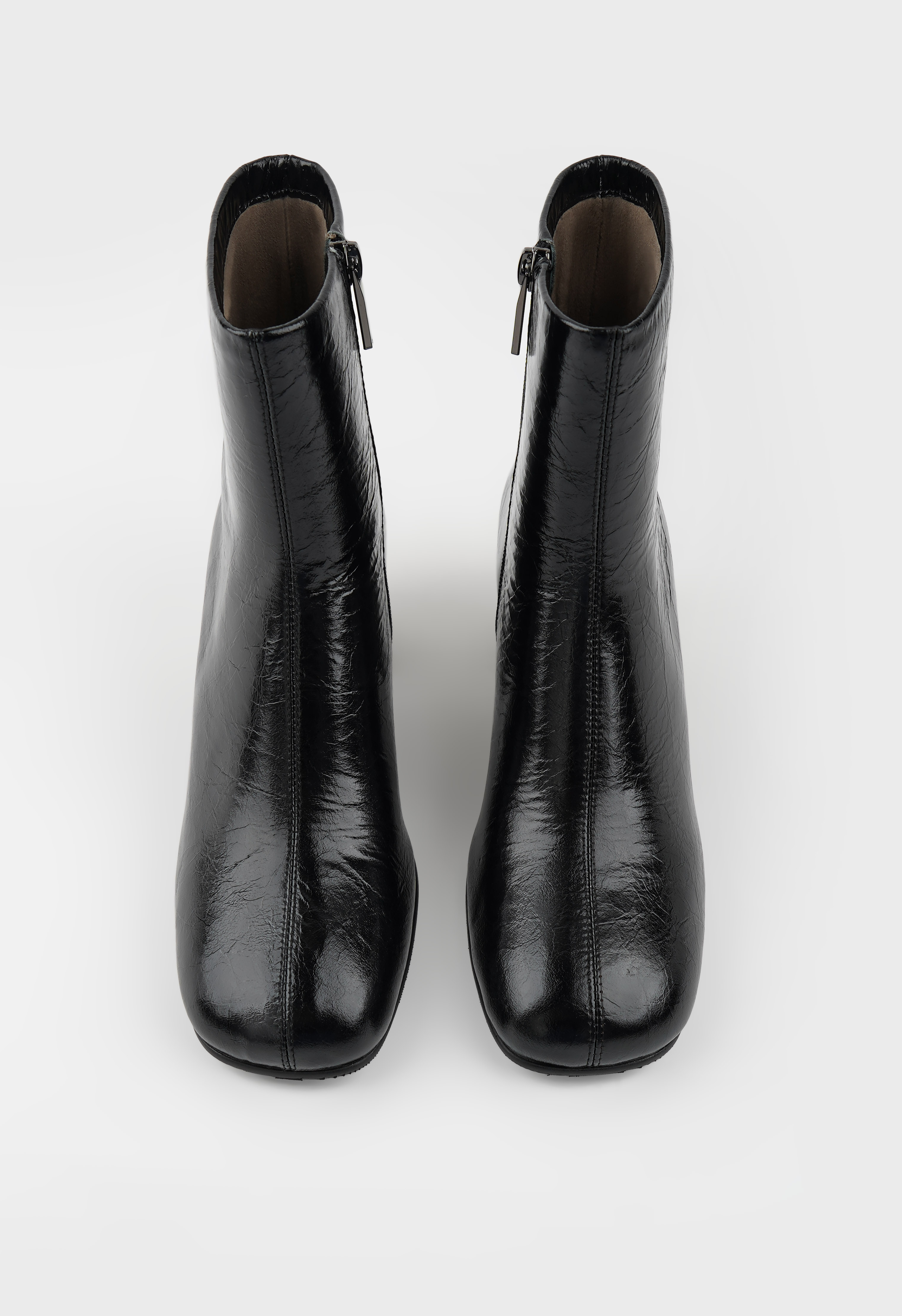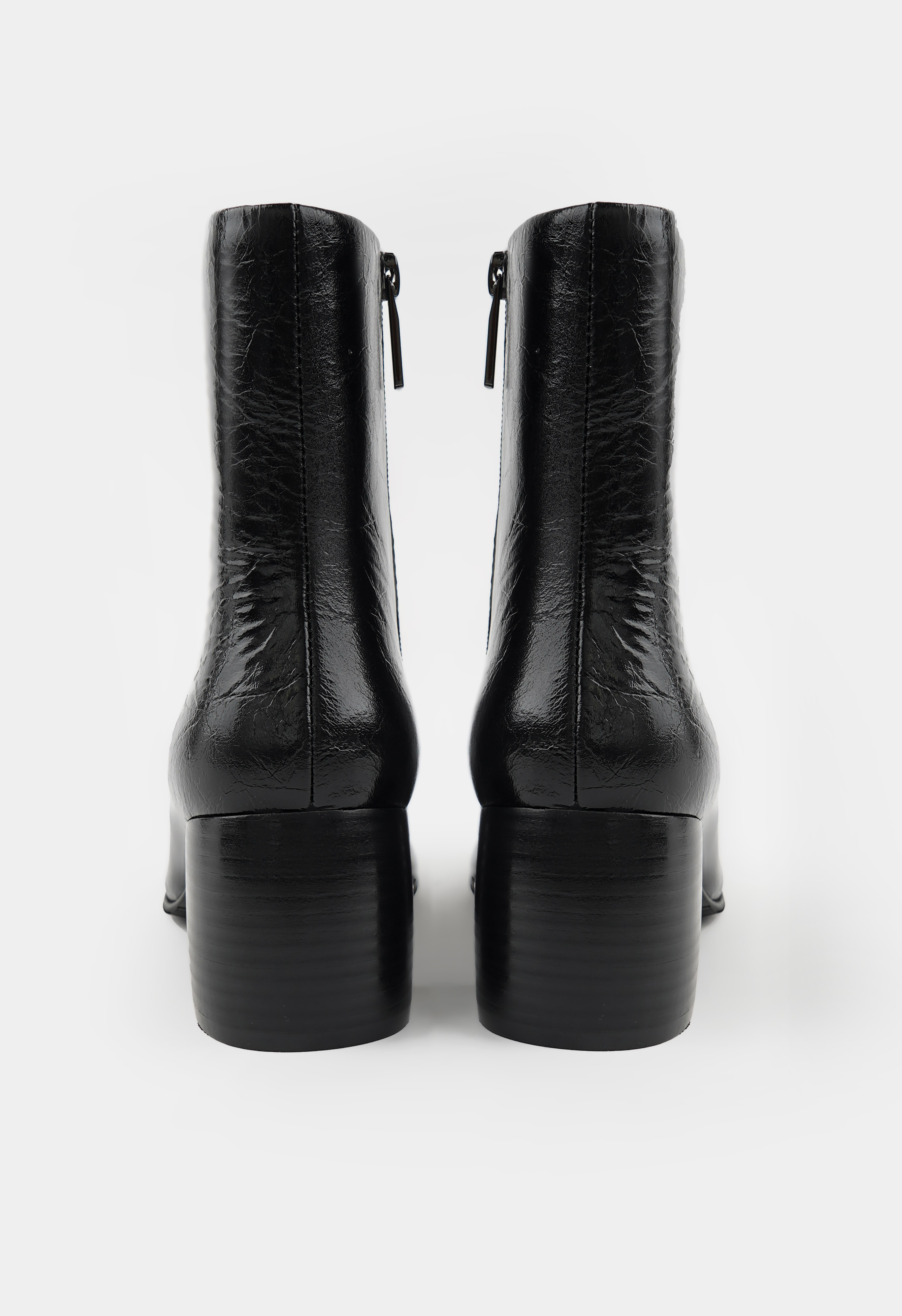 Элегантные ботильоны из натуральной лаковой кожи черного цвета с подкладкой из байки – стильная и удобная модель для холодного сезона. Гибкая подошва и трапециевидный каблук обеспечивают комфорт и уверенность при каждом шаге, а квадратный мысок дарит современный акцент и удобство для повседневной носки. Молния и металлическая фурнитура делают обувь практичной и элегантной одновременно. Эти ботильоны легко впишутся как в повседневные, так и в более нарядные образы, подчеркивая ваш стиль и чувство уверенности.