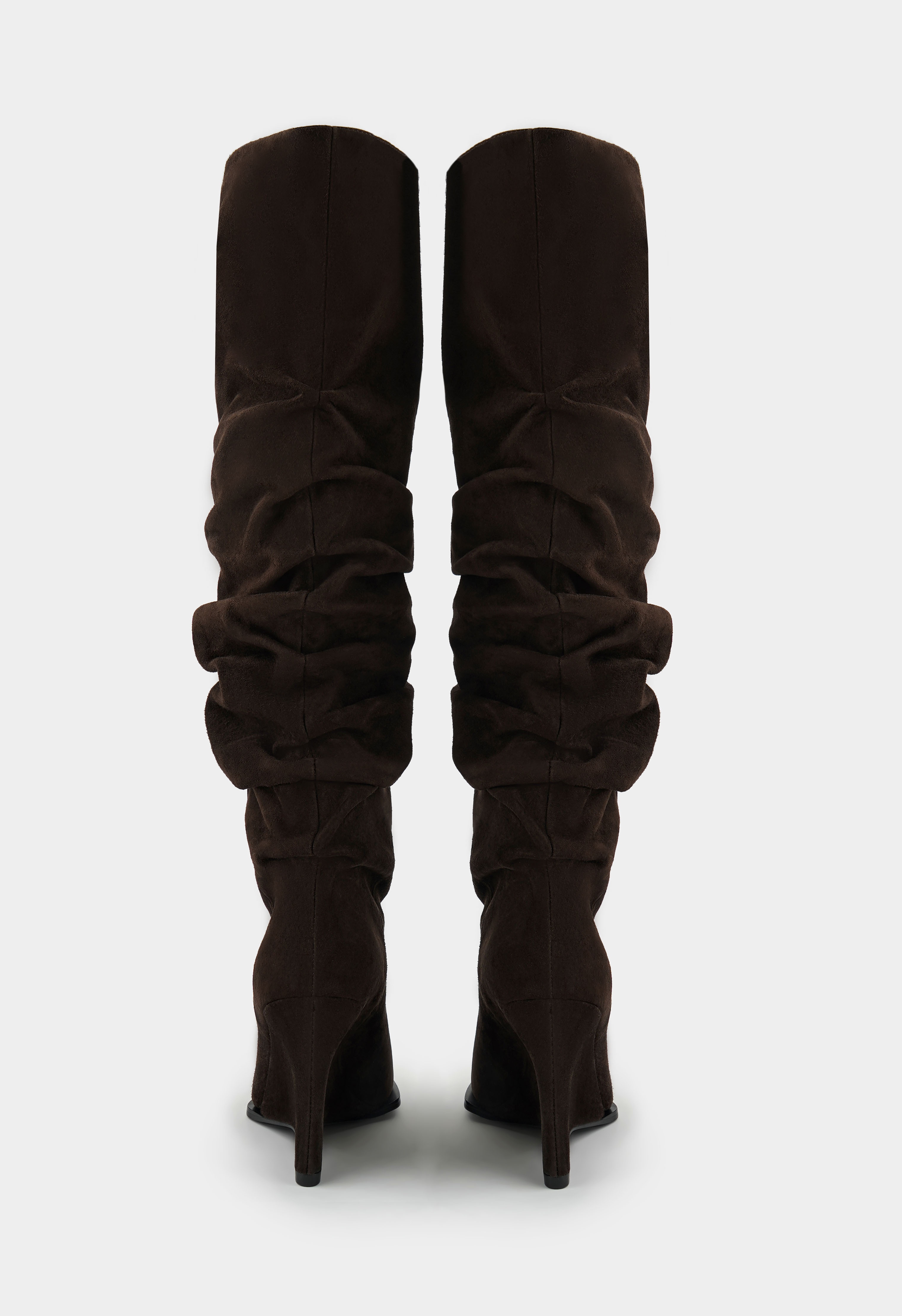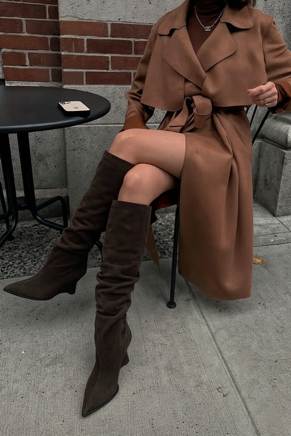 Коричневые сапоги из натуральной замши с мягкой подкладкой из байки – это сочетание стиля и комфорта, которое станет вашим верным спутником в холодное время года. Заостренный мысок придает образу элегантность, а танкетка аккуратно подчеркивает силуэт и обеспечивает удобство при ходьбе. Гибкая подошва позволяет чувствовать легкость на каждом шаге, в то время как насыщенный коричневый цвет легко комбинируется с повседневными и более эффектными образами. Эти сапоги подчеркнут ваш вкус и практичность, делая каждую прогулку комфортной и стильной.