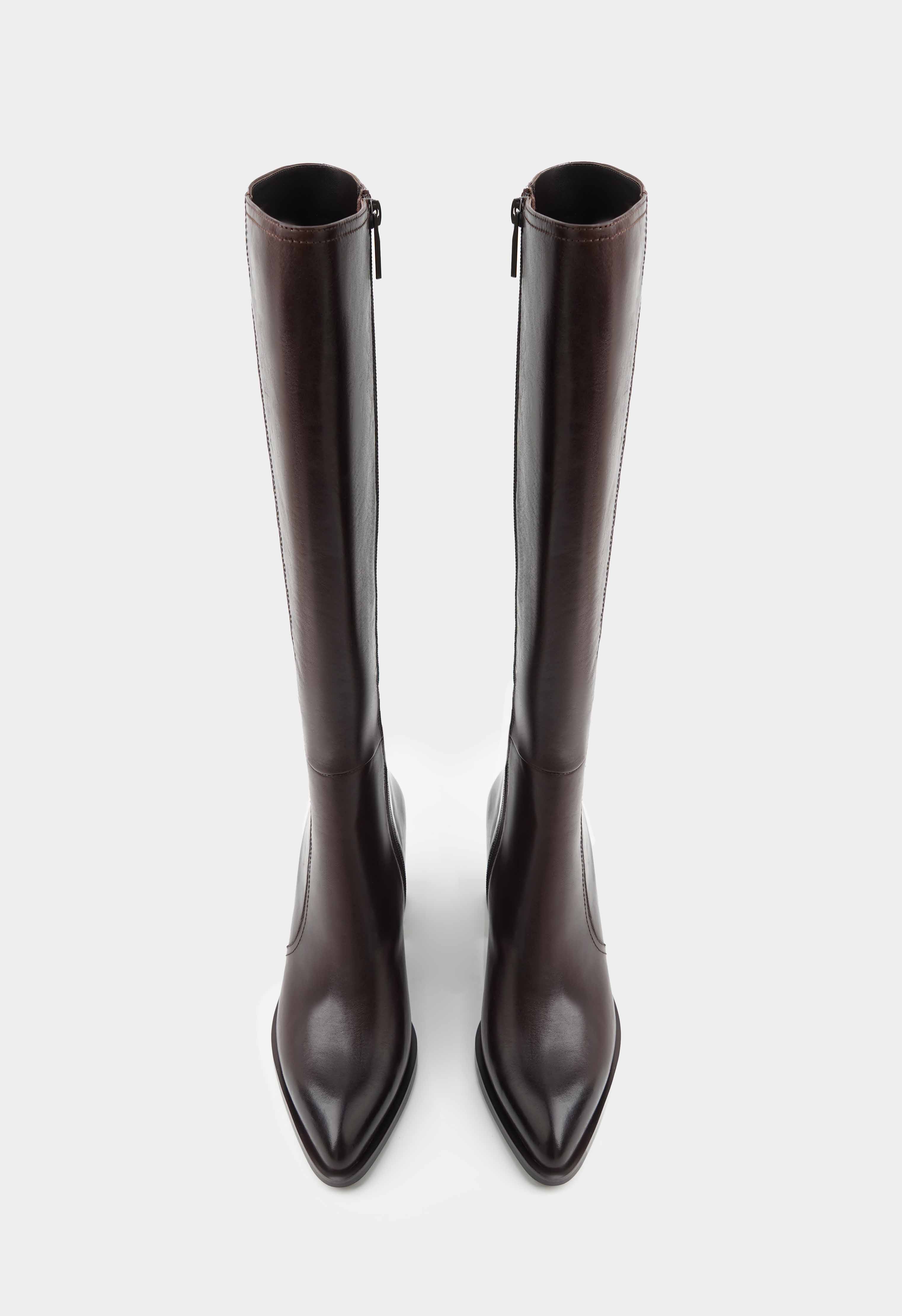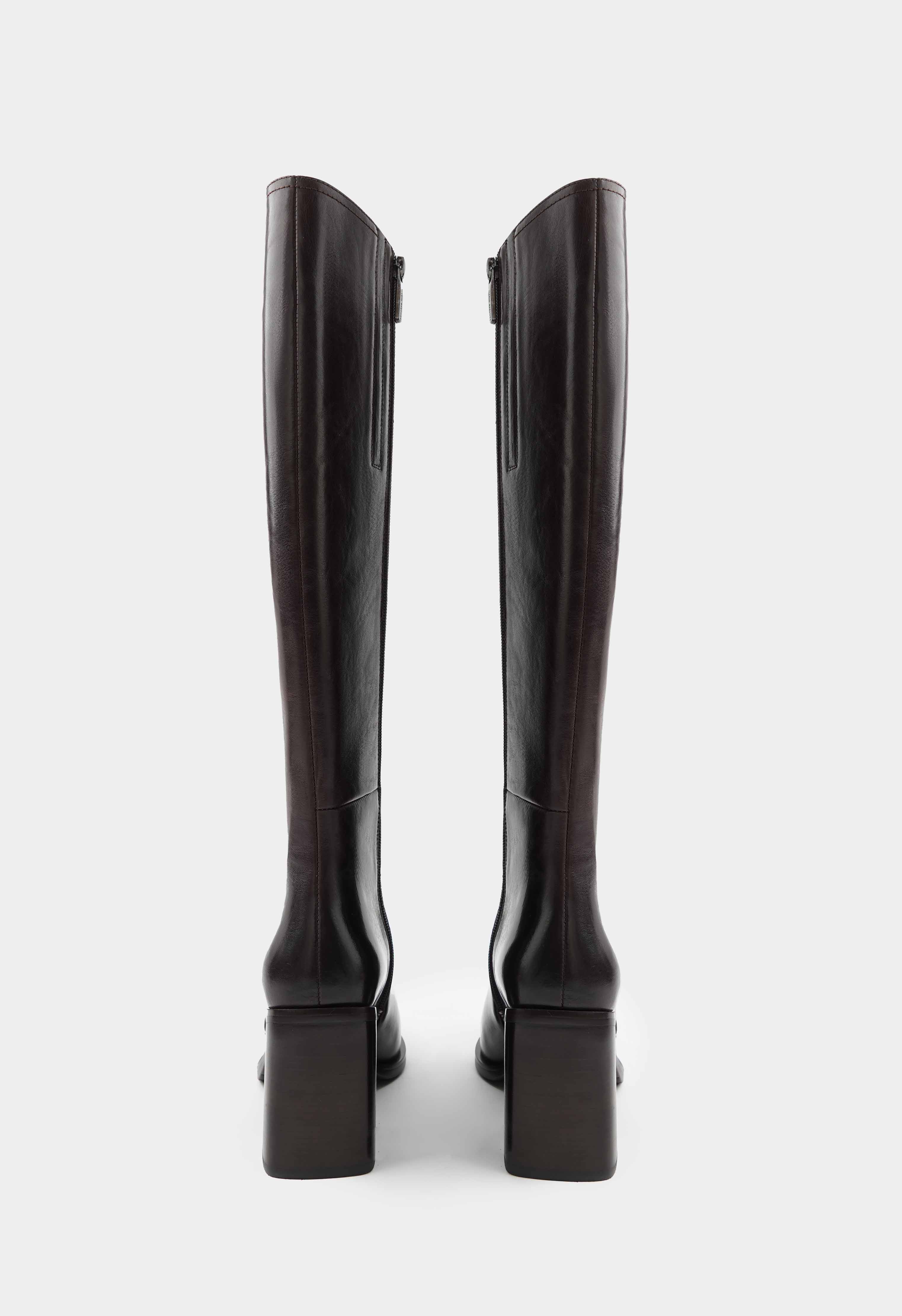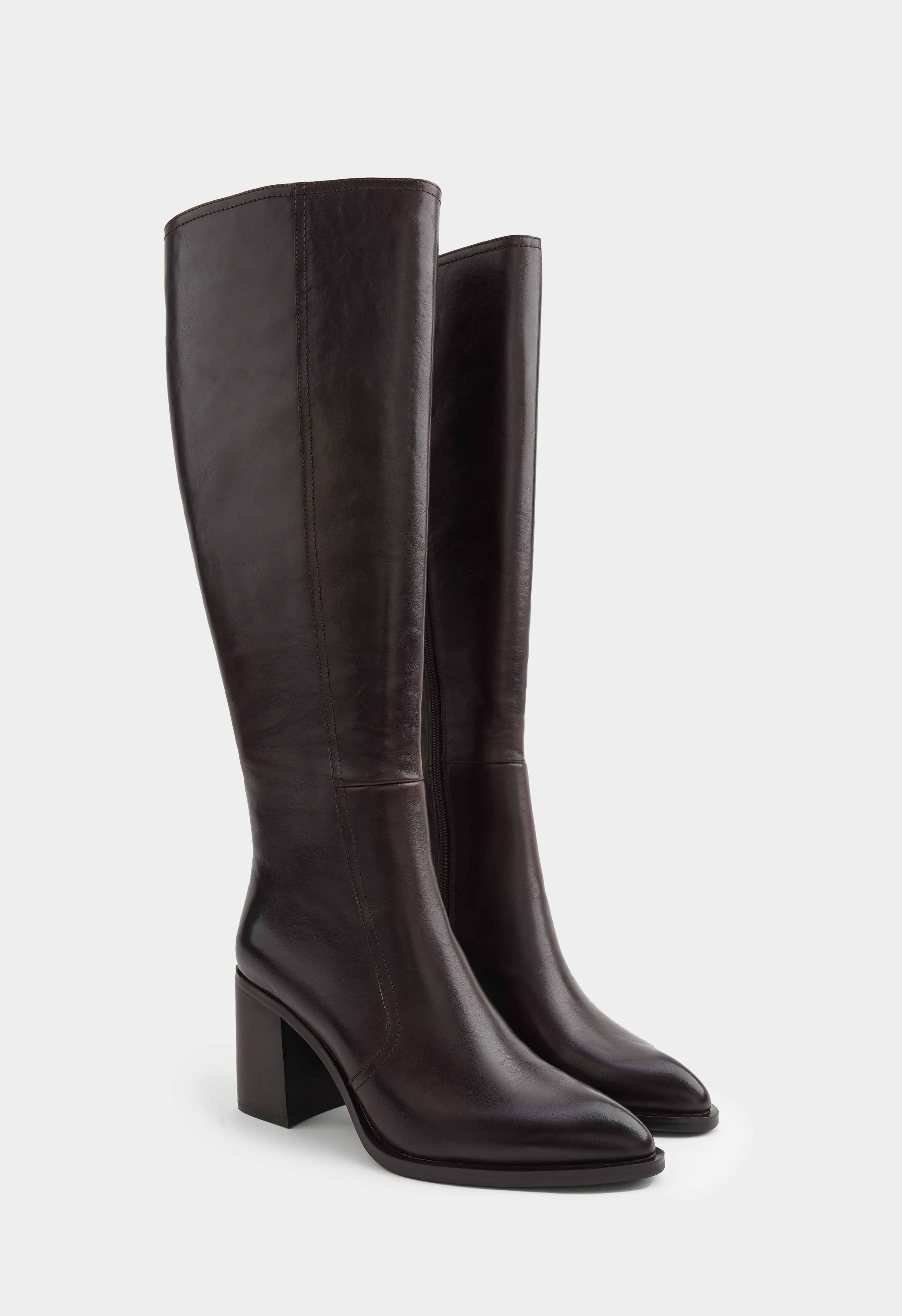Сапоги из натуральной кожи коричневого цвета – практичная и стильная модель для холодного сезона. Жесткая подошва и широкий каблук обеспечивают надежность и устойчивость, квадратный мысок добавляет современный акцент и удобство, а металлическая фурнитура и молния делают дизайн лаконичным и выразительным. Дополнительная стелька из натурального меха повышает комфорт, позволяя согреваться в холодную погоду на протяжении всего дня. Эта модель легко дополнит повседневные и деловые образы, оставаясь актуальной и удобной в любой ситуации.