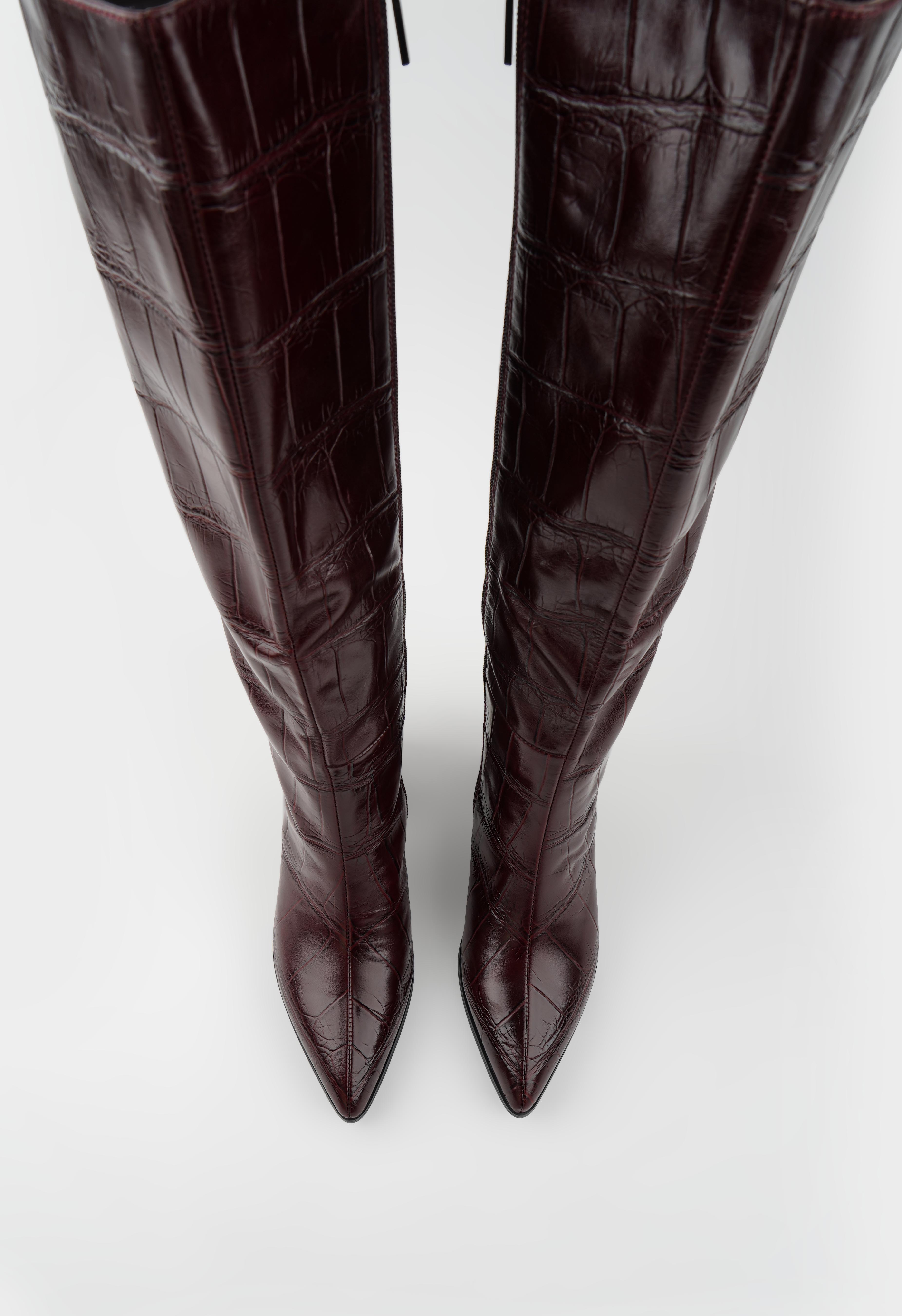 Сапоги из натуральной кожи бордового цвета с байкой внутри – это гармоничное сочетание элегантности и комфорта для повседневного гардероба. Гибкая подошва и скошенный каблук обеспечивают легкость и удобство при каждом шаге, а заостренный мысок придает образу утонченность и современный характер. Молния и металлическая фурнитура делают модель практичной и стильной одновременно. Эти сапоги легко дополнят как повседневные, так и более нарядные образы, подчеркивая ваш вкус и уверенность в любой ситуации.