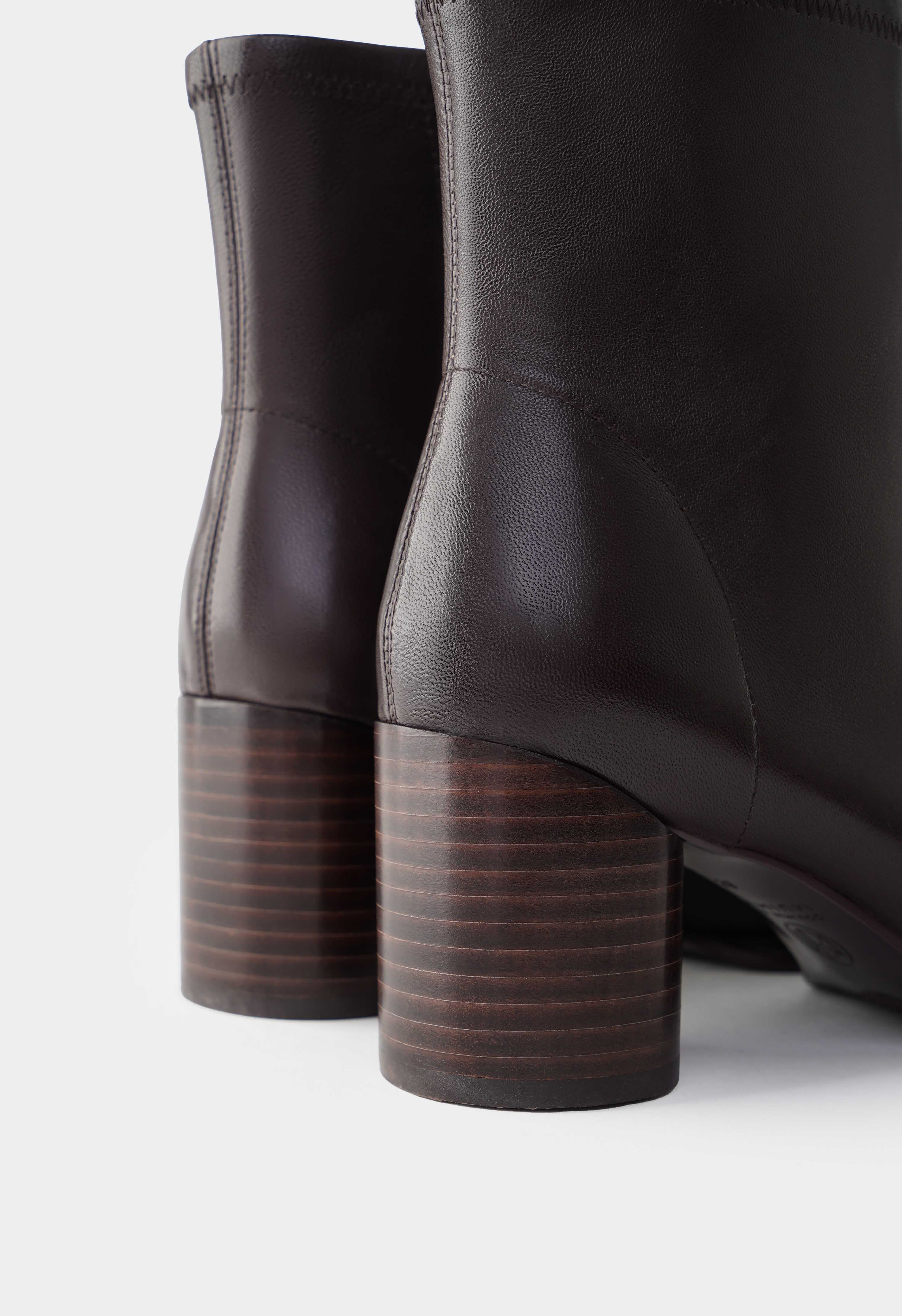Коричневые ботильоны из натуральной кожи – аккуратная пара с чистым силуэтом и благородным оттенком, которая легко вписывается в базовый гардероб. Квадратный мысок добавляет современную геометрию и делает посадку более комфортной, а устойчивый каблук-столбик с выразительной фактурой смотрится солидно и дает уверенную опору. Молния сбоку обеспечивает удобное надевание, металлик-фурнитура добавляет сдержанный акцент и подчеркивает качество исполнения. Жесткая подошва держит форму и поддерживает стабильный шаг.
