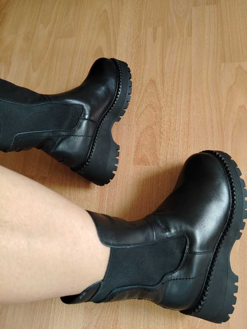 Выглядят стильно и современно, подошва толстая, можно сказать с небольшой танкеткой. Надевать удобно. Очень приятно, что уделяется столько внимания упаковочным материалам: каждый ботинок в отдельном красивом мешочке, качественная коробка и сумка. Спасибо!