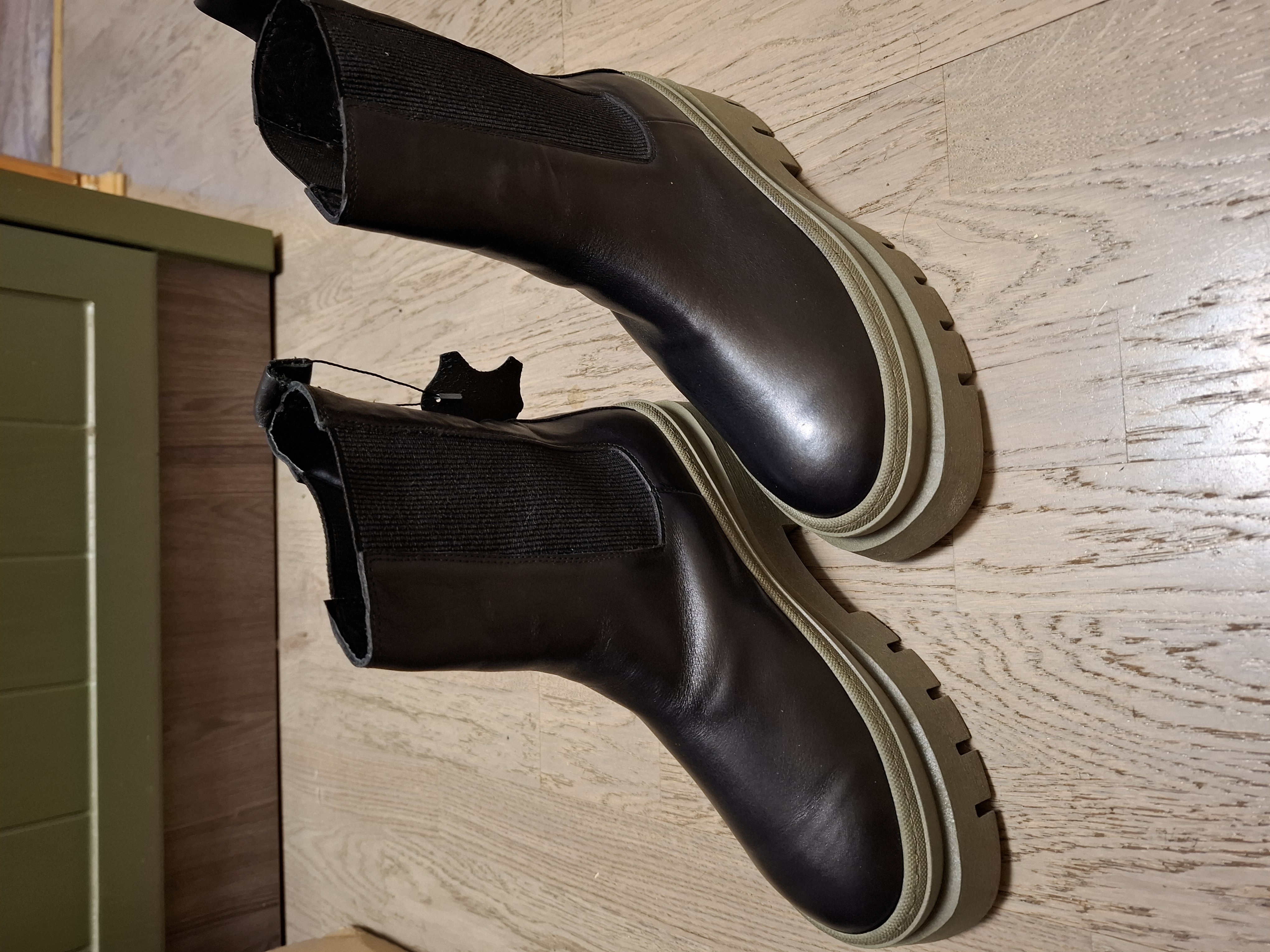Добрый день. Брутальные сапожки. Никогда таких не покупала, только классику. Взяла на размер больше, так как 38 размера уже не было. Подходят для широкой стопы. Отлично, что есть двусторонняя резинка. Подходят и под удлиненные шерстяные платья Оверсайз. Думаю носить буду с удовольствием. Рекомендую к покупке.